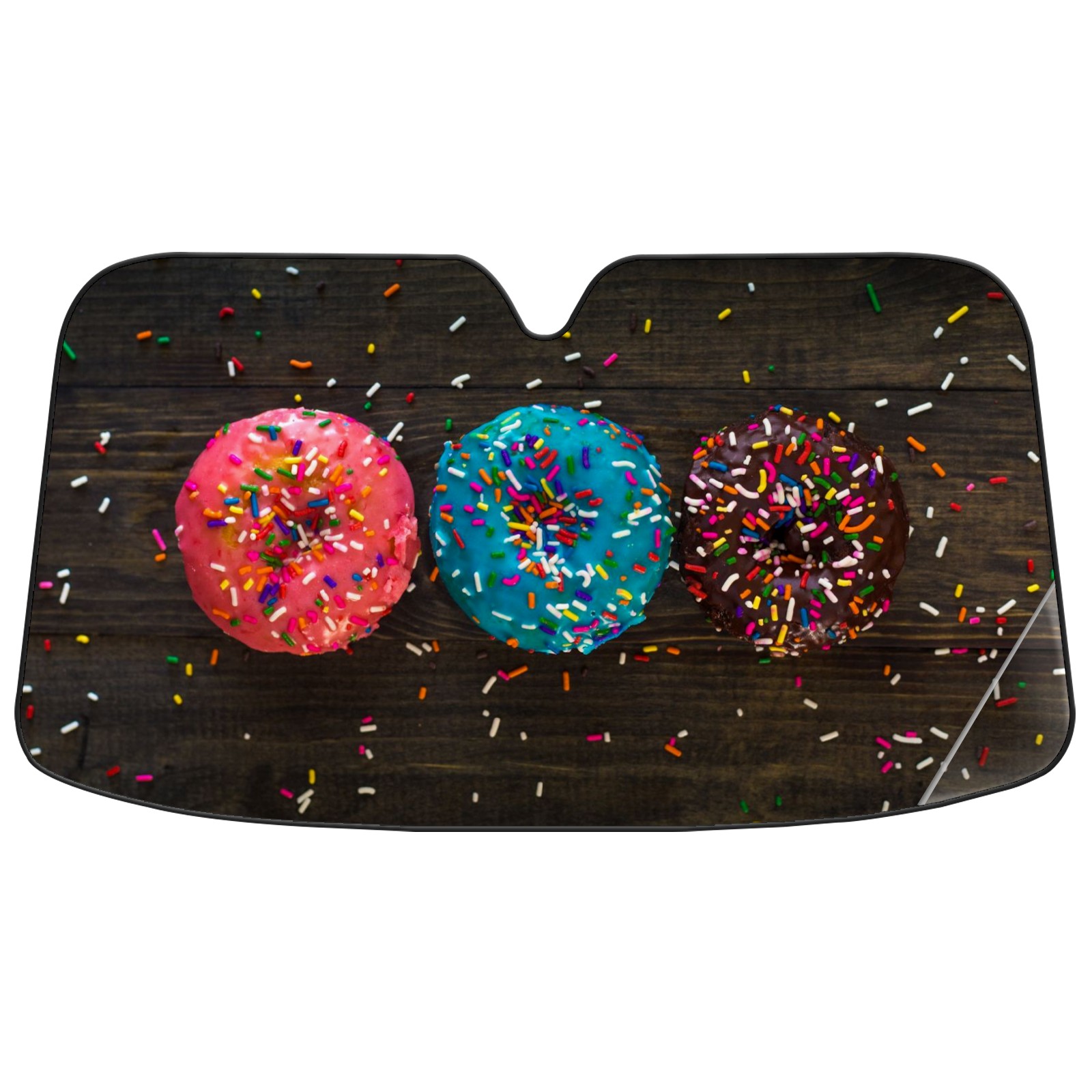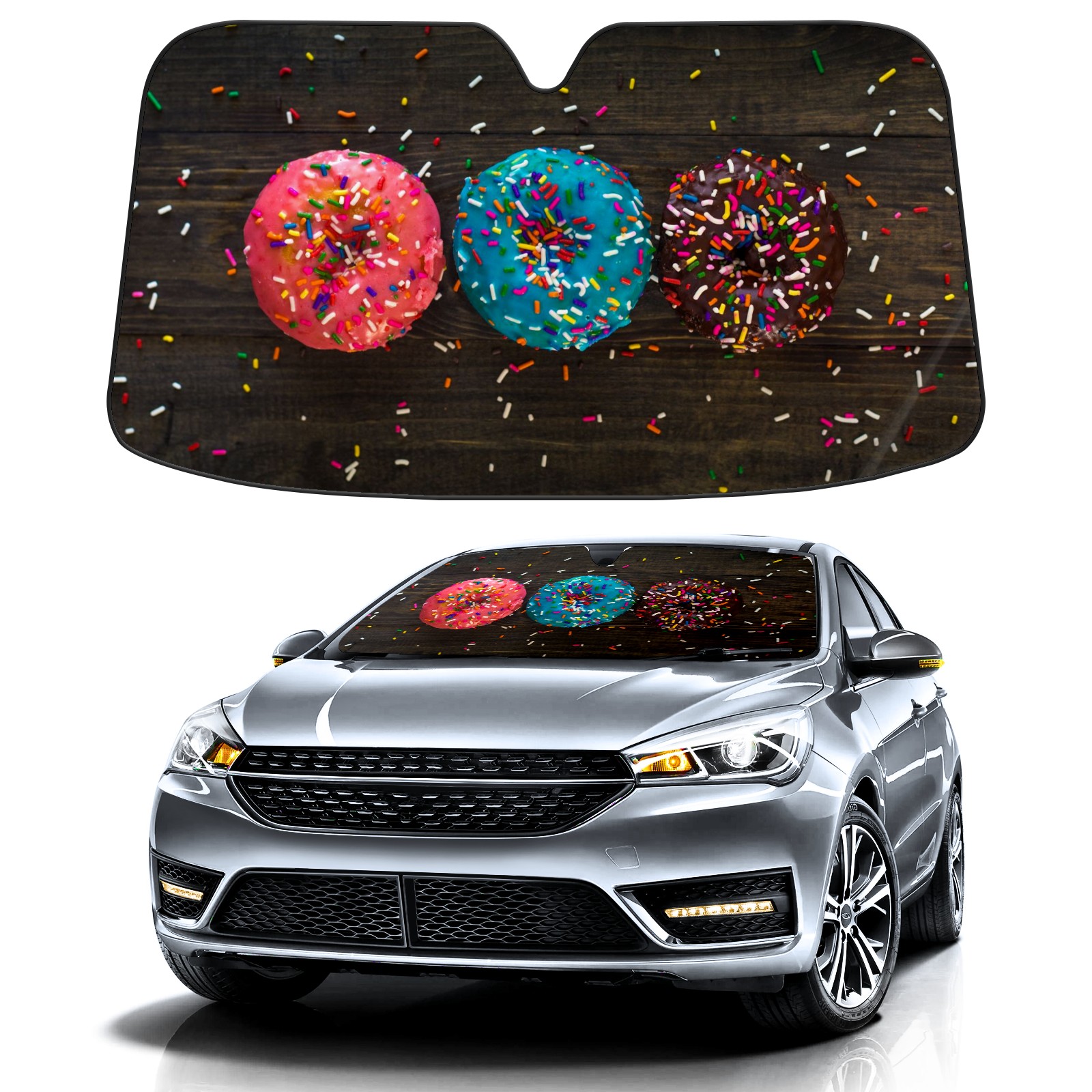 Car Windshield Sun Shade for Front Window Colorful Donuts Dessert Wood Board Foldable Vehicle Windshield Car Sun Visor Covers Automotive Window Protector Car Privacy Sun Blocker