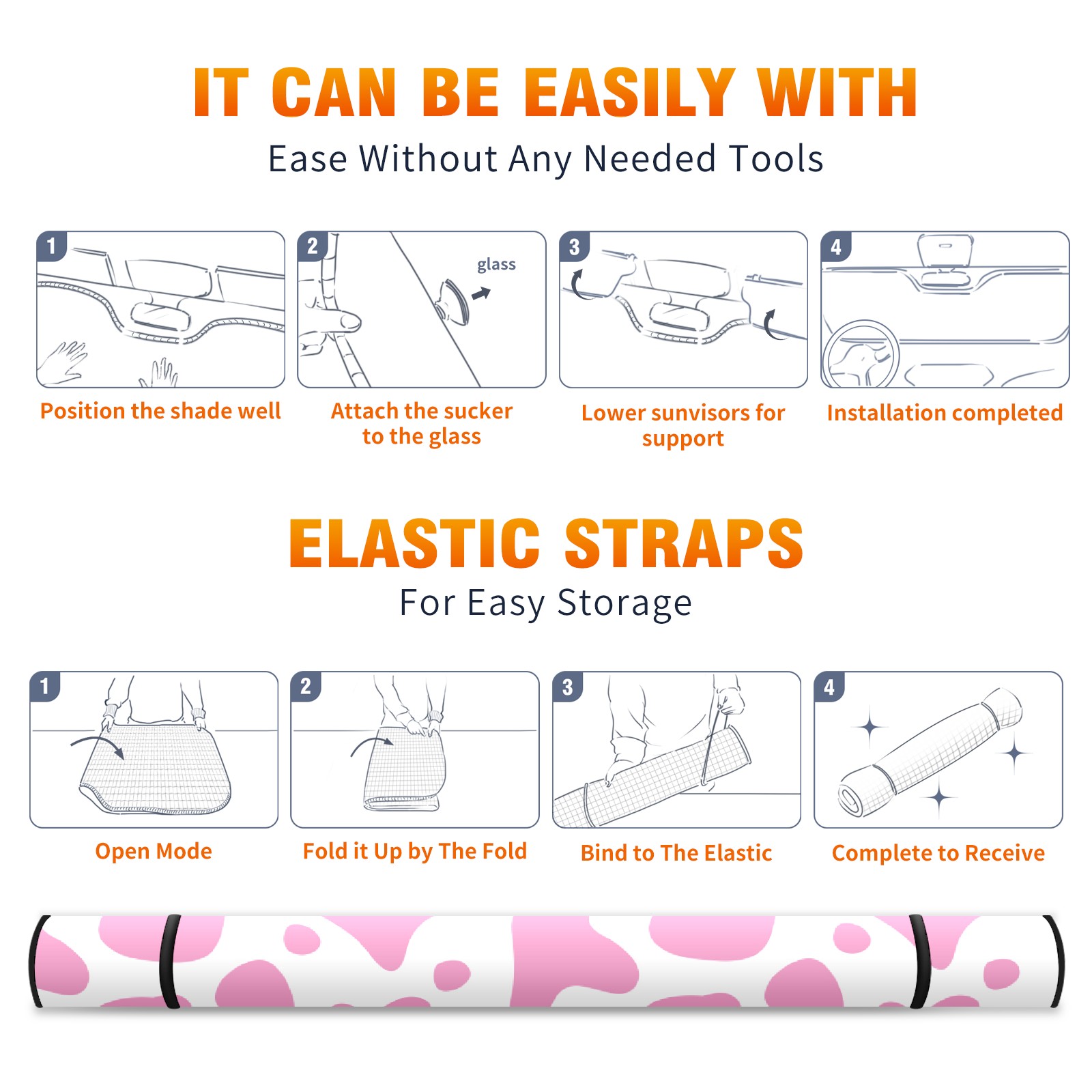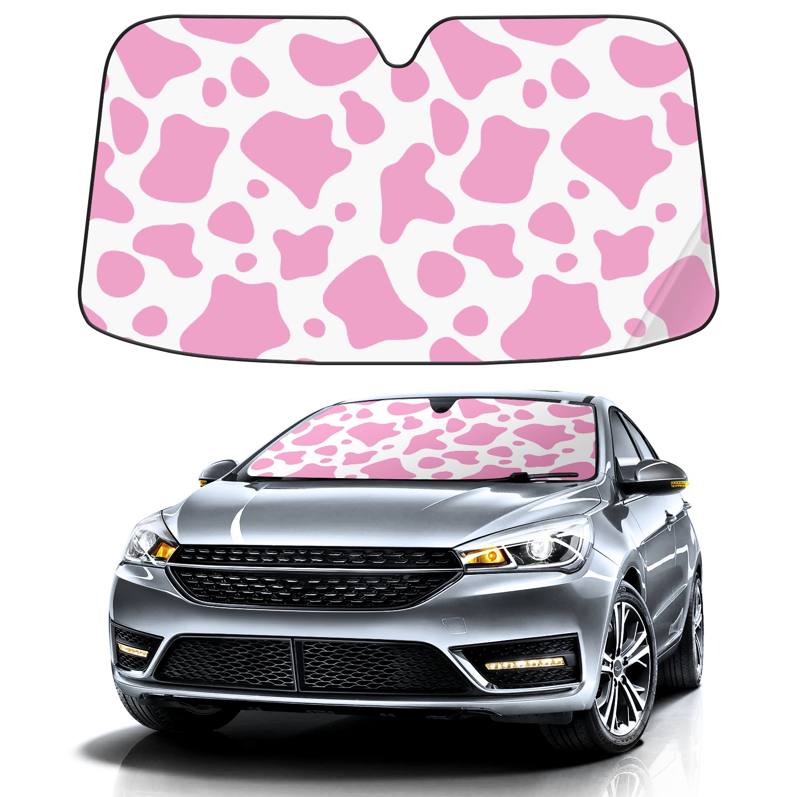 Car Windshield Sun Shade for Front Window Cute Pink Cow Spot Print Foldable Vehicle Windshield Car Sun Visor Covers Automotive Window Protector Car Privacy Sun Blocker