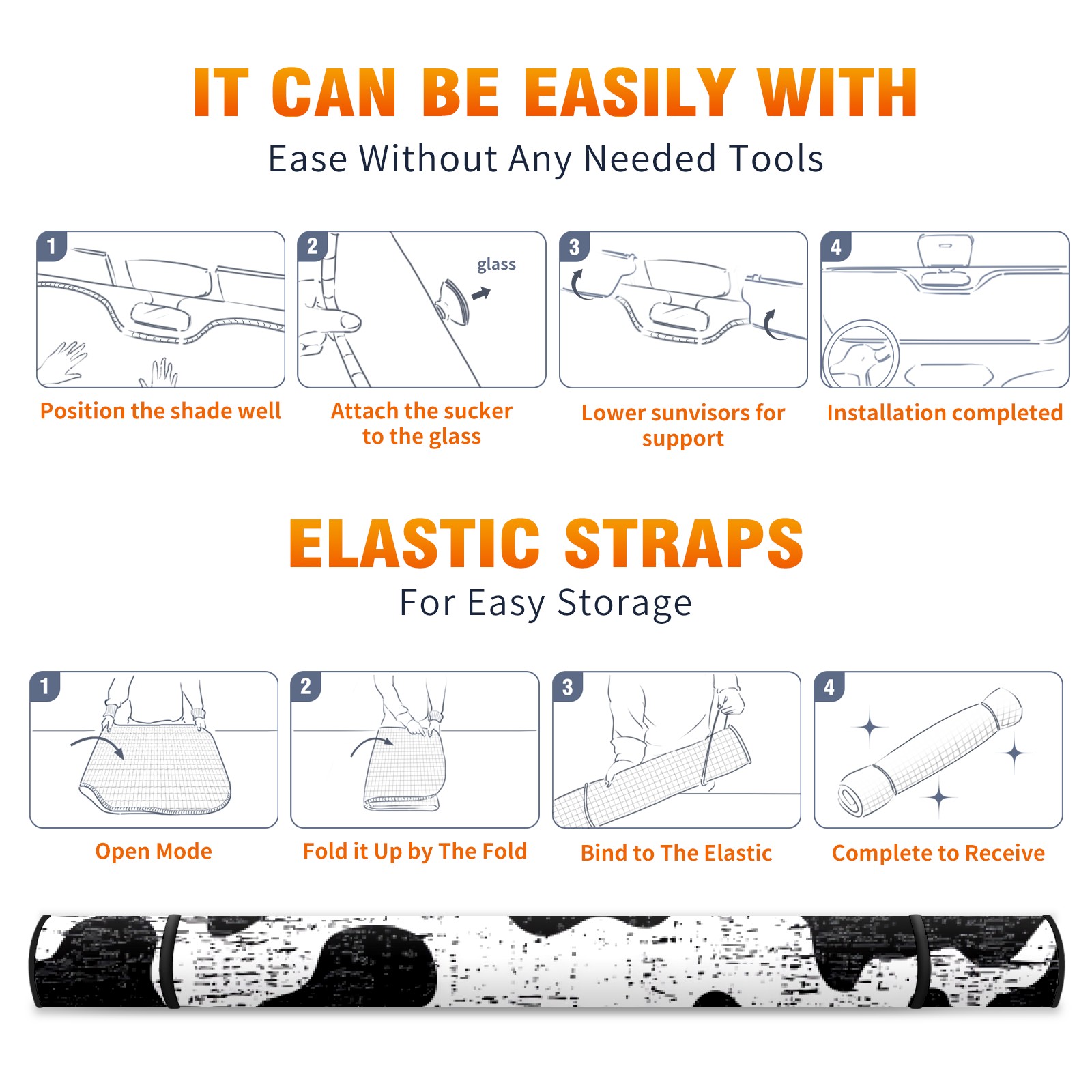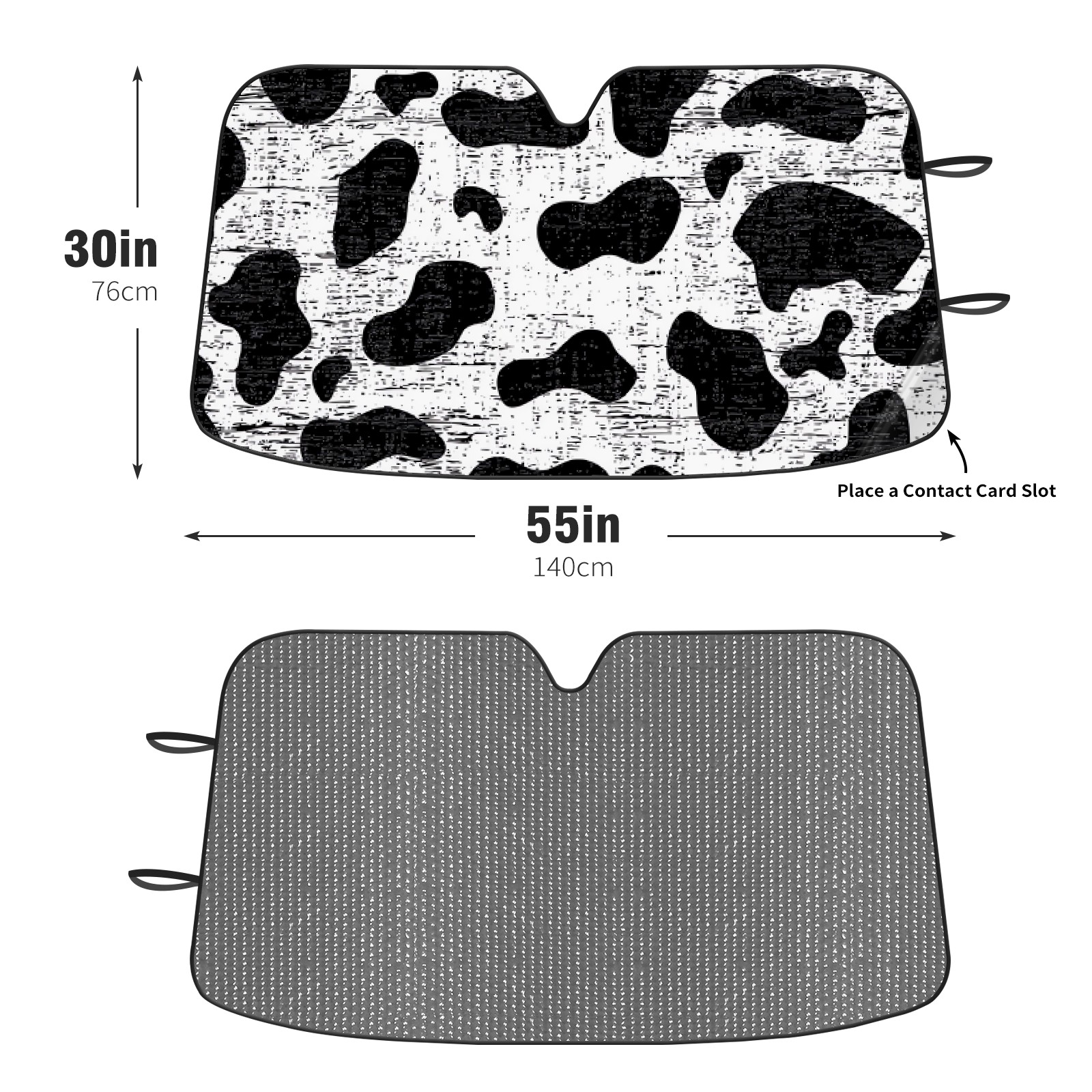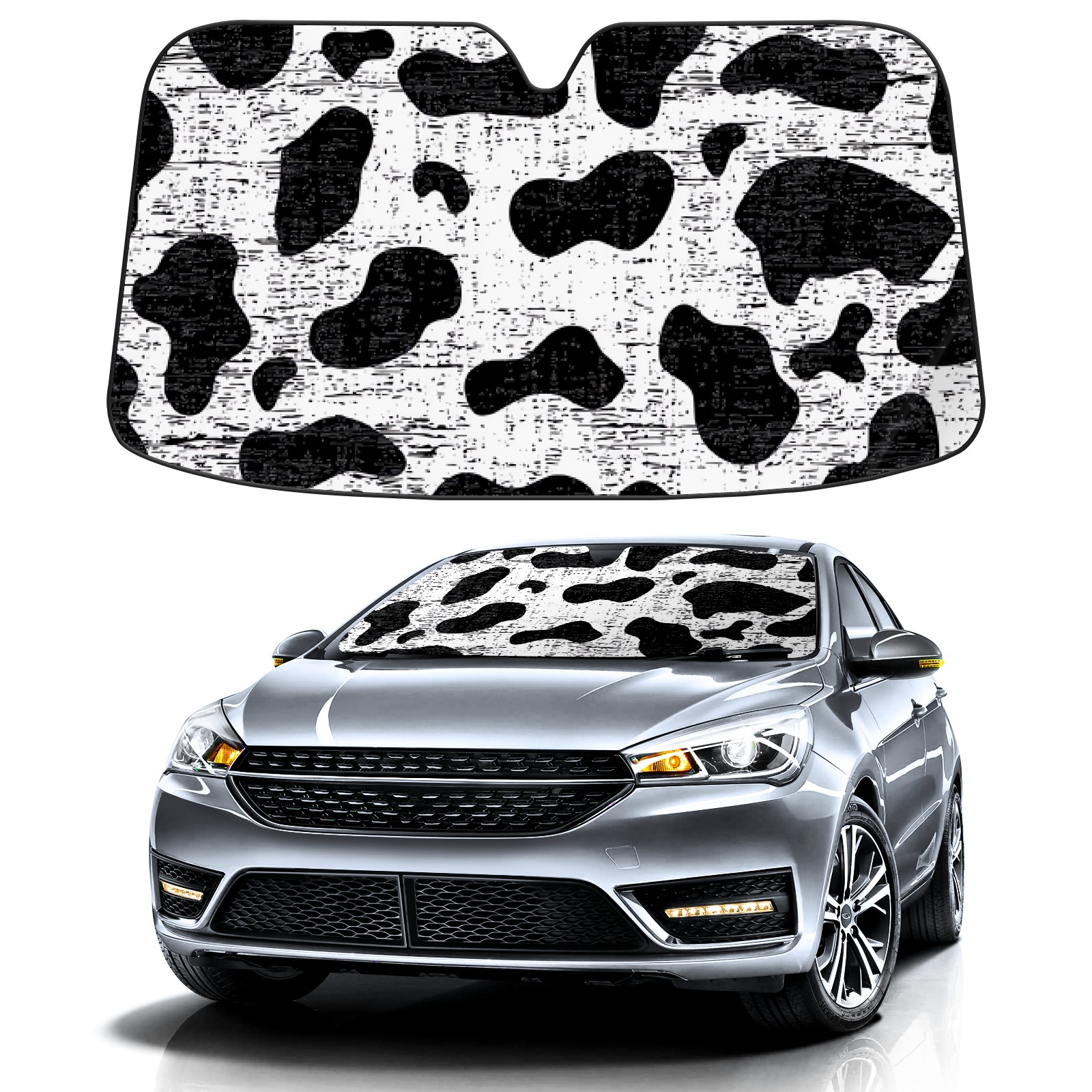 Car Windshield Sun Shade for Front Window Retro Black White Cow Print Foldable Vehicle Windshield Car Sun Visor Covers Automotive Window Protector Car Privacy Sun Blocker