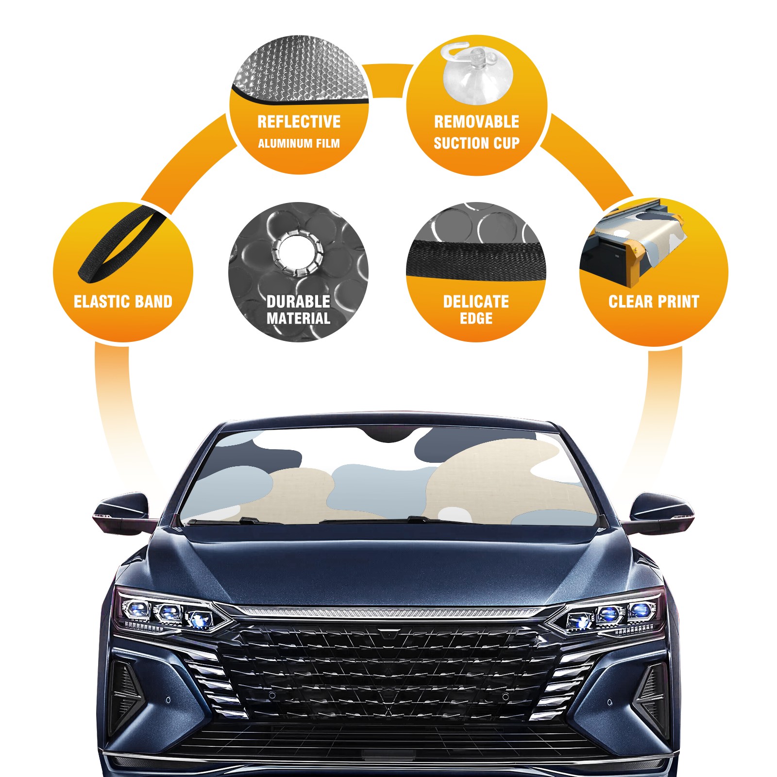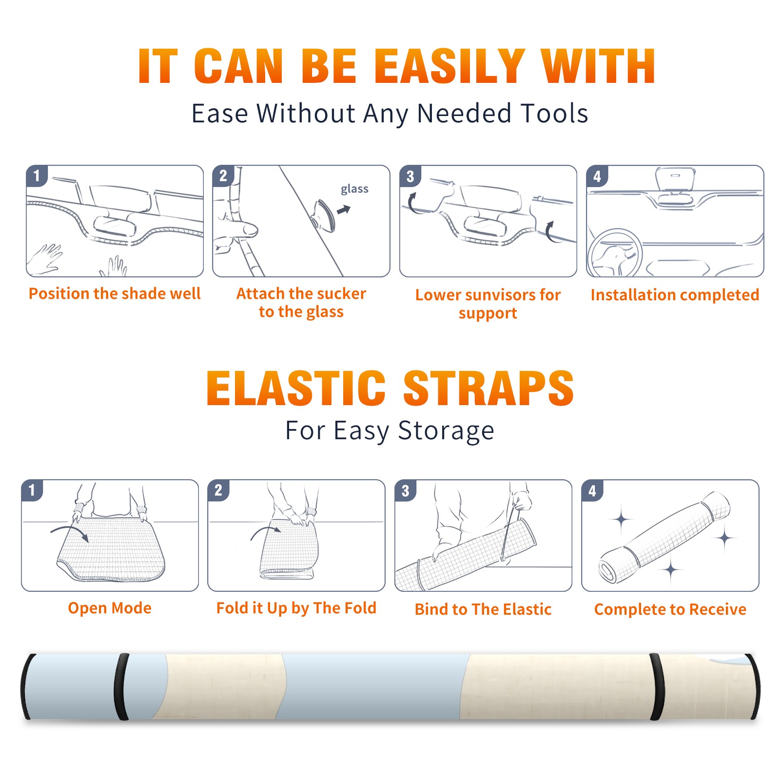 Diameter /Size 63"L x 33.5"W</b><br> Made from excellent materials which makes it sturdy and protects the car from the sun. Easy to use and pack. Makes the interior of the car cooler.You can easily stash the sunshade in the storage bag or store long term.It open and closes easy. Also the leather storage bag is durable and easy to put the umbrella back into.This windshield sunshade provides complete coverage and keeps your car interior cool under direct sun. It is easy to open and position under the windshield and around the rear-view mirror. Makes Your Car Easy To Identify, Perfect For Finding Your Car In Crowded Parking Lots And Garages.Great Choice: It Is A Great Gift For Dad, Boyfriend, Brother, Brother And Uncle, Friends, Classmates, Family And So On.<br> Notice:</b><br> Due To Difference Computer Monitors, The Color Maybe Slightly Different From Picture. As Different Measurement Methods, Measurement Data Will Float Within 2%.I Hope You Understand.<br> If You Have Any Question About The Item Please Do Not Hesitate To Contact Us Immediately And We Will Give You A Satisfactory Reply Within 24 Hours.