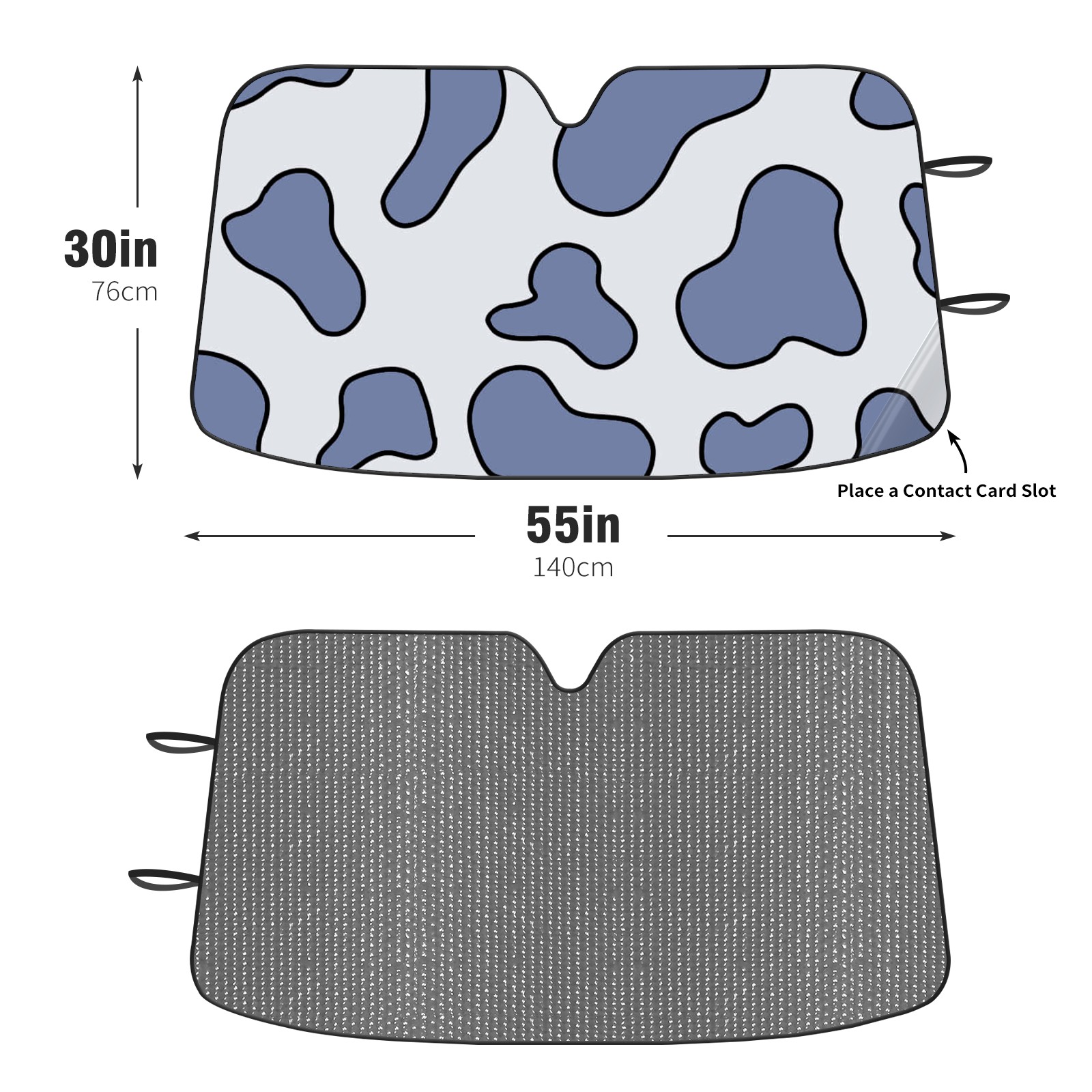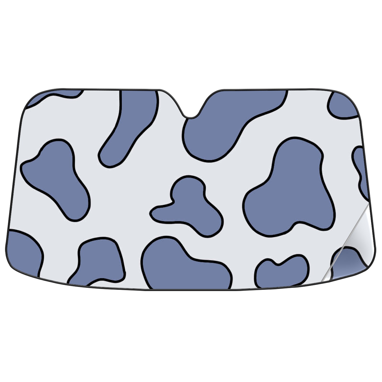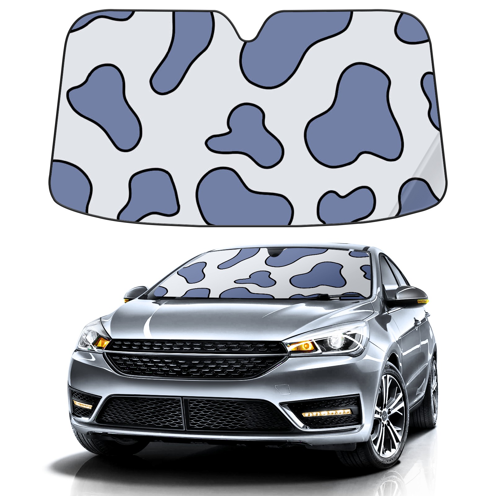 Car Windshield Sun Shade for Front Window Blue And White Cow Print Foldable Vehicle Windshield Car Sun Visor Covers Automotive Window Protector Car Privacy Sun Blocker