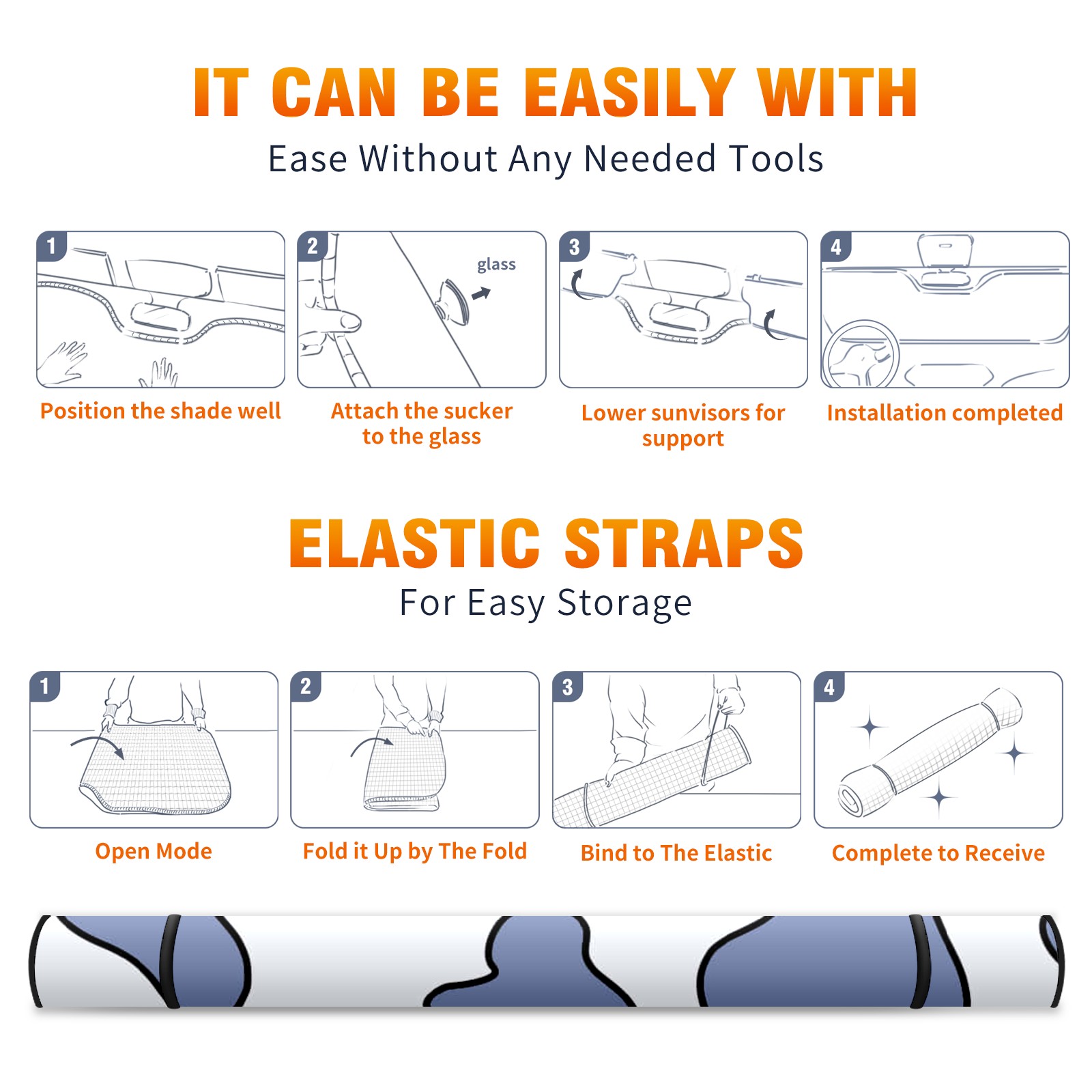Diameter /Size 63"L x 33.5"W</b><br> Made from excellent materials which makes it sturdy and protects the car from the sun. Easy to use and pack. Makes the interior of the car cooler.You can easily stash the sunshade in the storage bag or store long term.It open and closes easy. Also the leather storage bag is durable and easy to put the umbrella back into.This windshield sunshade provides complete coverage and keeps your car interior cool under direct sun. It is easy to open and position under the windshield and around the rear-view mirror. Makes Your Car Easy To Identify, Perfect For Finding Your Car In Crowded Parking Lots And Garages.Great Choice: It Is A Great Gift For Dad, Boyfriend, Brother, Brother And Uncle, Friends, Classmates, Family And So On.<br> Notice:</b><br> Due To Difference Computer Monitors, The Color Maybe Slightly Different From Picture. As Different Measurement Methods, Measurement Data Will Float Within 2%.I Hope You Understand.<br> If You Have Any Question About The Item Please Do Not Hesitate To Contact Us Immediately And We Will Give You A Satisfactory Reply Within 24 Hours.