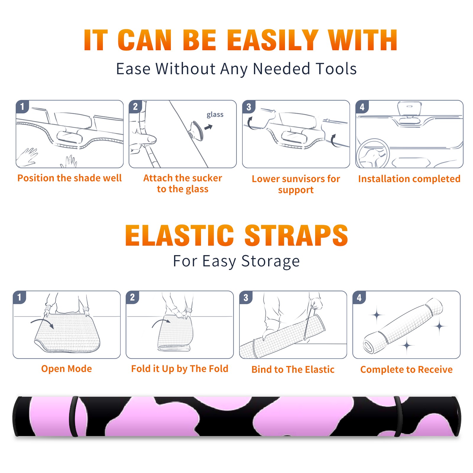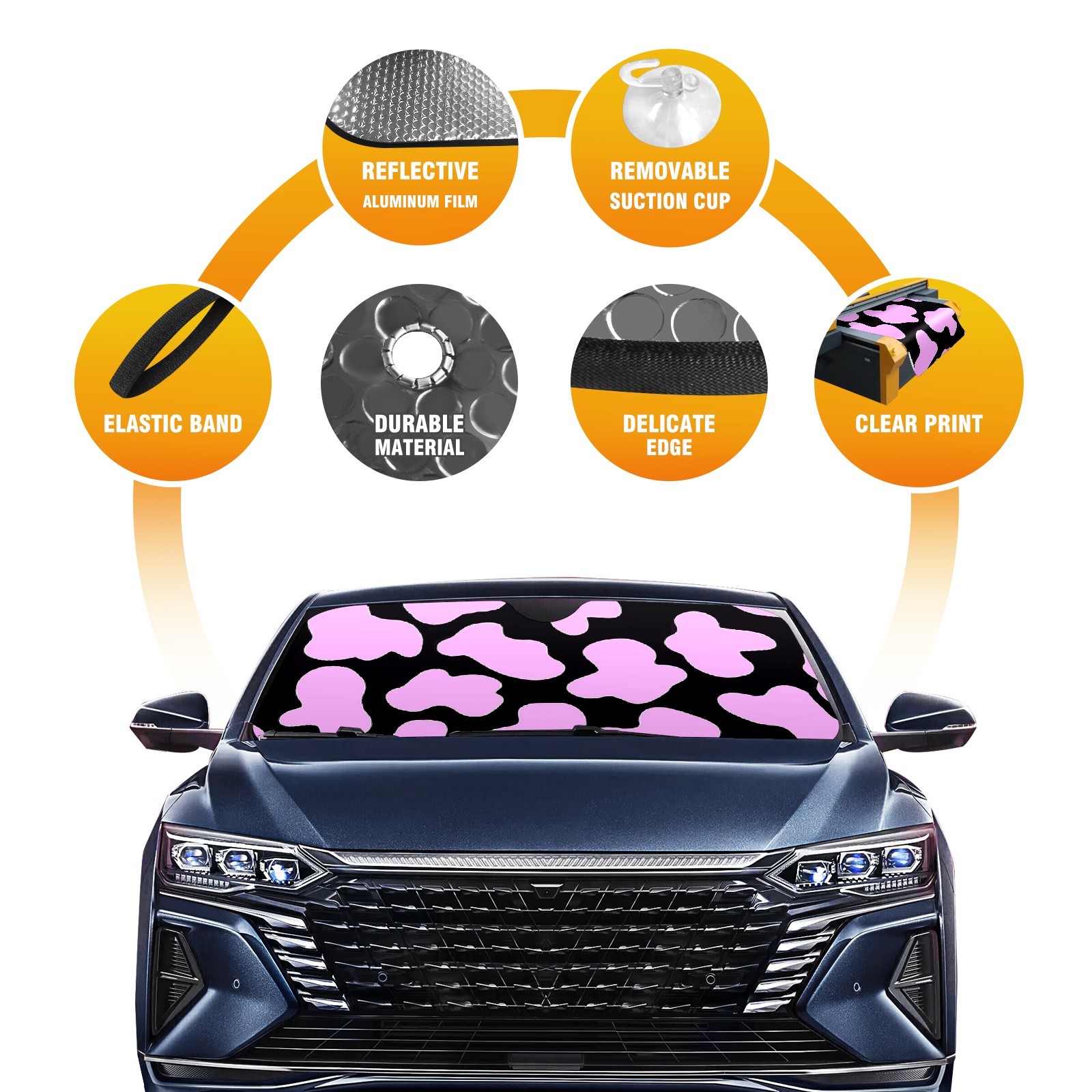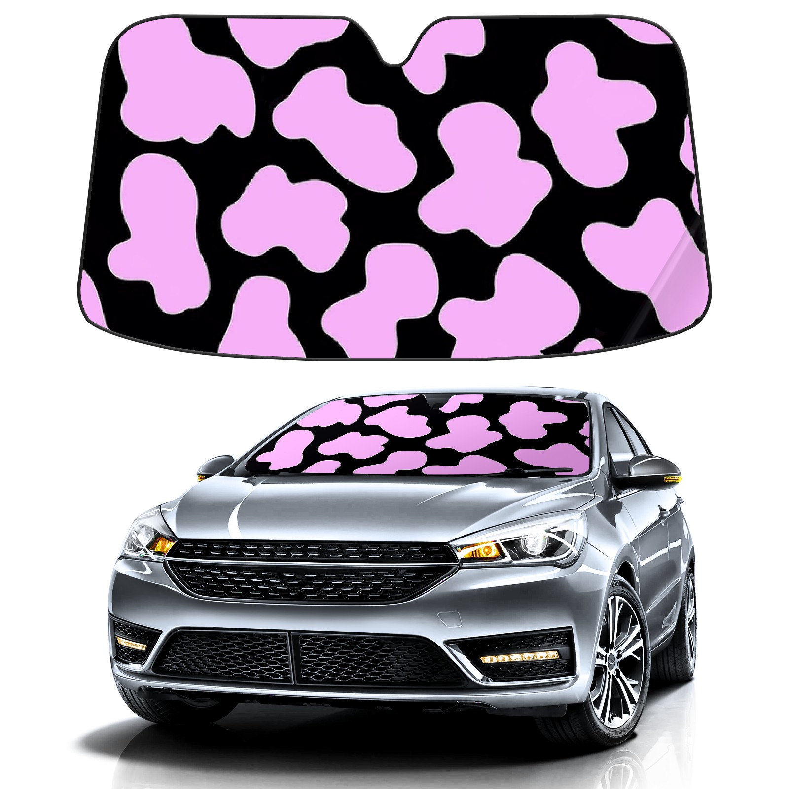 Car Windshield Sun Shade for Front Window Black And Pink Cow Print Foldable Vehicle Windshield Car Sun Visor Covers Automotive Window Protector Car Privacy Sun Blocker