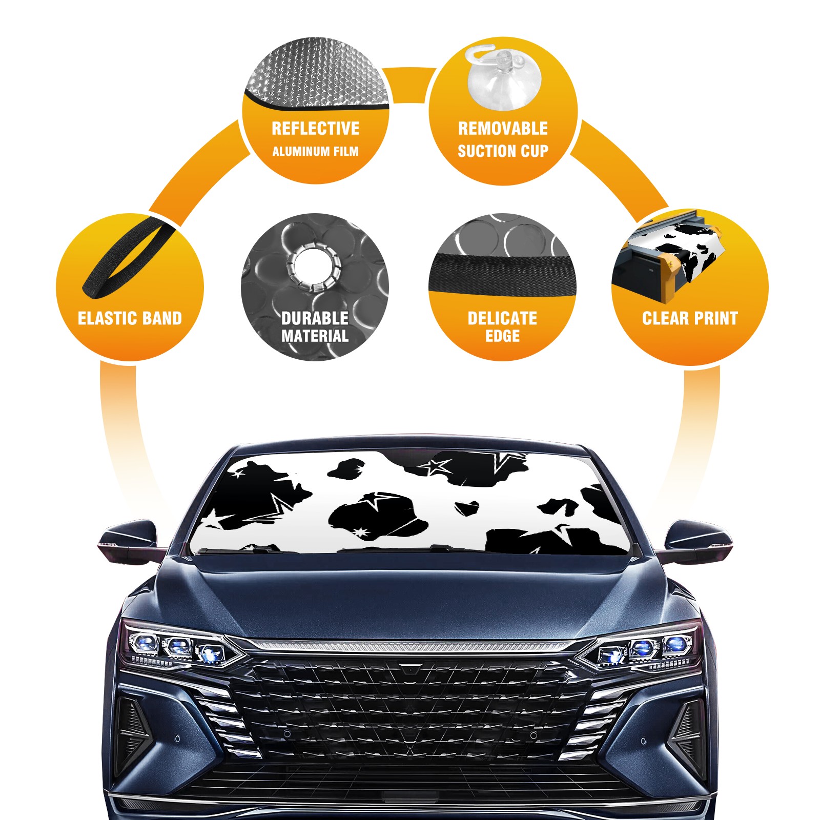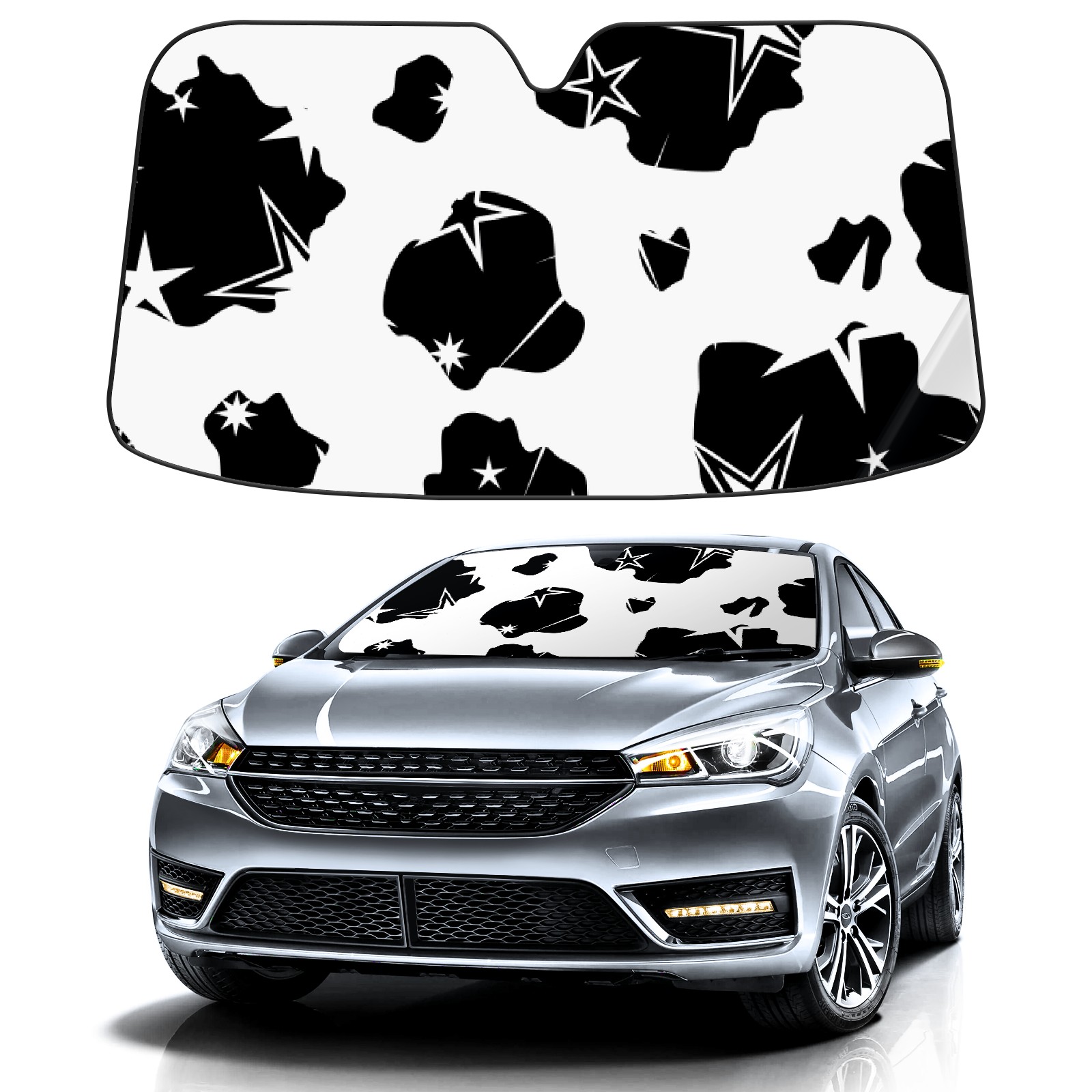 Car Windshield Sun Shade for Front Window Cow Print With Stars Foldable Vehicle Windshield Car Sun Visor Covers Automotive Window Protector Car Privacy Sun Blocker