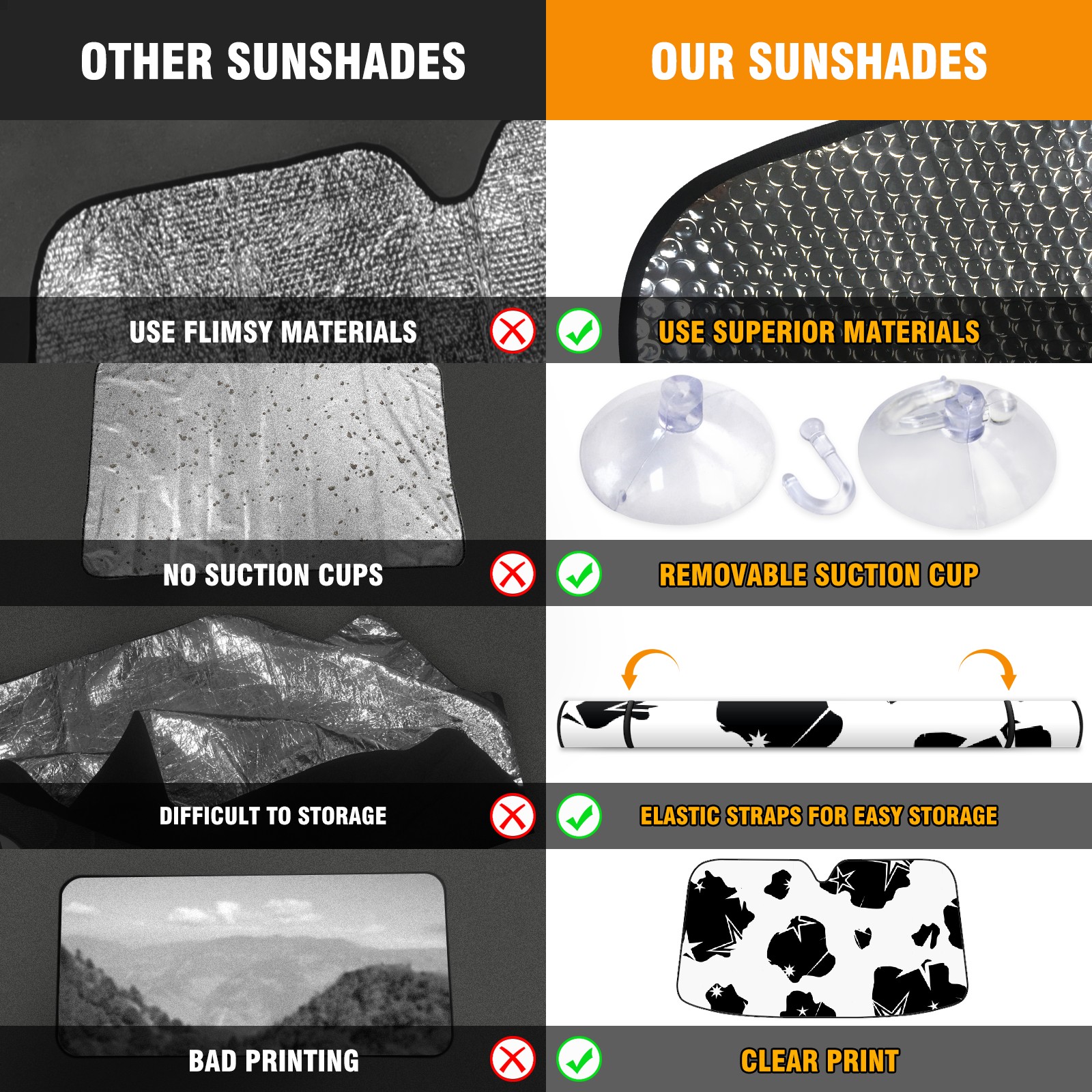 • Diameter /Size 63"L x 33.5"W</b><br> Made from excellent materials which makes it sturdy and protects the car from the sun. Easy to use and pack. Makes the interior of the car cooler.You can easily stash the sunshade in the storage bag or store long term.It open and closes easy. Also the leather storage bag is durable and easy to put the umbrella back into.This windshield sunshade provides complete coverage and keeps your car interior cool under direct sun. It is easy to open and position under the windshield and around the rear-view mirror. Makes Your Car Easy To Identify, Perfect For Finding Your Car In Crowded Parking Lots And Garages.Great Choice: It Is A Great Gift For Dad, Boyfriend, Brother, Brother And Uncle, Friends, Classmates, Family And So On.<br> Notice:</b><br> Due To Difference Computer Monitors, The Color Maybe Slightly Different From Picture. As Different Measurement Methods, Measurement Data Will Float Within 2%.I Hope You Understand.<br> If You Have Any Question About The Item Please Do Not Hesitate To Contact Us Immediately And We Will Give You A Satisfactory Reply Within 24 Hours.