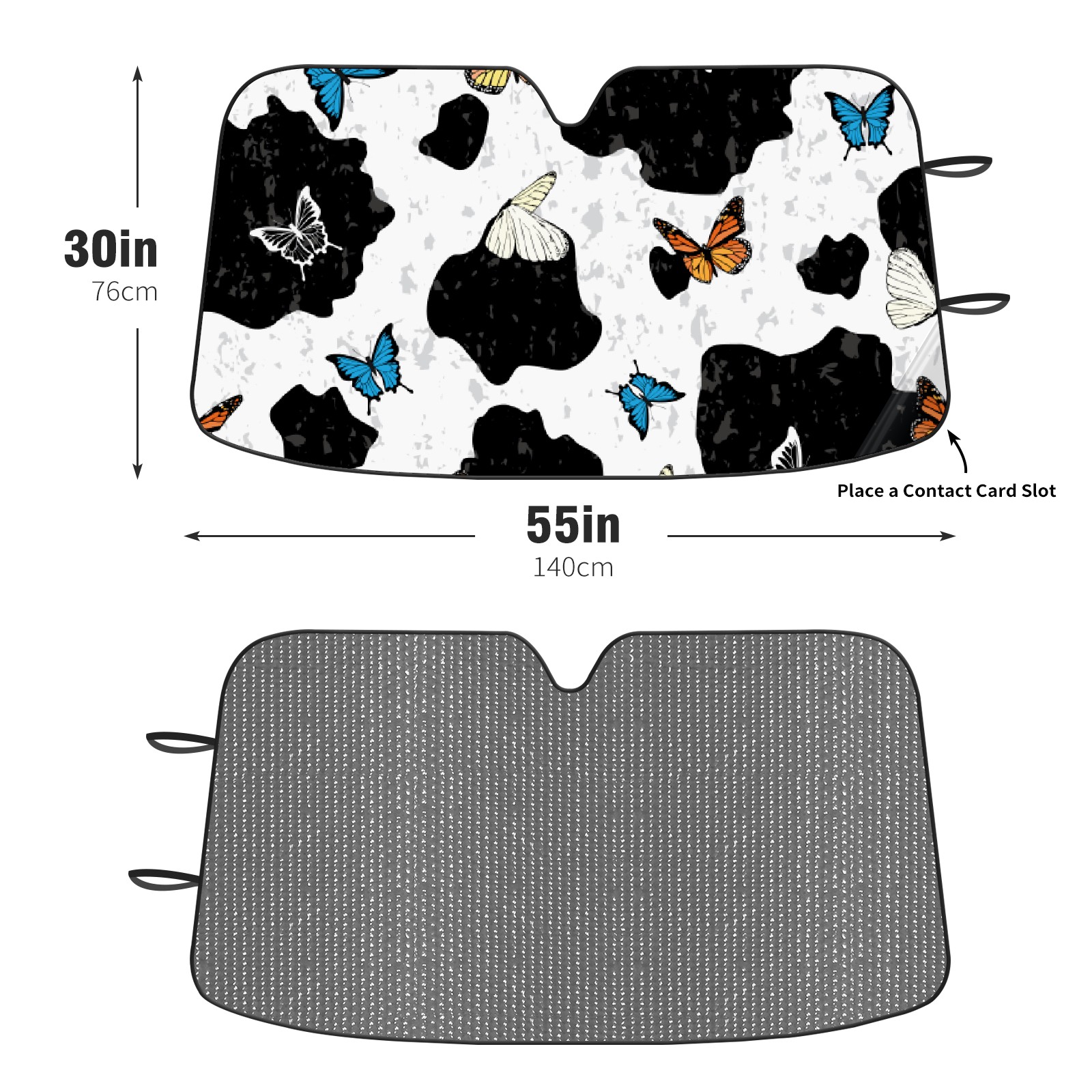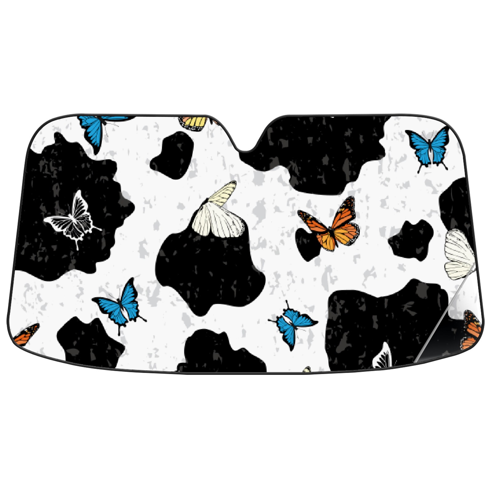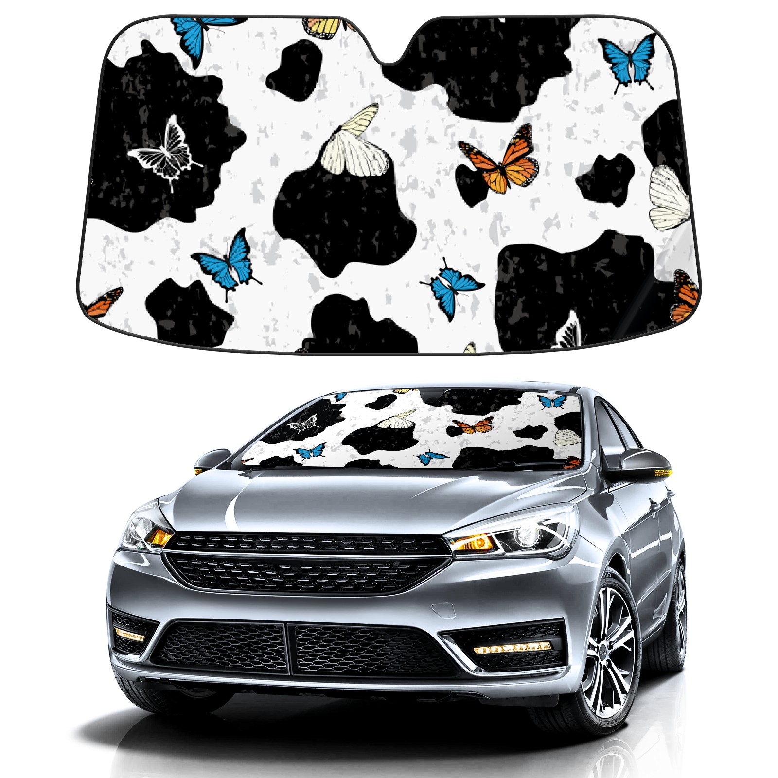 Car Windshield Sun Shade for Front Window Cow Print Butterfly Foldable Vehicle Windshield Car Sun Visor Covers Automotive Window Protector Car Privacy Sun Blocker