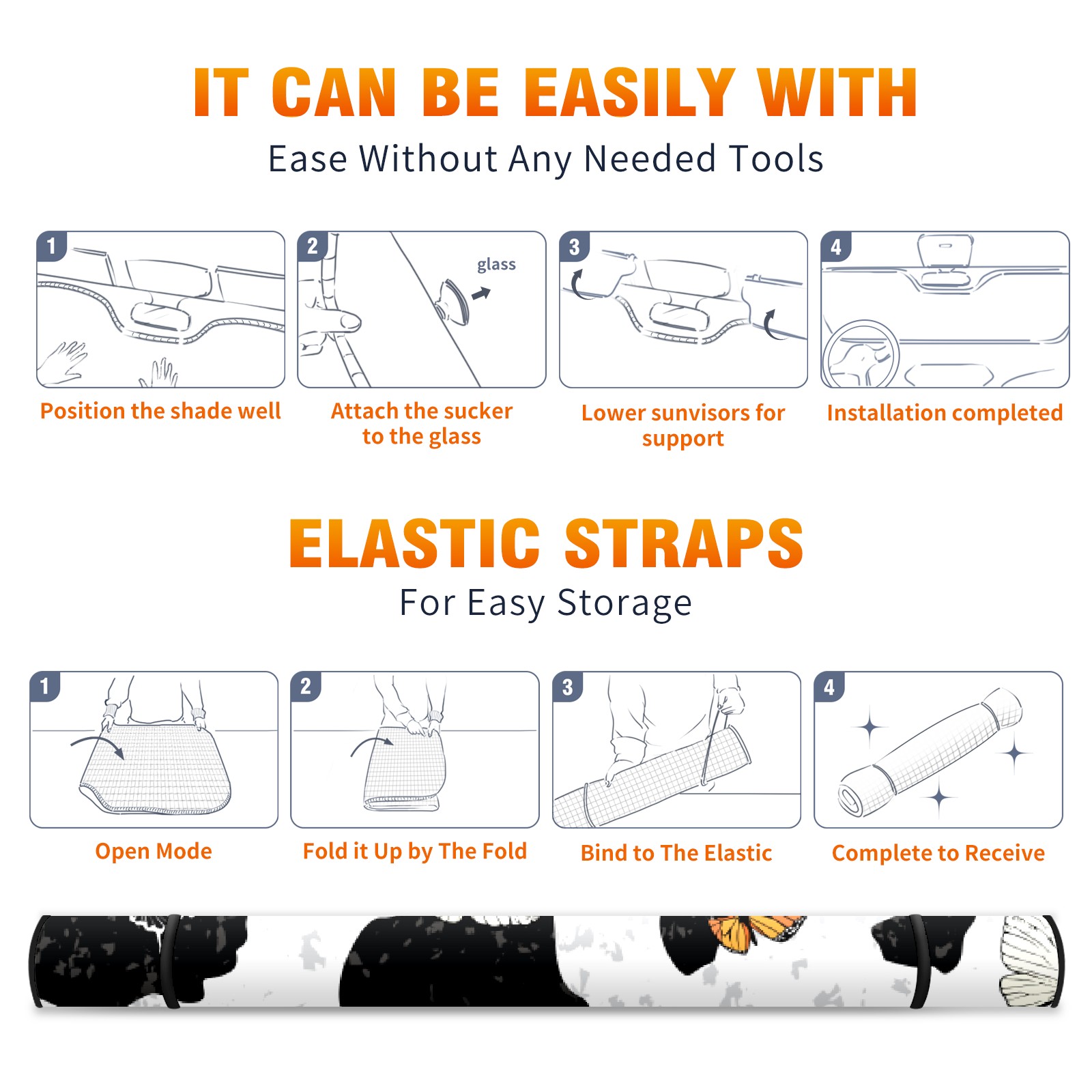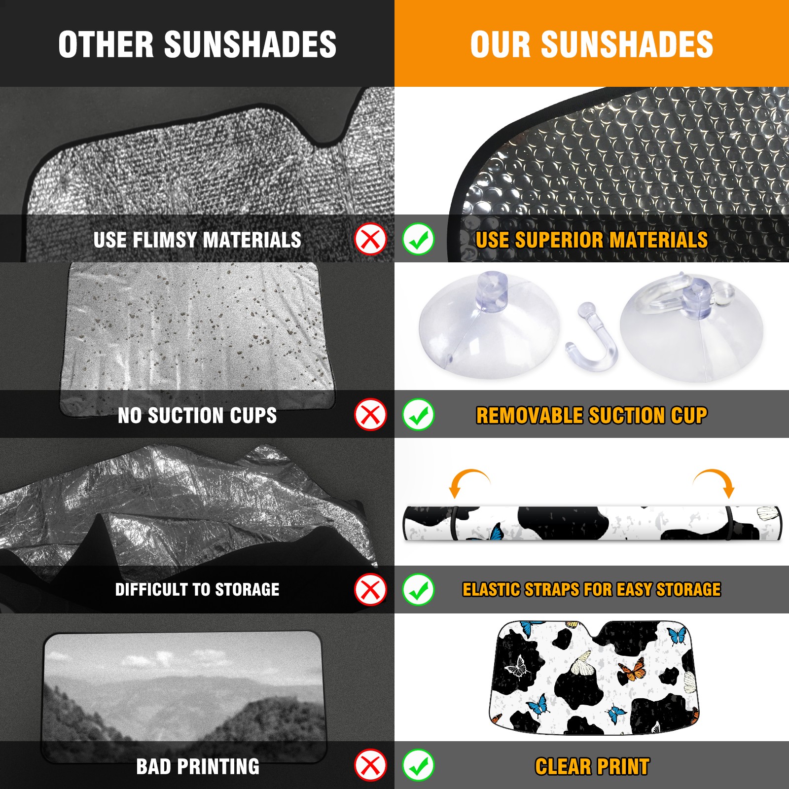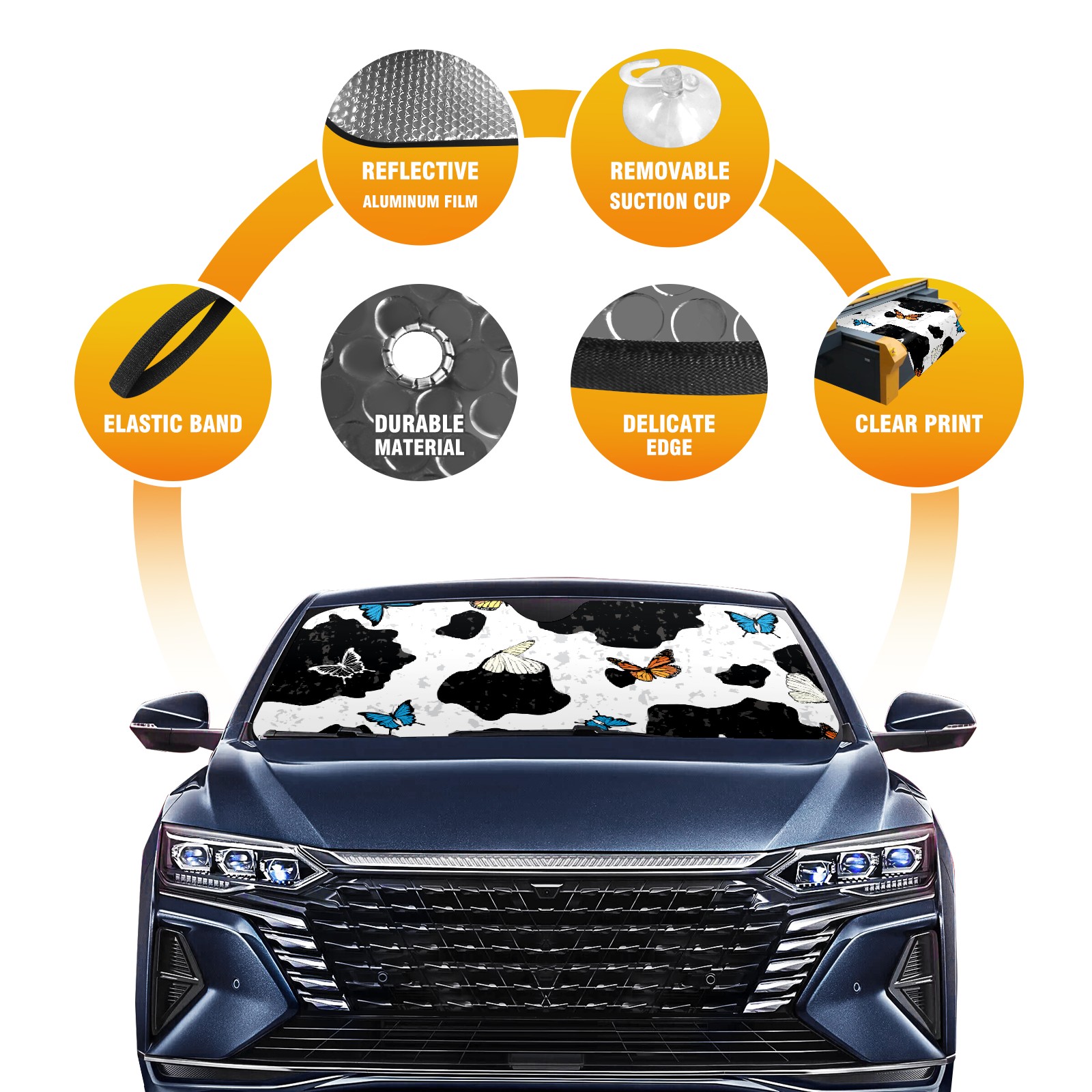 Car Windshield Sun Shade for Front Window Cow Print Butterfly Foldable Vehicle Windshield Car Sun Visor Covers Automotive Window Protector Car Privacy Sun Blocker