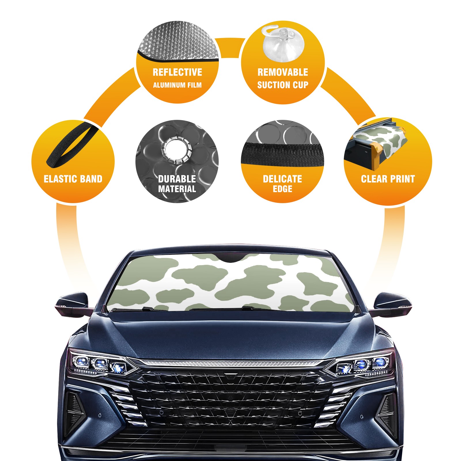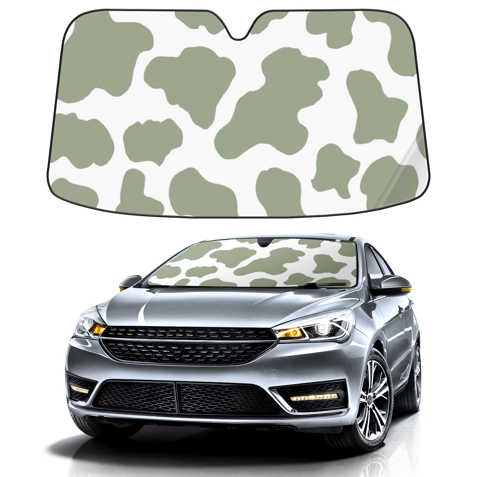 Car Windshield Sun Shade for Front Window Sage Green Cow Print Foldable Vehicle Windshield Car Sun Visor Covers Automotive Window Protector Car Privacy Sun Blocker