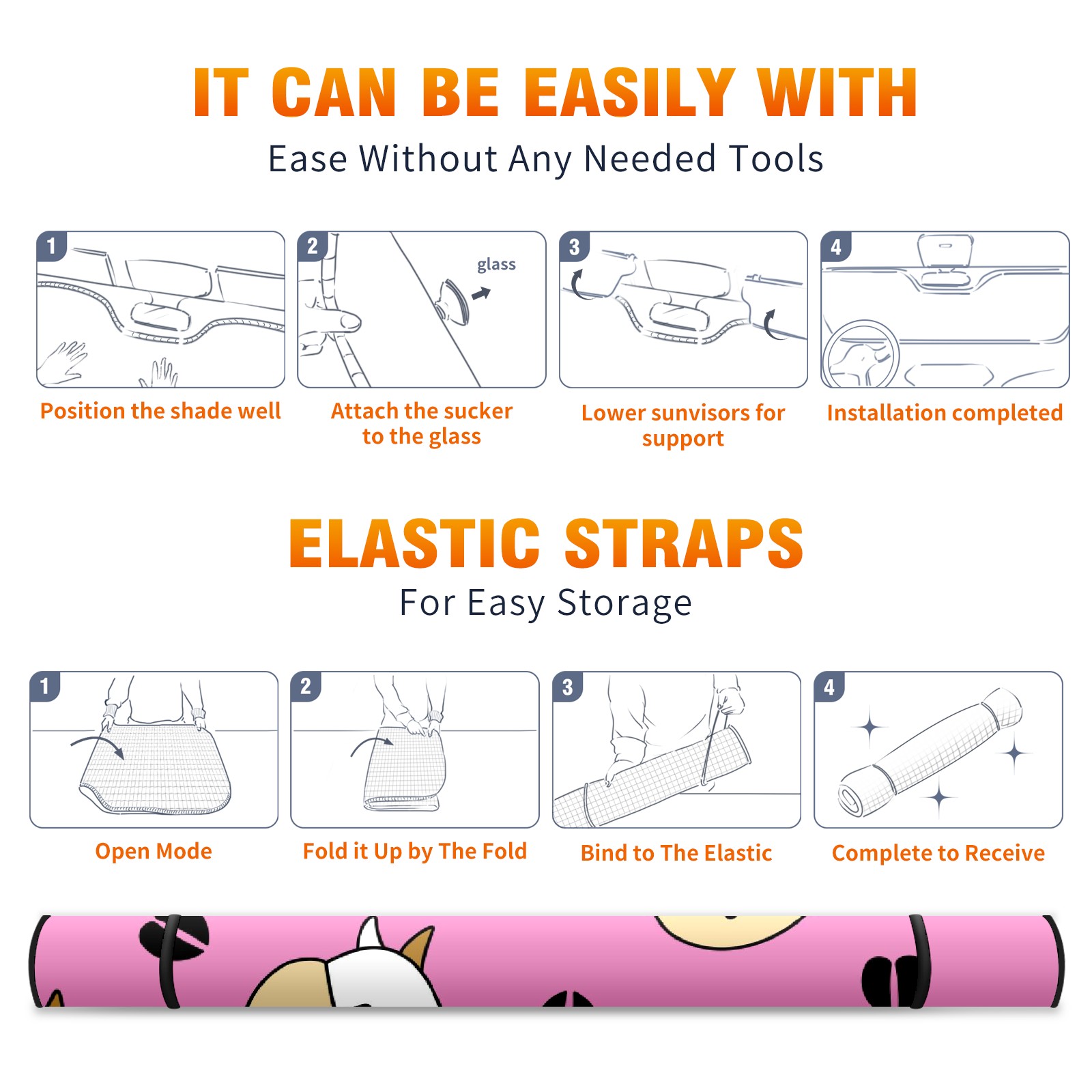 Car Windshield Sun Shade for Front Window Cow Print Foldable Vehicle Windshield Car Sun Visor Covers Automotive Window Protector Car Privacy Sun Blocker