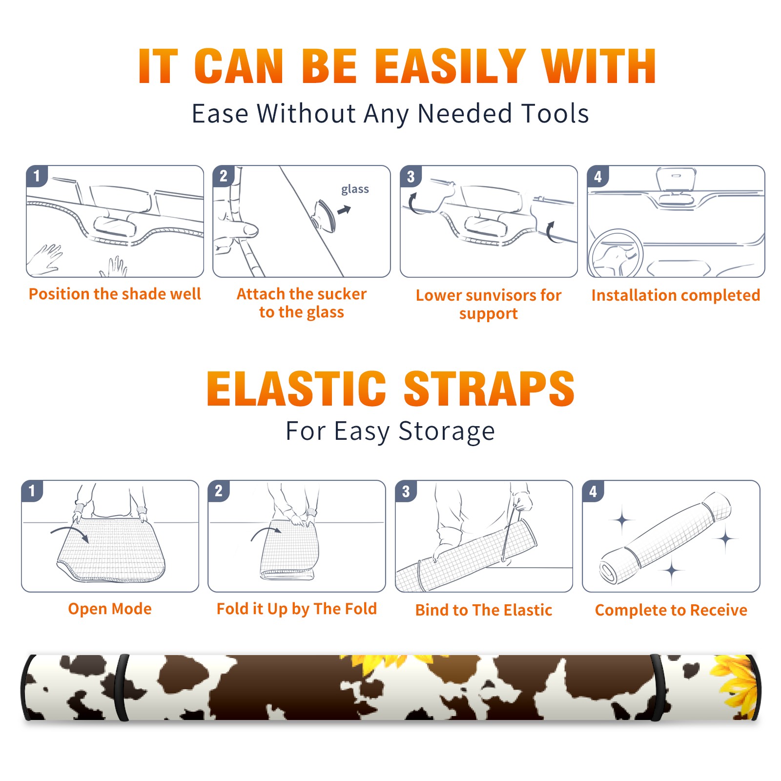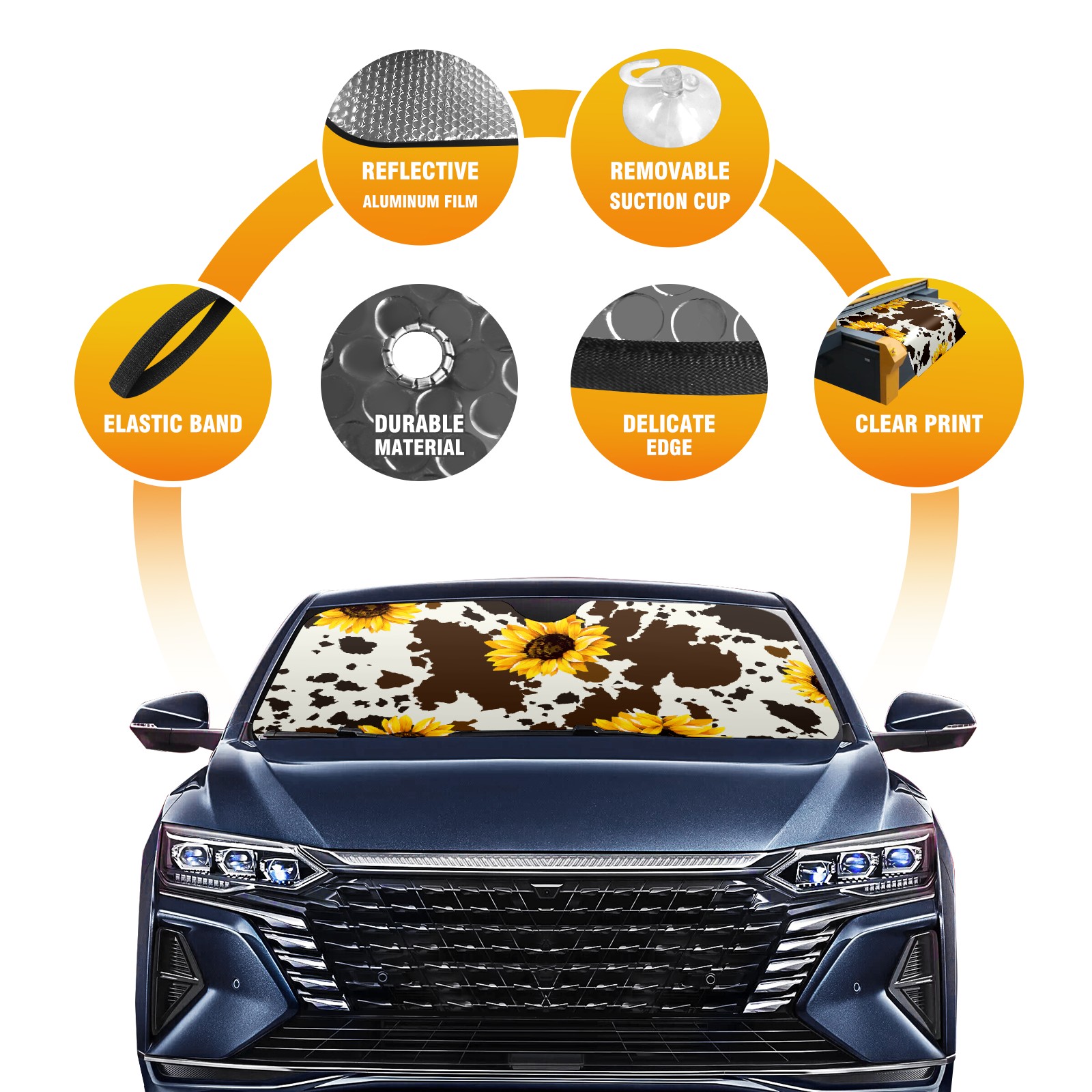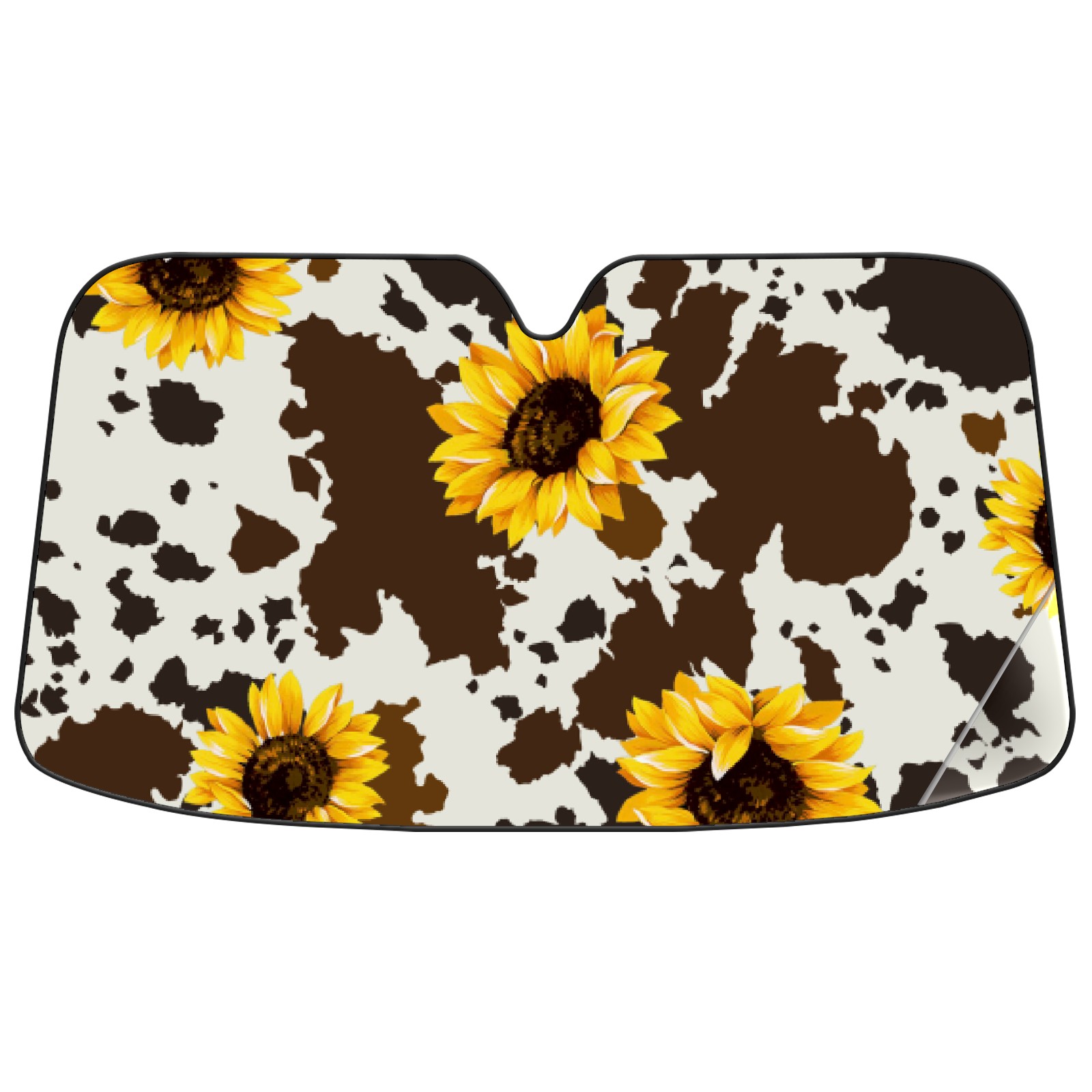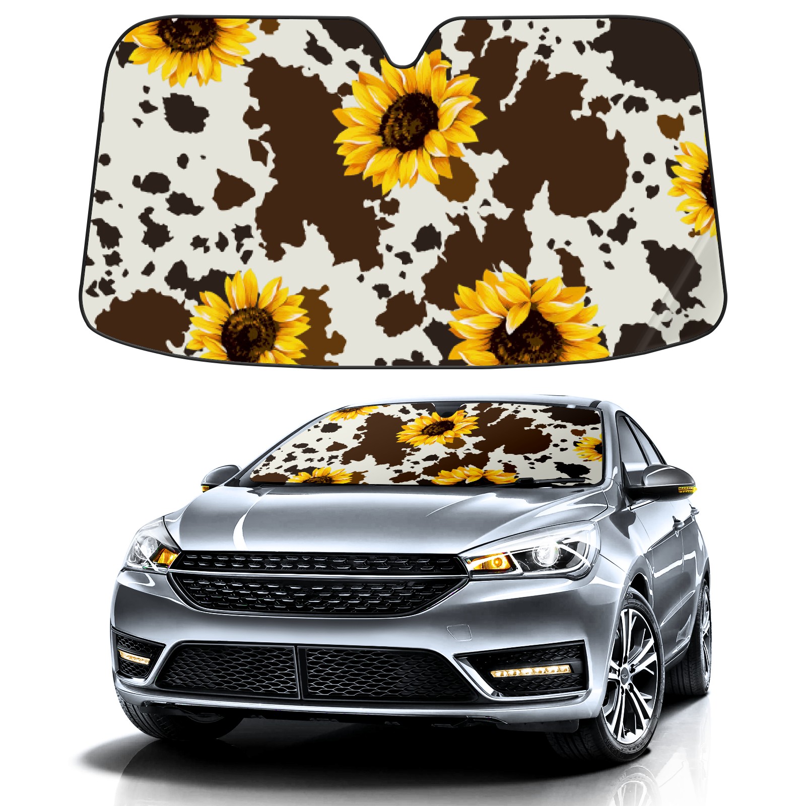 Car Windshield Sun Shade for Front Window Western Brown Cow Sunflower Print Foldable Vehicle Windshield Car Sun Visor Covers Automotive Window Protector Car Privacy Sun Blocker