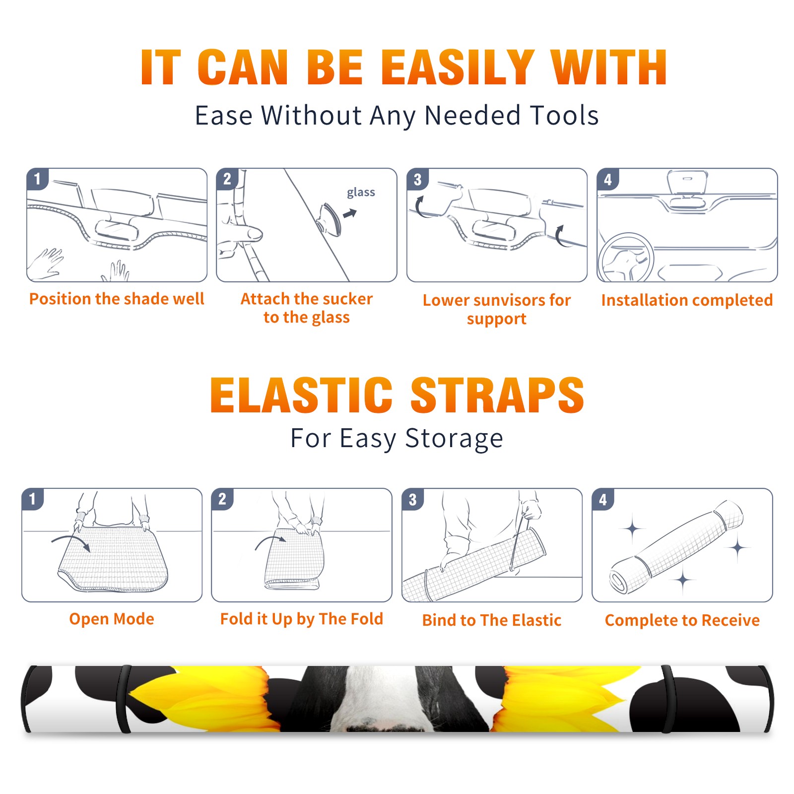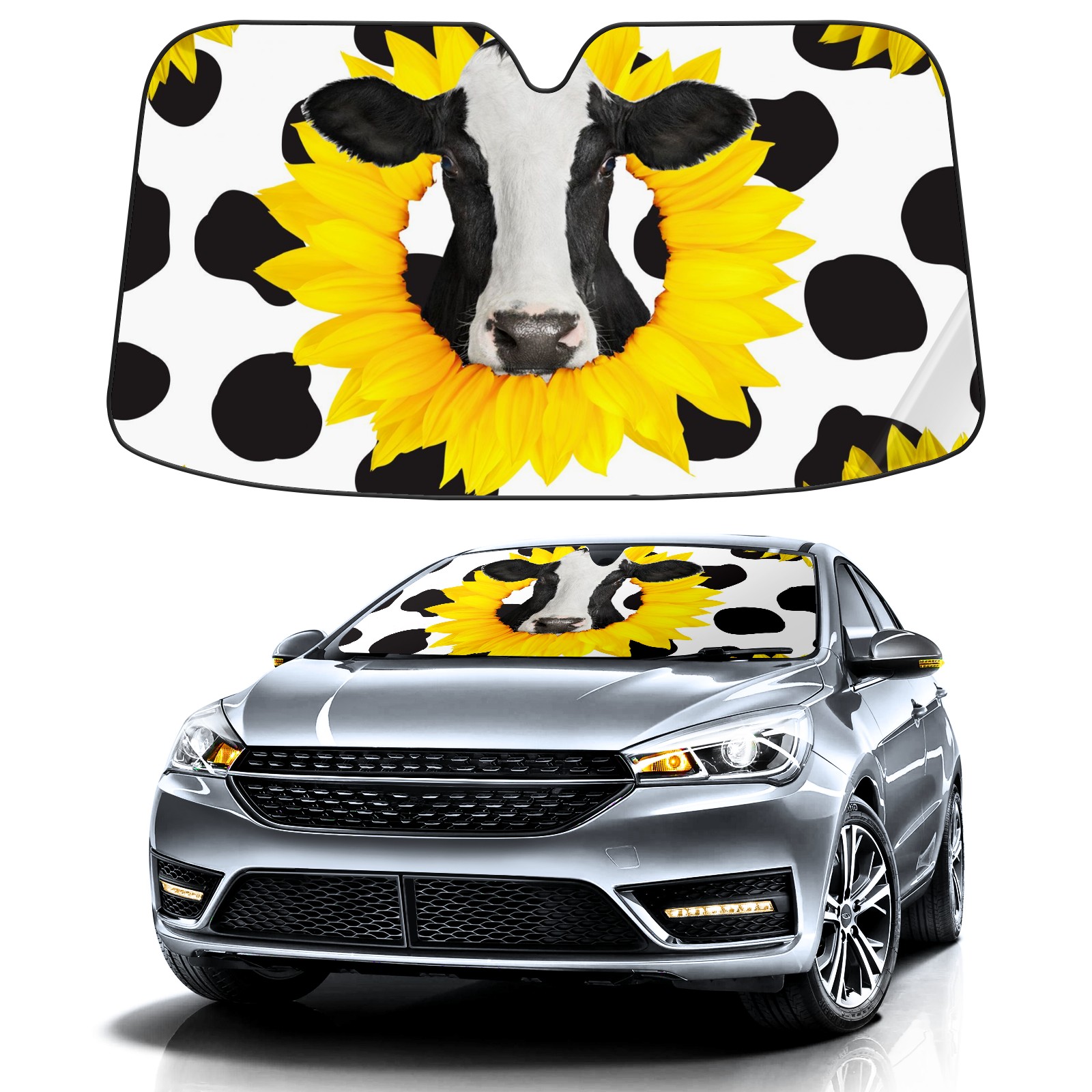 Car Windshield Sun Shade for Front Window Black And White Cow Print Foldable Vehicle Windshield Car Sun Visor Covers Automotive Window Protector Car Privacy Sun Blocker