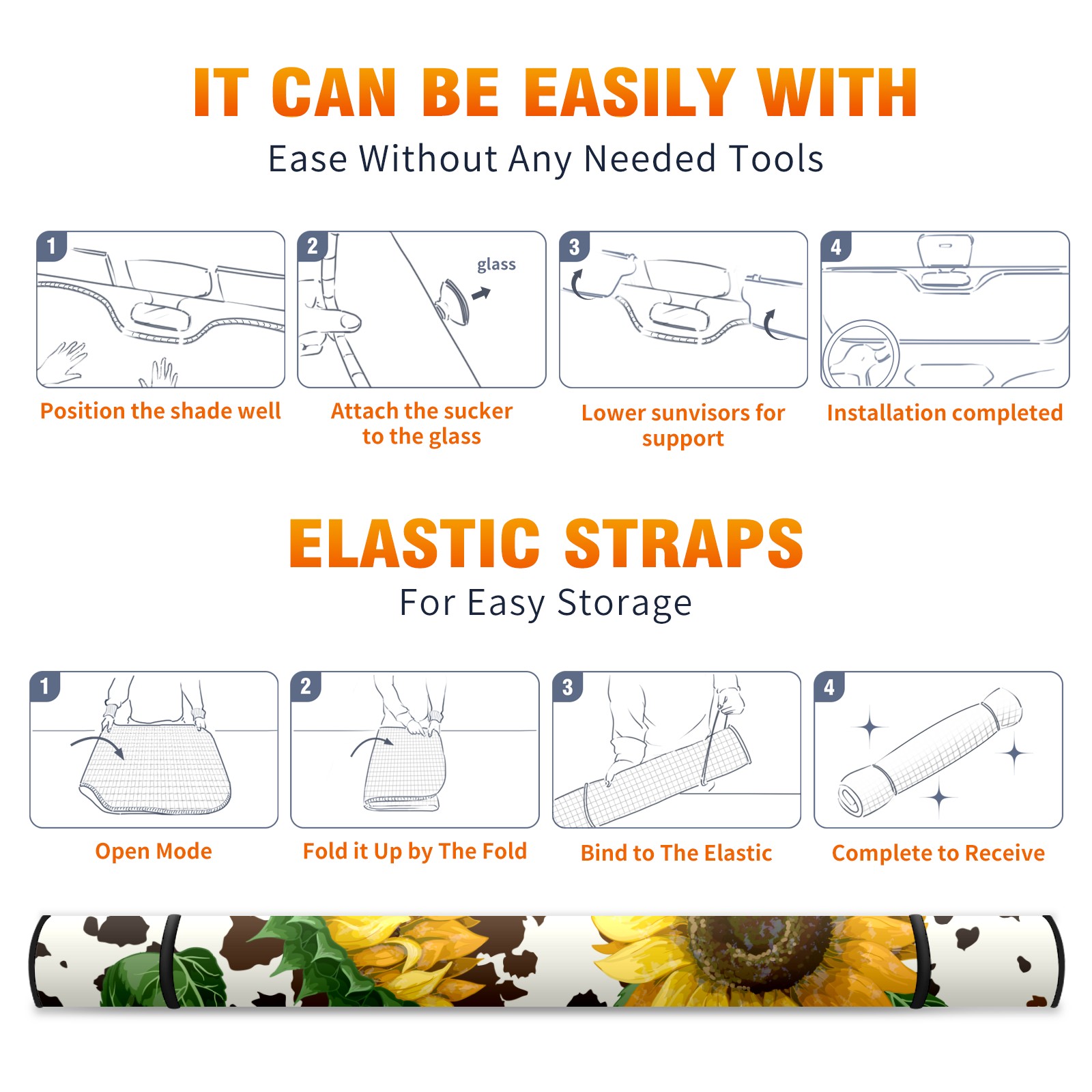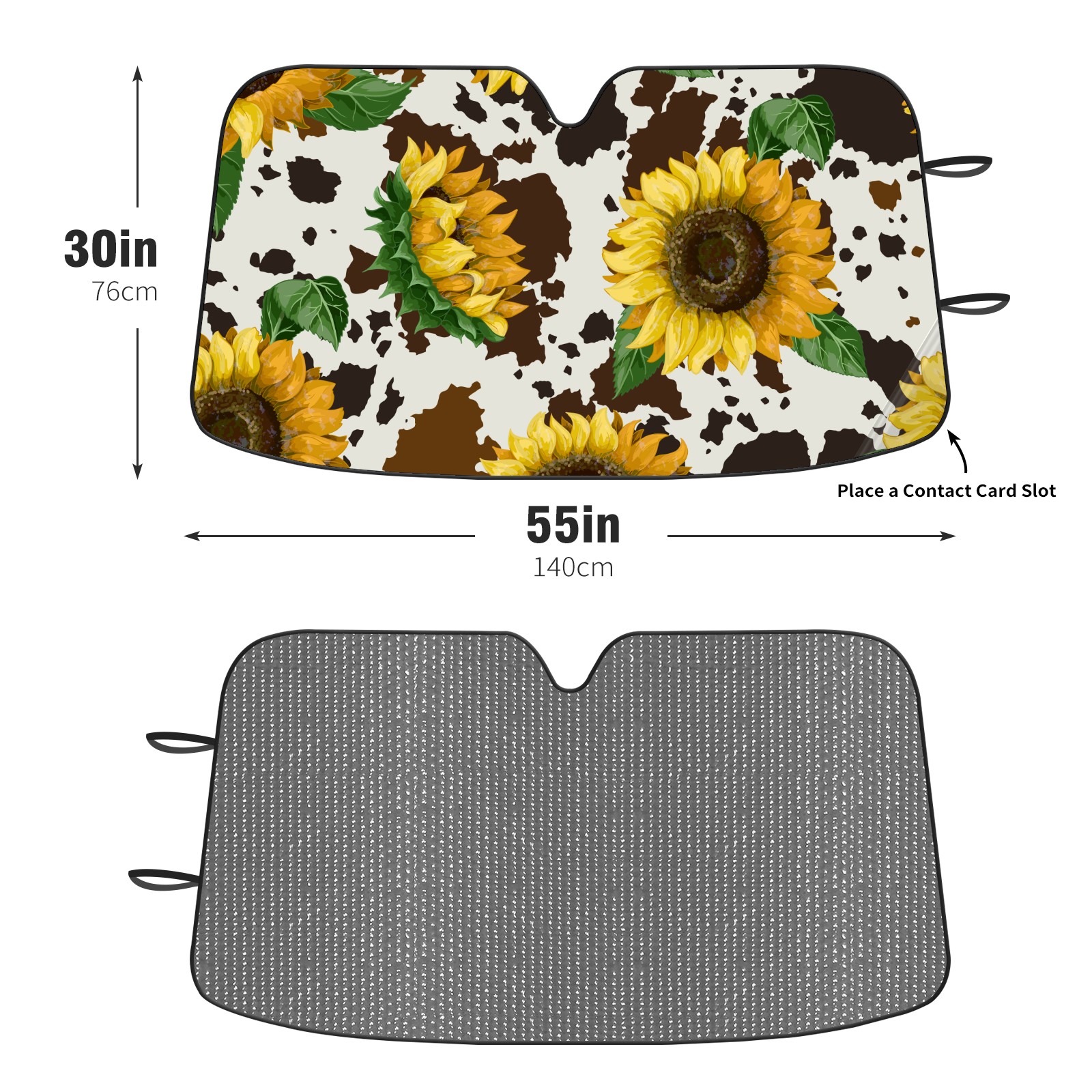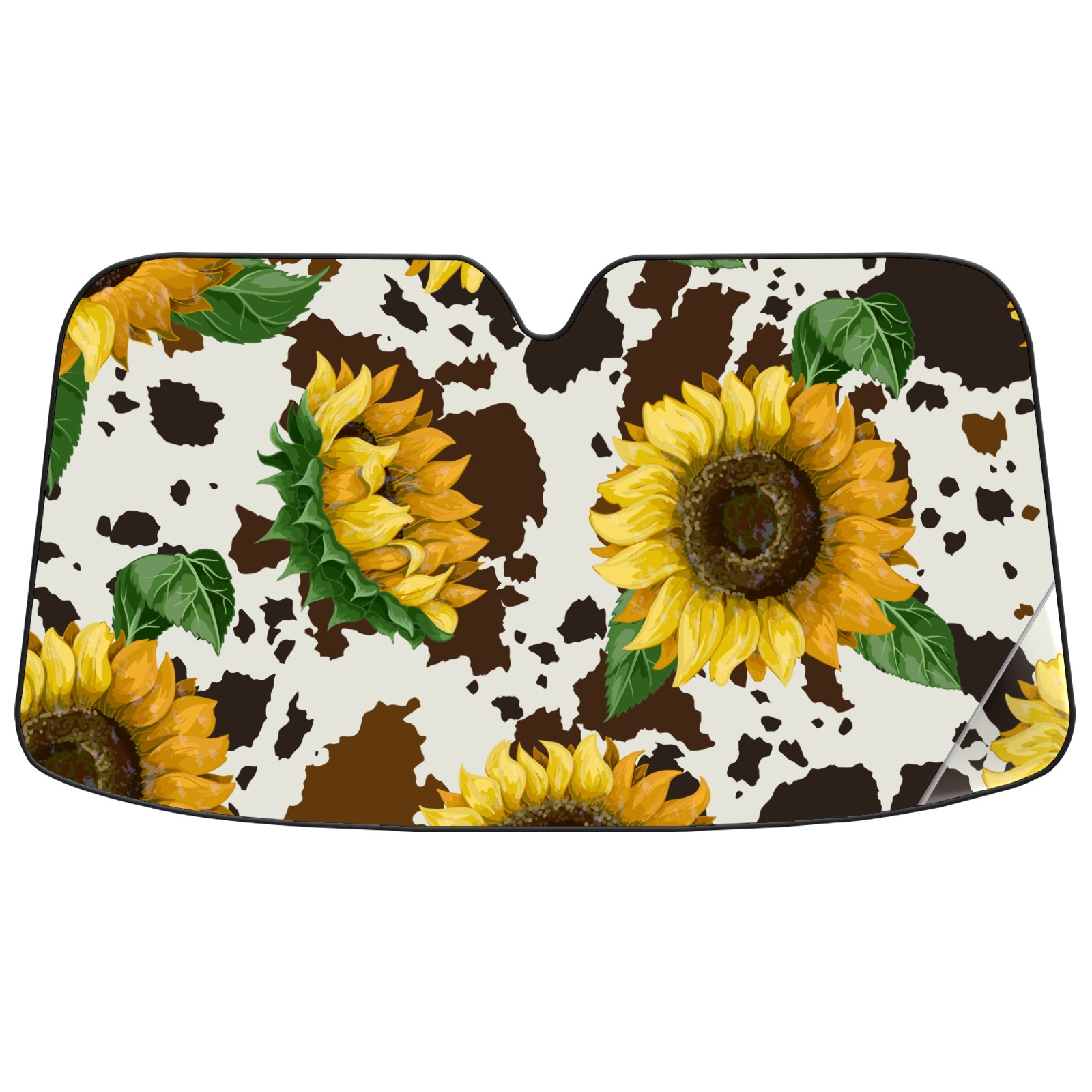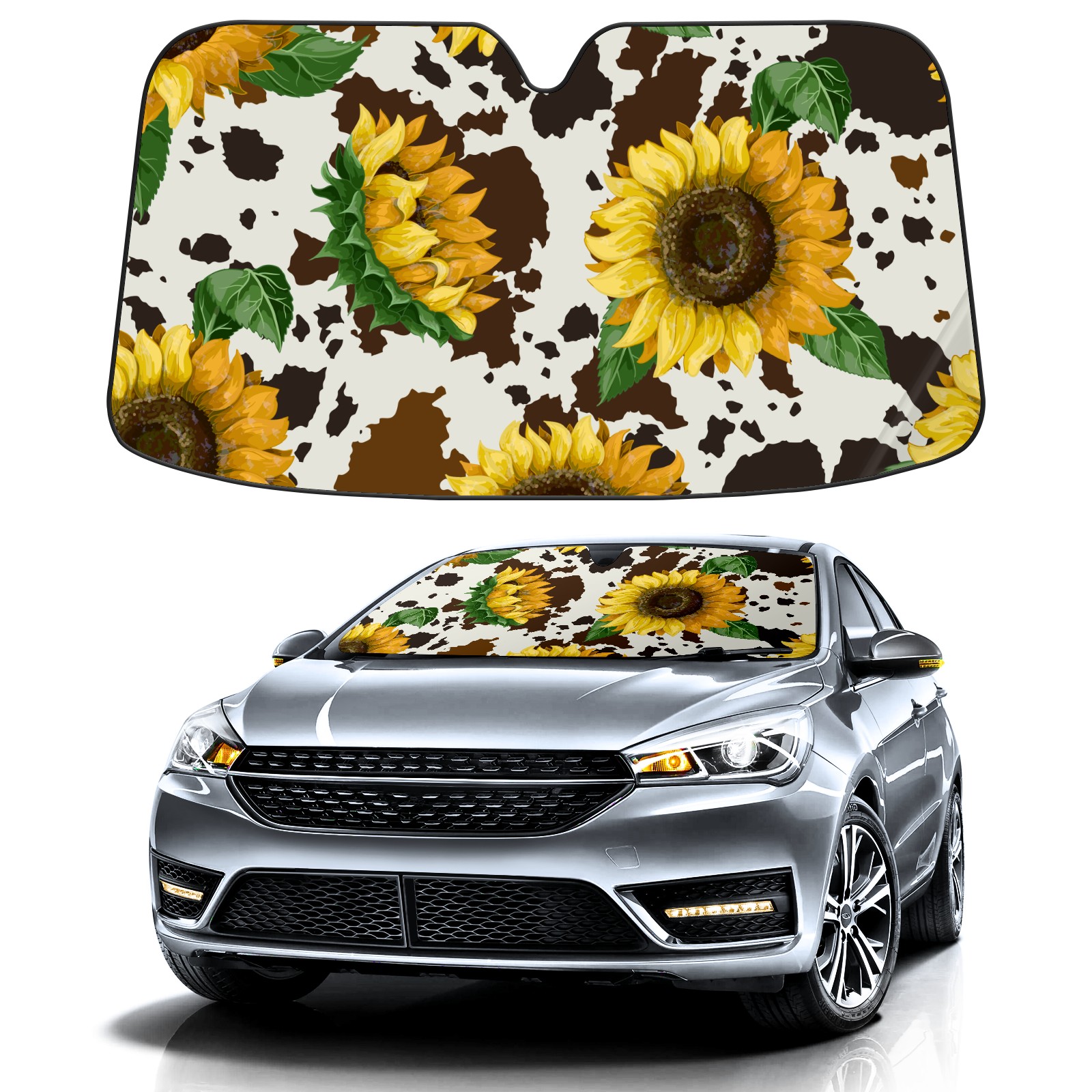 Car Windshield Sun Shade for Front Window Western Brown Black Cow Print Sunflower Foldable Vehicle Windshield Car Sun Visor Covers Automotive Window Protector Car Privacy Sun Blocker