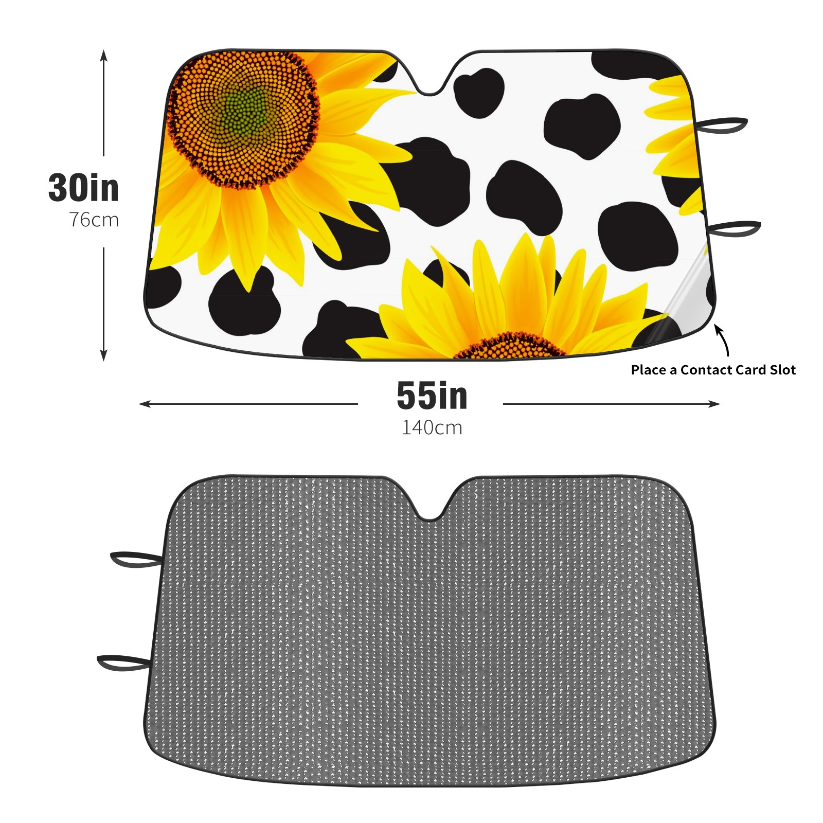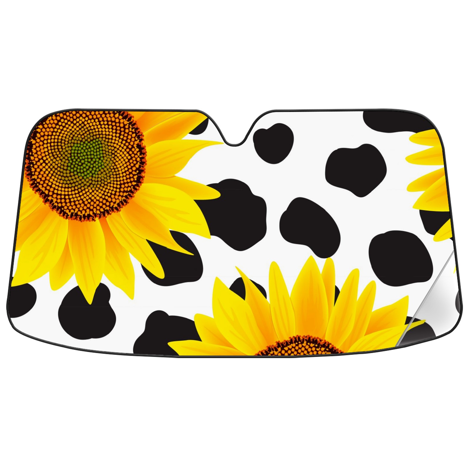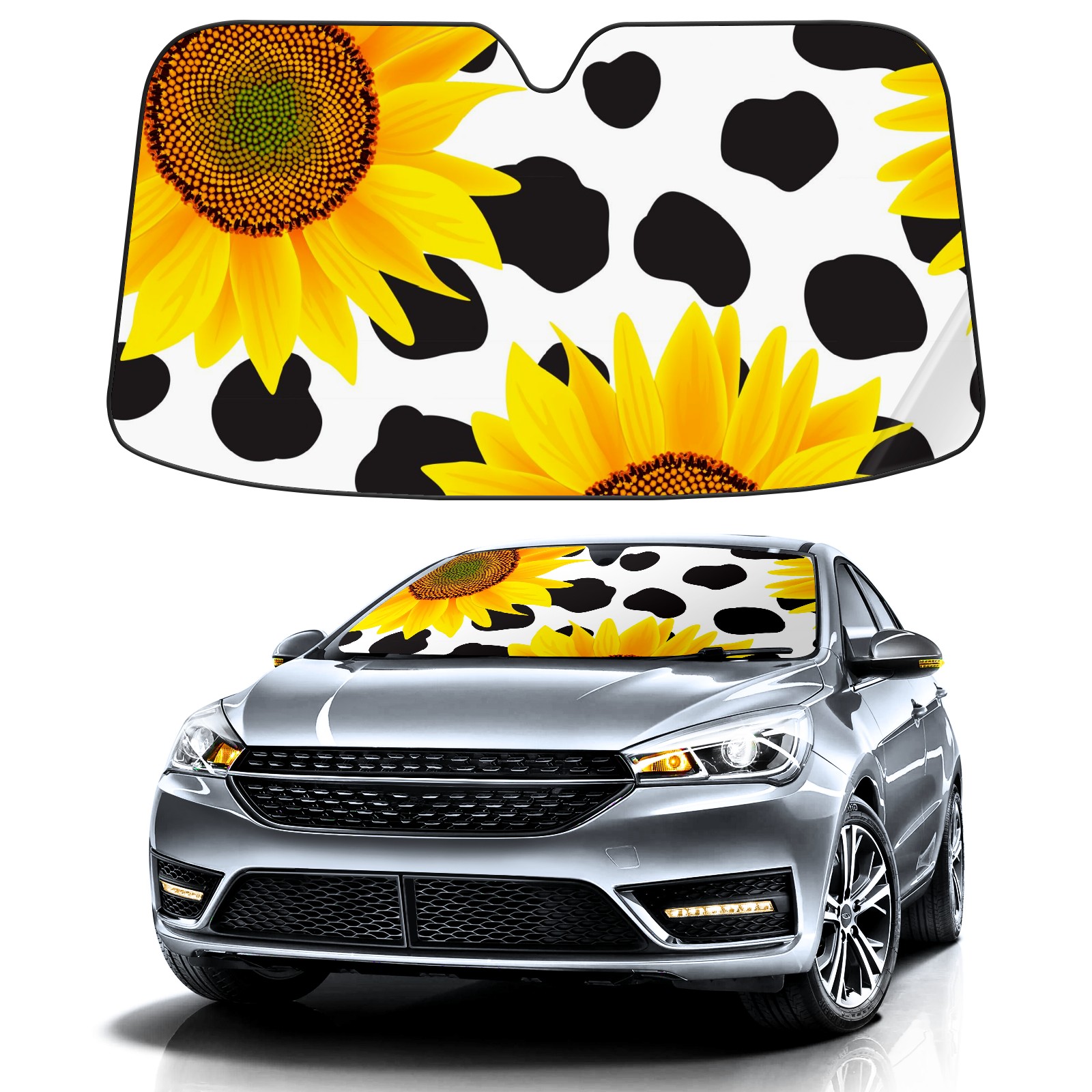 Car Windshield Sun Shade for Front Window Sunflower Cow Print Foldable Vehicle Windshield Car Sun Visor Covers Automotive Window Protector Car Privacy Sun Blocker