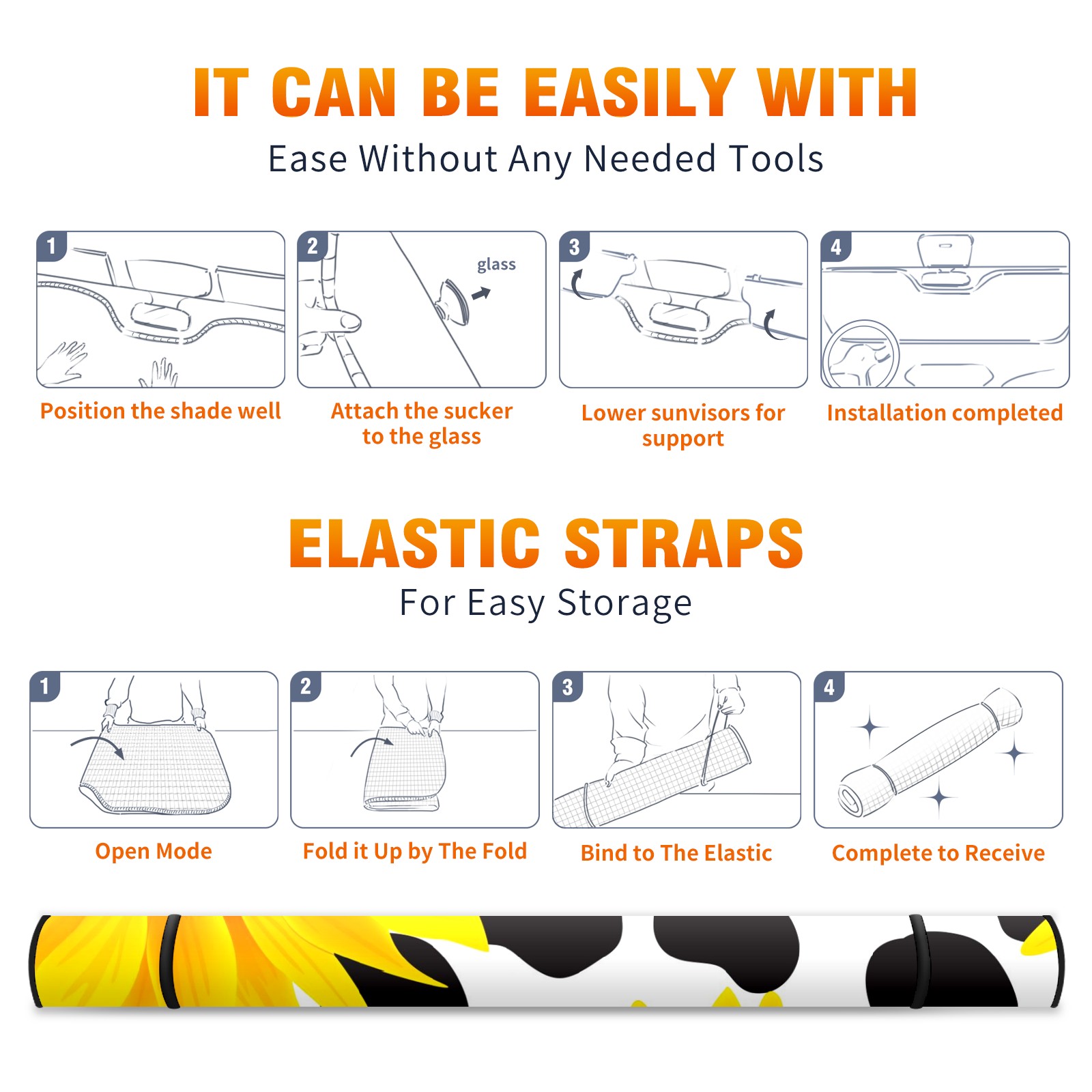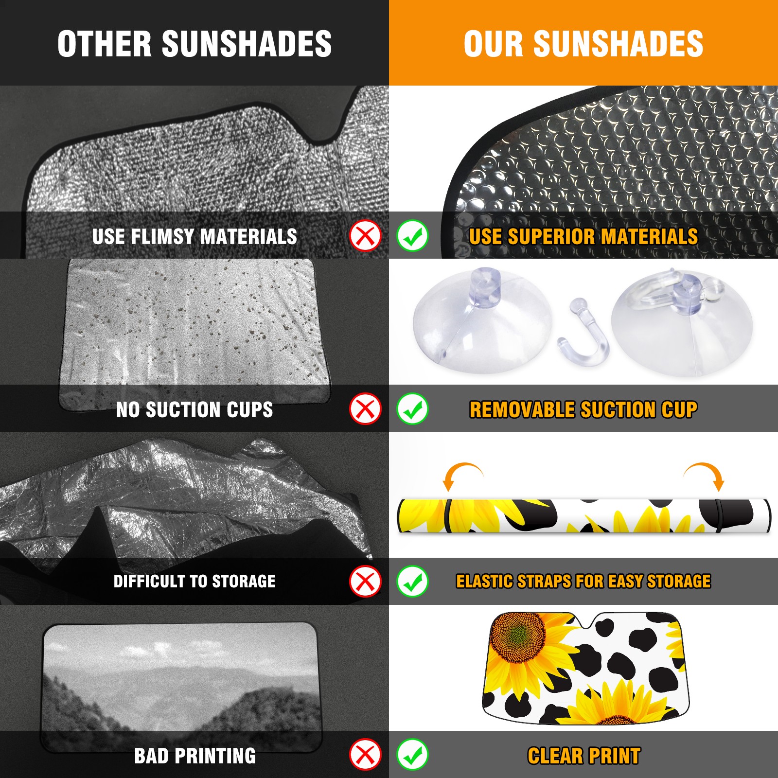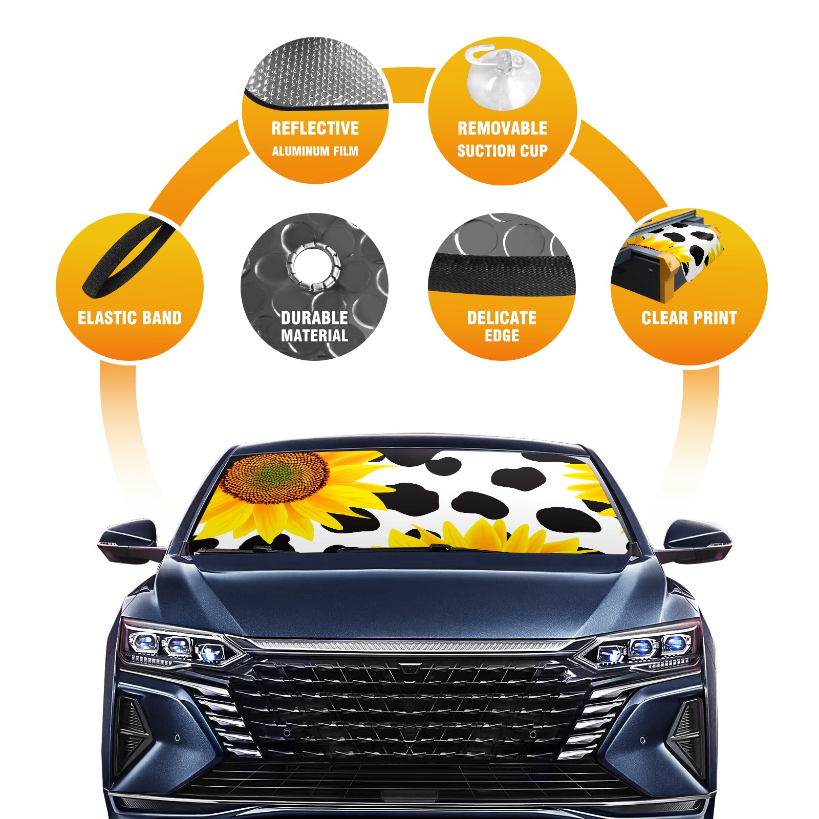 Car Windshield Sun Shade for Front Window Sunflower Cow Print Foldable Vehicle Windshield Car Sun Visor Covers Automotive Window Protector Car Privacy Sun Blocker
