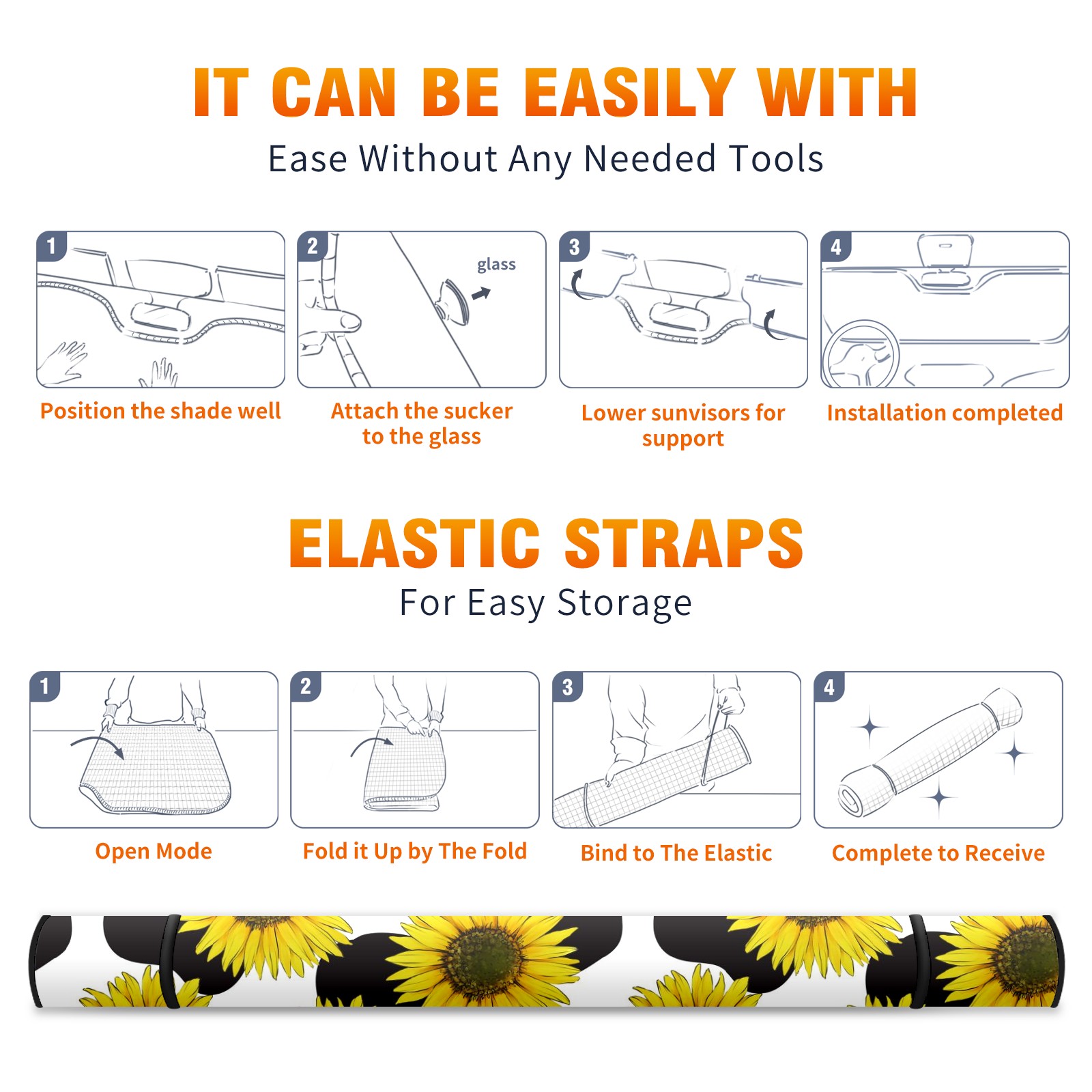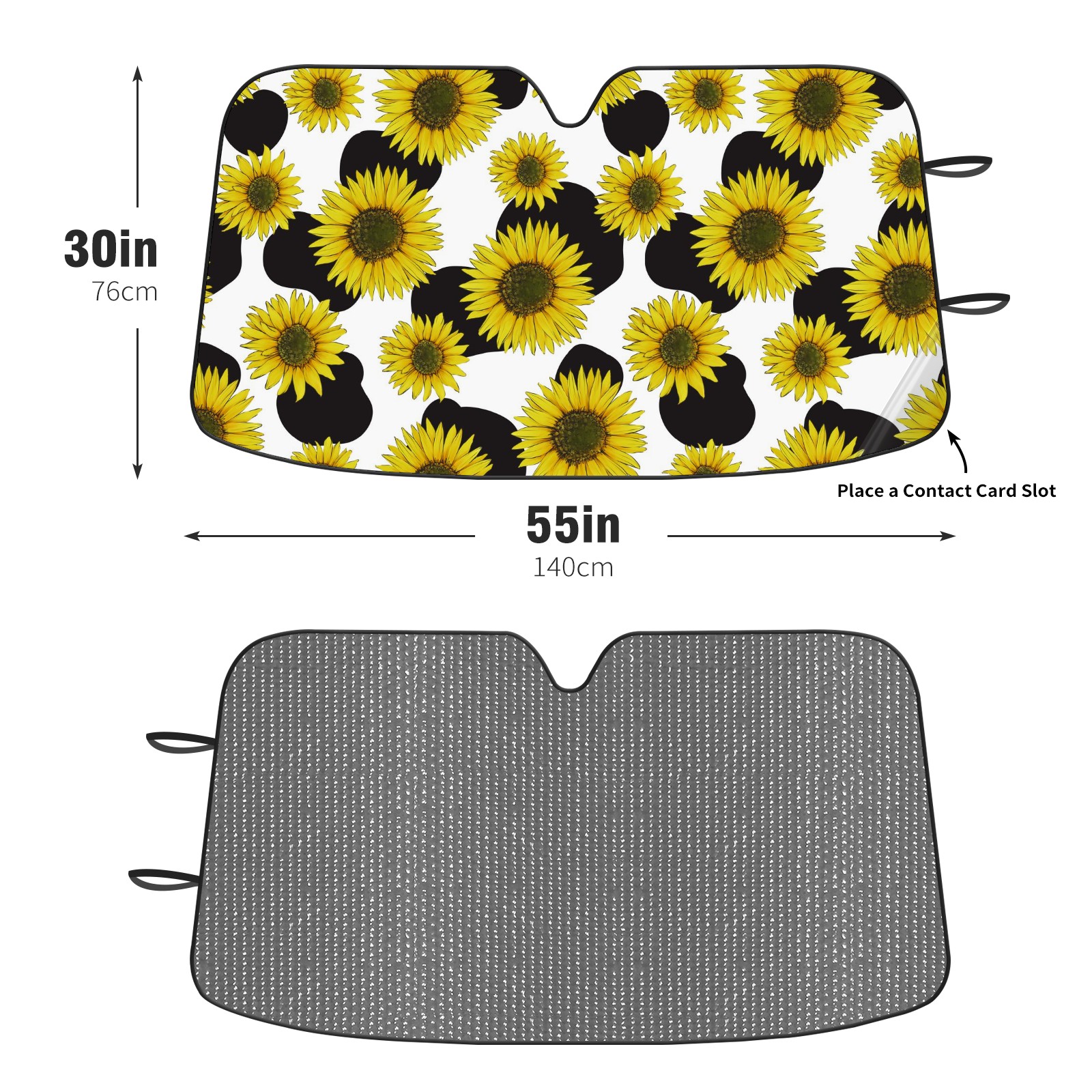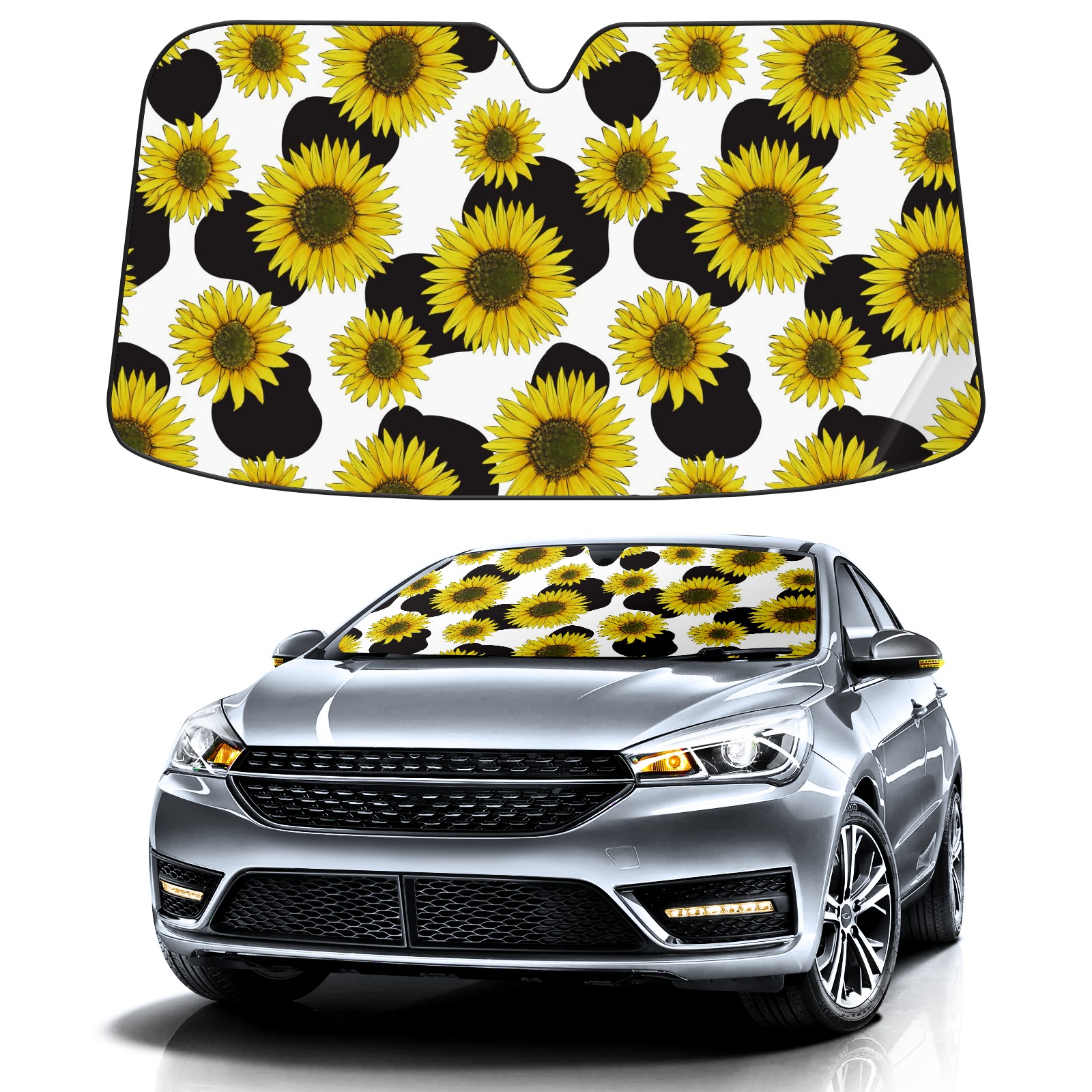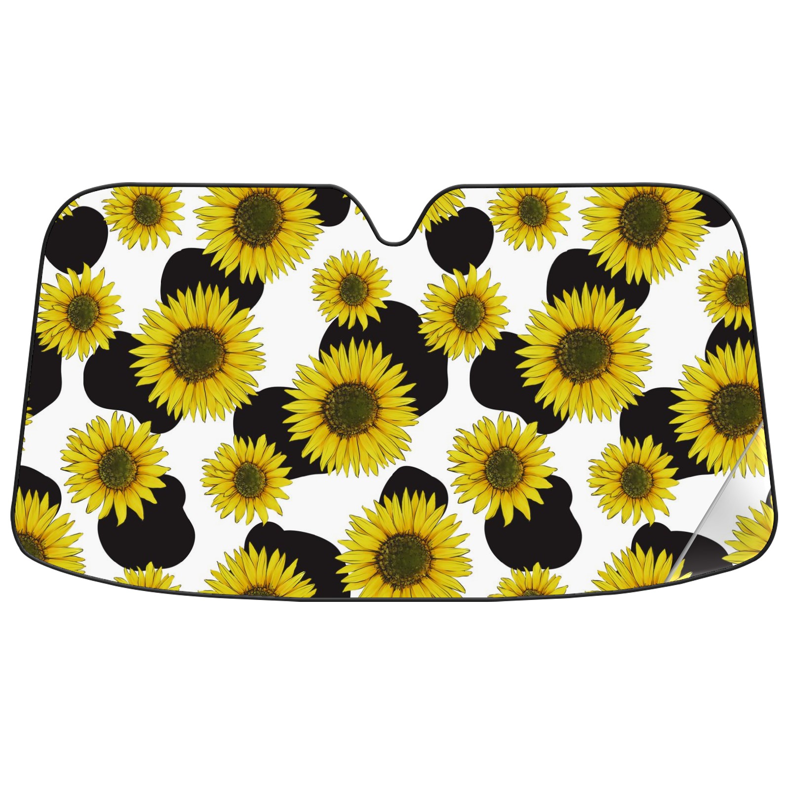 Car Windshield Sun Shade for Front Window Black And White Cow Sunflower Print Foldable Vehicle Windshield Car Sun Visor Covers Automotive Window Protector Car Privacy Sun Blocker