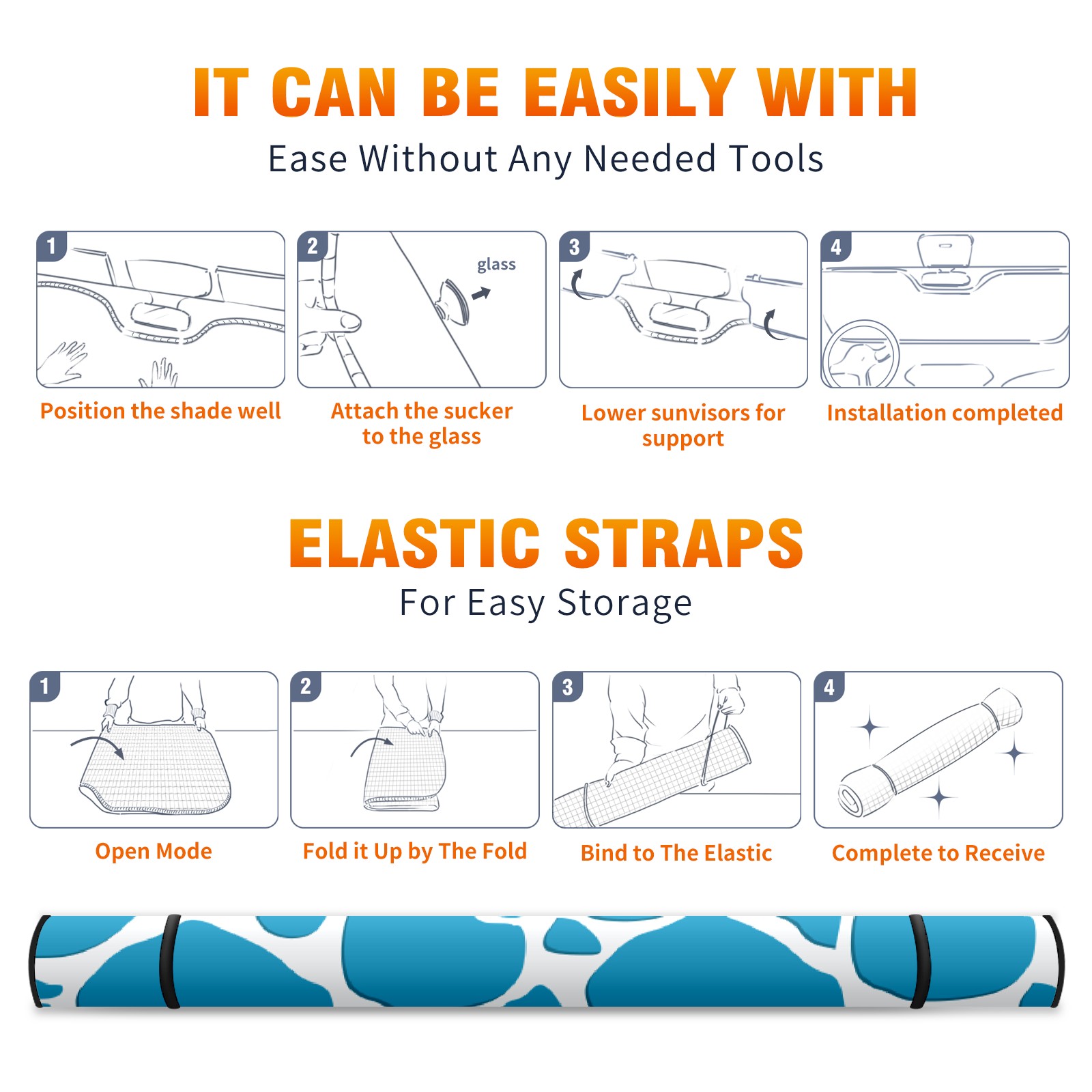 Car Windshield Sun Shade for Front Window Blue Farm Cow Print Foldable Vehicle Windshield Car Sun Visor Covers Automotive Window Protector Car Privacy Sun Blocker