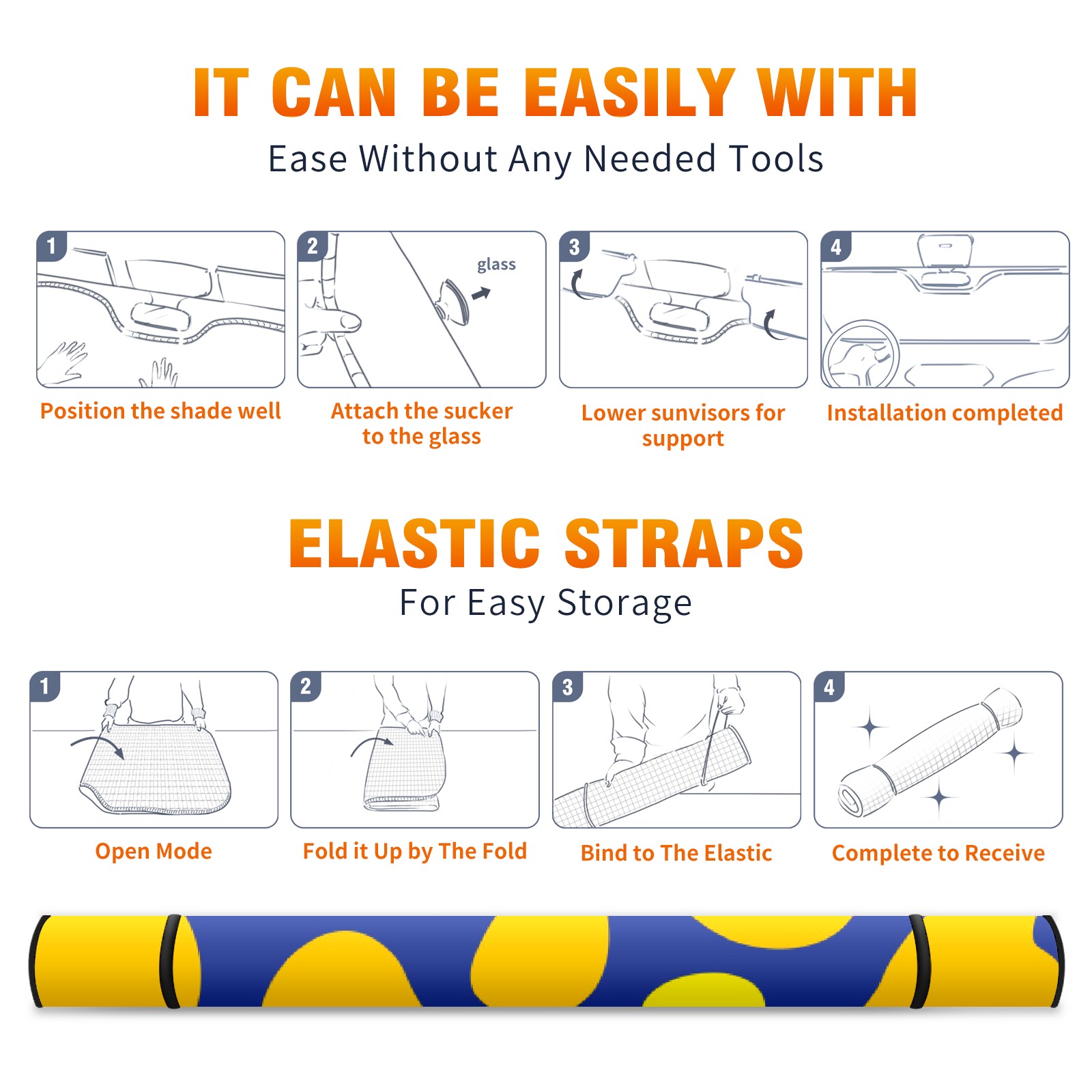 Diameter /Size 63"L x 33.5"W</b><br> Made from excellent materials which makes it sturdy and protects the car from the sun. Easy to use and pack. Makes the interior of the car cooler.You can easily stash the sunshade in the storage bag or store long term.It open and closes easy. Also the leather storage bag is durable and easy to put the umbrella back into.This windshield sunshade provides complete coverage and keeps your car interior cool under direct sun. It is easy to open and position under the windshield and around the rear-view mirror. Makes Your Car Easy To Identify, Perfect For Finding Your Car In Crowded Parking Lots And Garages.Great Choice: It Is A Great Gift For Dad, Boyfriend, Brother, Brother And Uncle, Friends, Classmates, Family And So On.<br> Notice:</b><br> Due To Difference Computer Monitors, The Color Maybe Slightly Different From Picture. As Different Measurement Methods, Measurement Data Will Float Within 2%.I Hope You Understand.<br> If You Have Any Question About The Item Please Do Not Hesitate To Contact Us Immediately And We Will Give You A Satisfactory Reply Within 24 Hours.