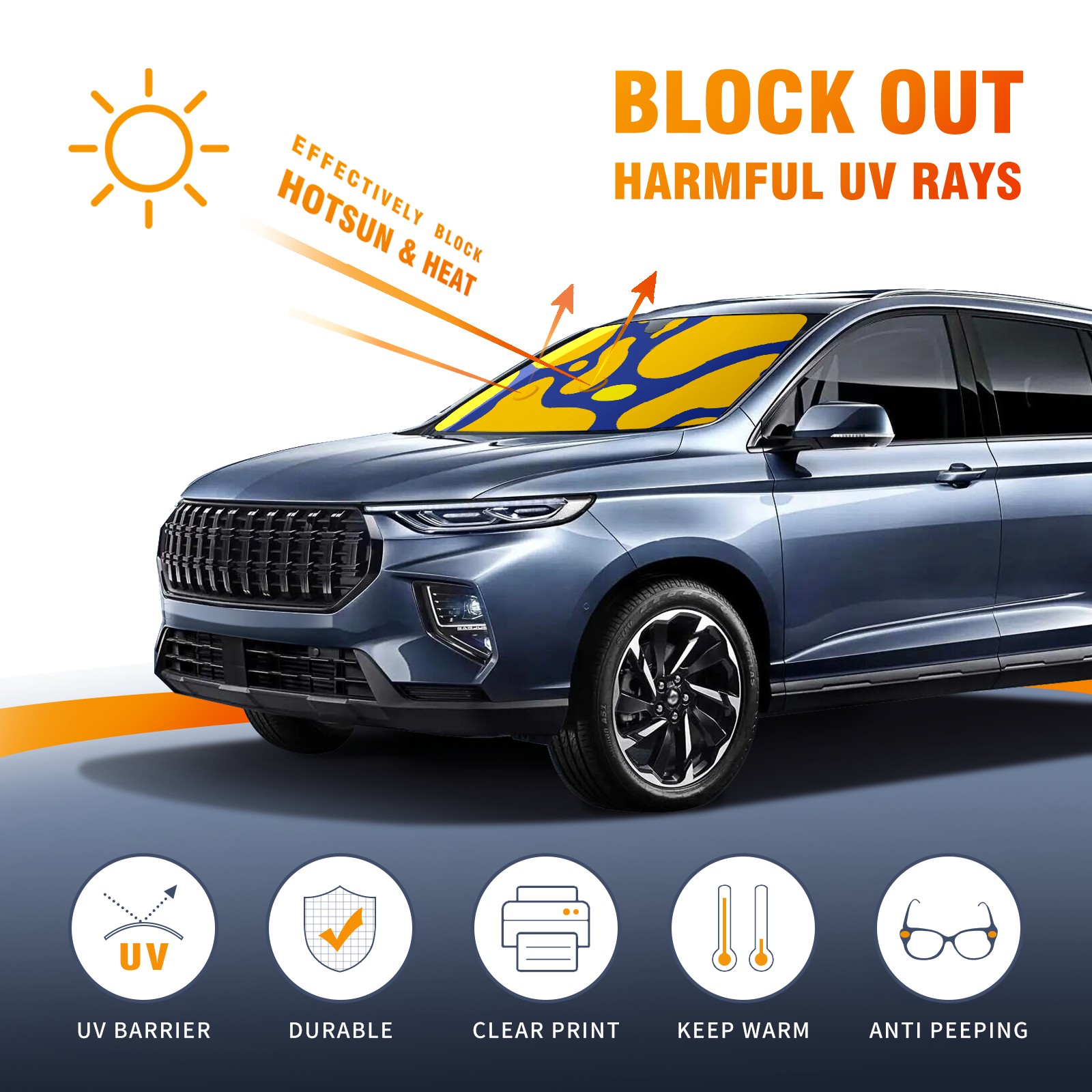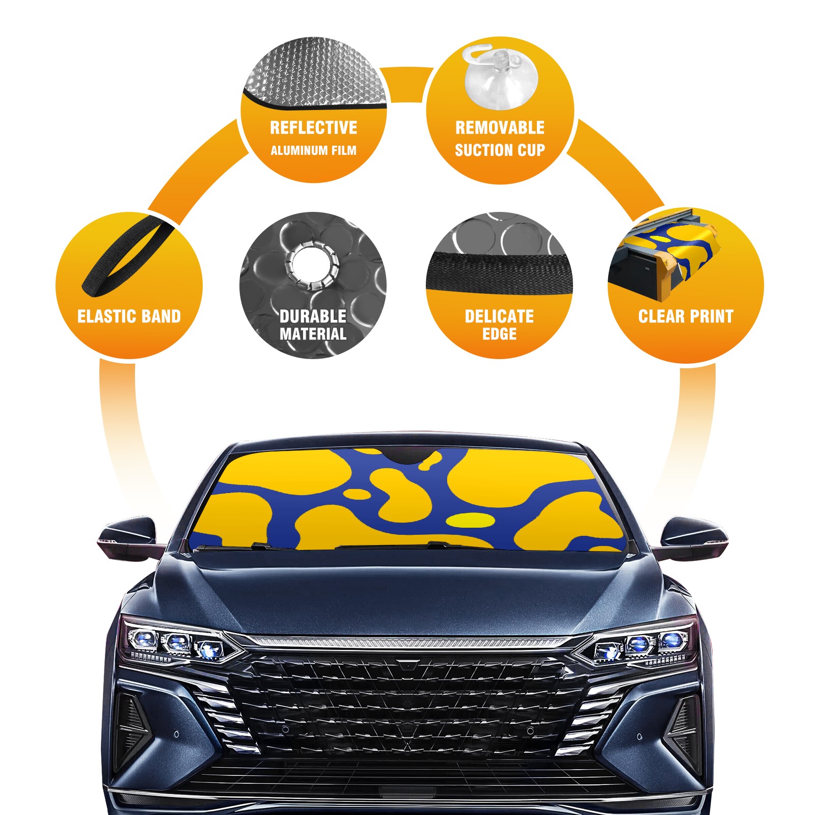 Car Windshield Sun Shade for Front Window Yellow Purple Animal Cow Print Foldable Vehicle Windshield Car Sun Visor Covers Automotive Window Protector Car Privacy Sun Blocker