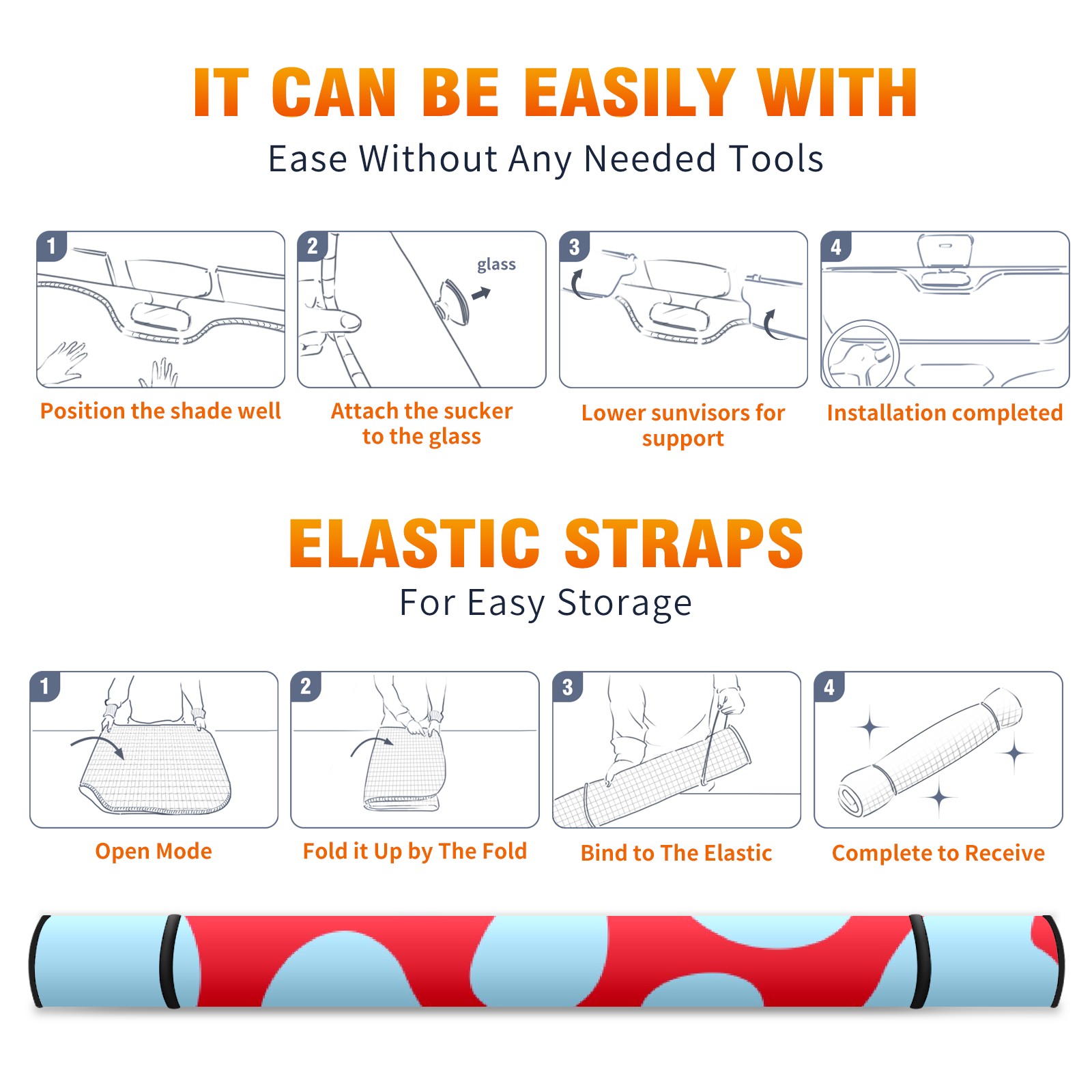 Diameter /Size 63"L x 33.5"W</b><br> Made from excellent materials which makes it sturdy and protects the car from the sun. Easy to use and pack. Makes the interior of the car cooler.You can easily stash the sunshade in the storage bag or store long term.It open and closes easy. Also the leather storage bag is durable and easy to put the umbrella back into.This windshield sunshade provides complete coverage and keeps your car interior cool under direct sun. It is easy to open and position under the windshield and around the rear-view mirror. Makes Your Car Easy To Identify, Perfect For Finding Your Car In Crowded Parking Lots And Garages.Great Choice: It Is A Great Gift For Dad, Boyfriend, Brother, Brother And Uncle, Friends, Classmates, Family And So On.<br> Notice:</b><br> Due To Difference Computer Monitors, The Color Maybe Slightly Different From Picture. As Different Measurement Methods, Measurement Data Will Float Within 2%.I Hope You Understand.<br> If You Have Any Question About The Item Please Do Not Hesitate To Contact Us Immediately And We Will Give You A Satisfactory Reply Within 24 Hours.