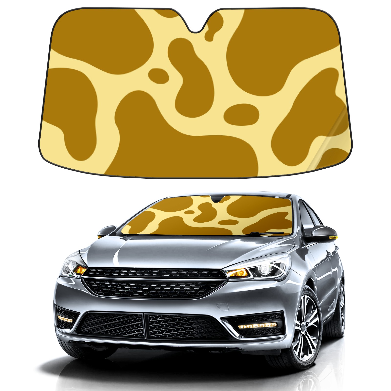 Car Windshield Sun Shade for Front Window Brown Animal Cow Print Pattern Foldable Vehicle Windshield Car Sun Visor Covers Automotive Window Protector Car Privacy Sun Blocker
