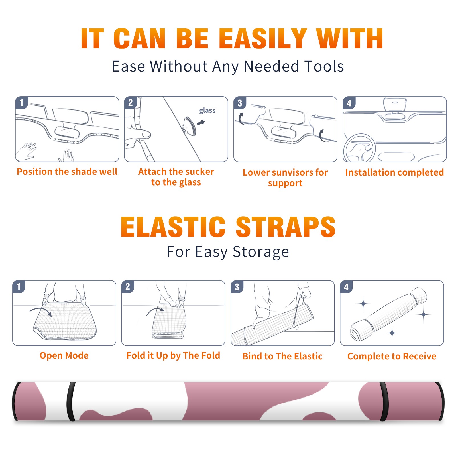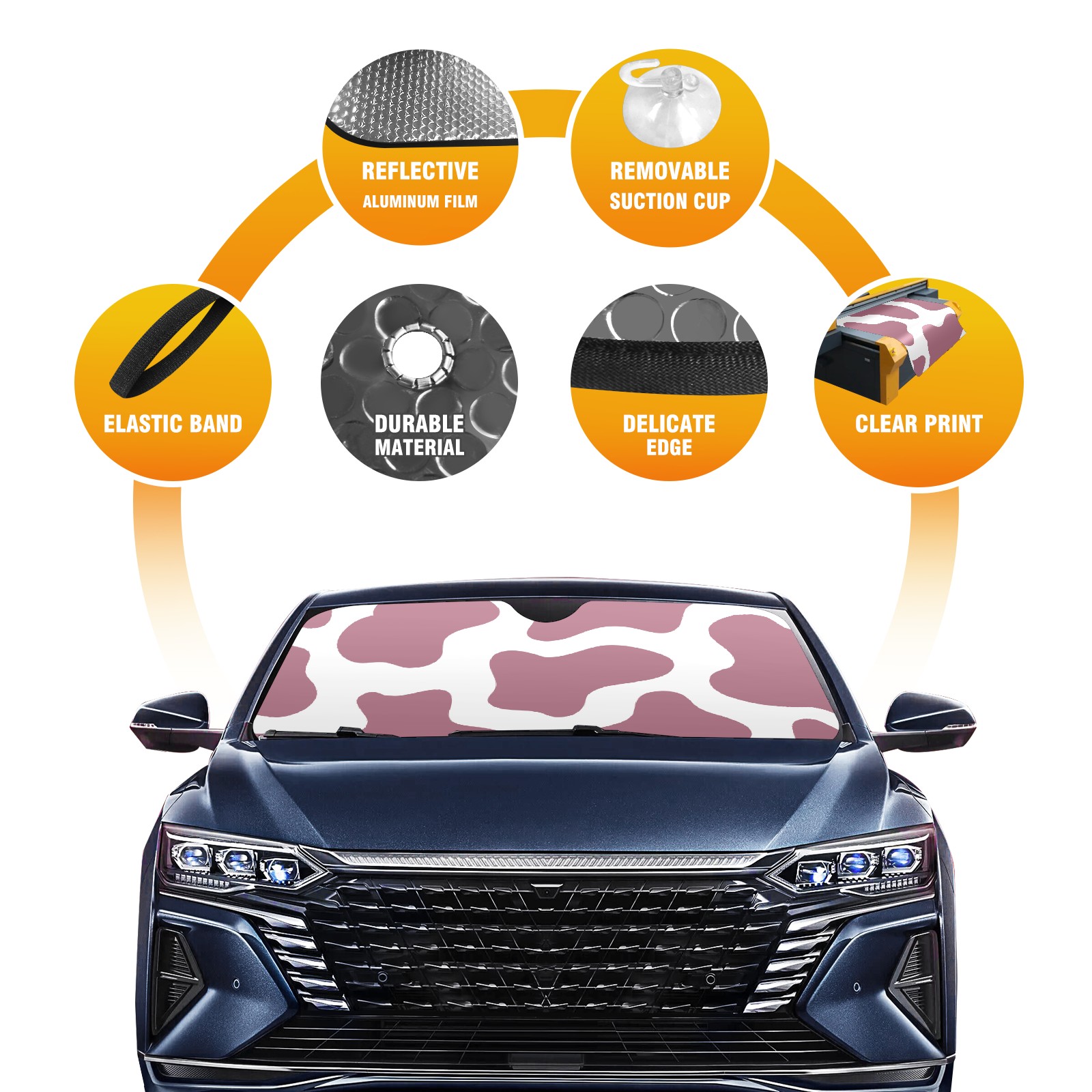Car Windshield Sun Shade for Front Window Pink Farm Cow Print Pattern Foldable Vehicle Windshield Car Sun Visor Covers Automotive Window Protector Car Privacy Sun Blocker