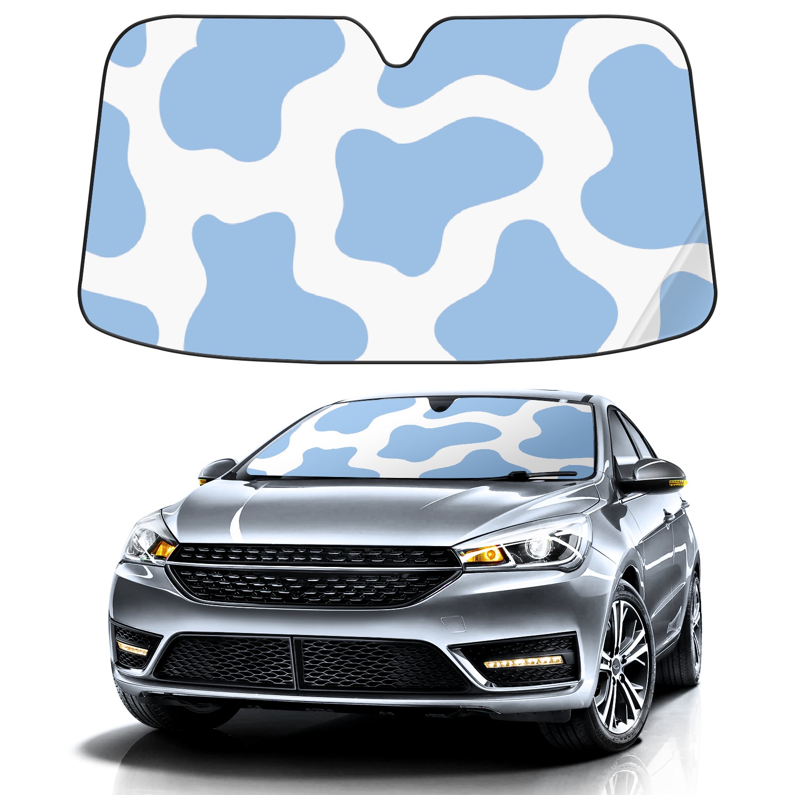 Car Windshield Sun Shade for Front Window Blue Farm Cow Print Pattern Foldable Vehicle Windshield Car Sun Visor Covers Automotive Window Protector Car Privacy Sun Blocker