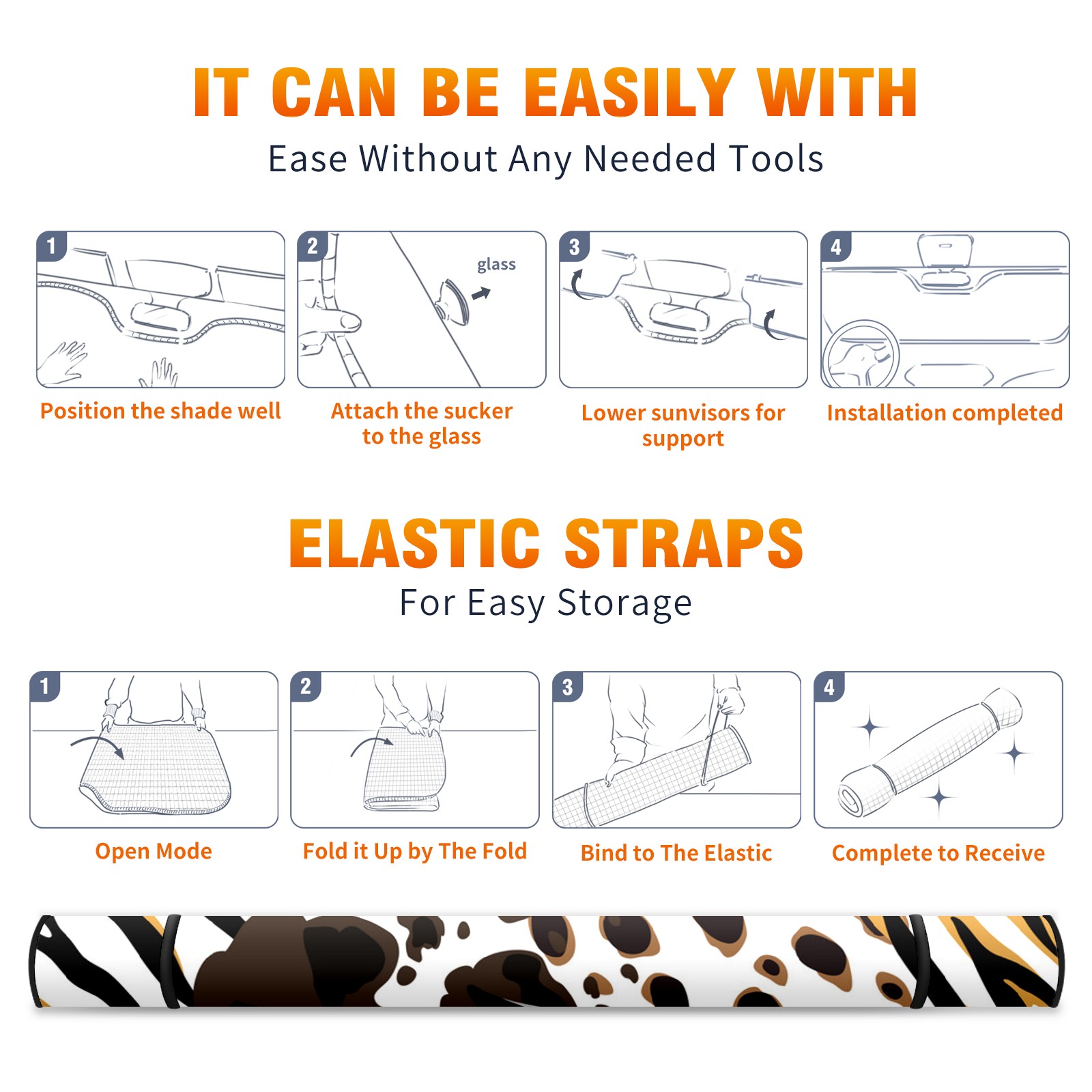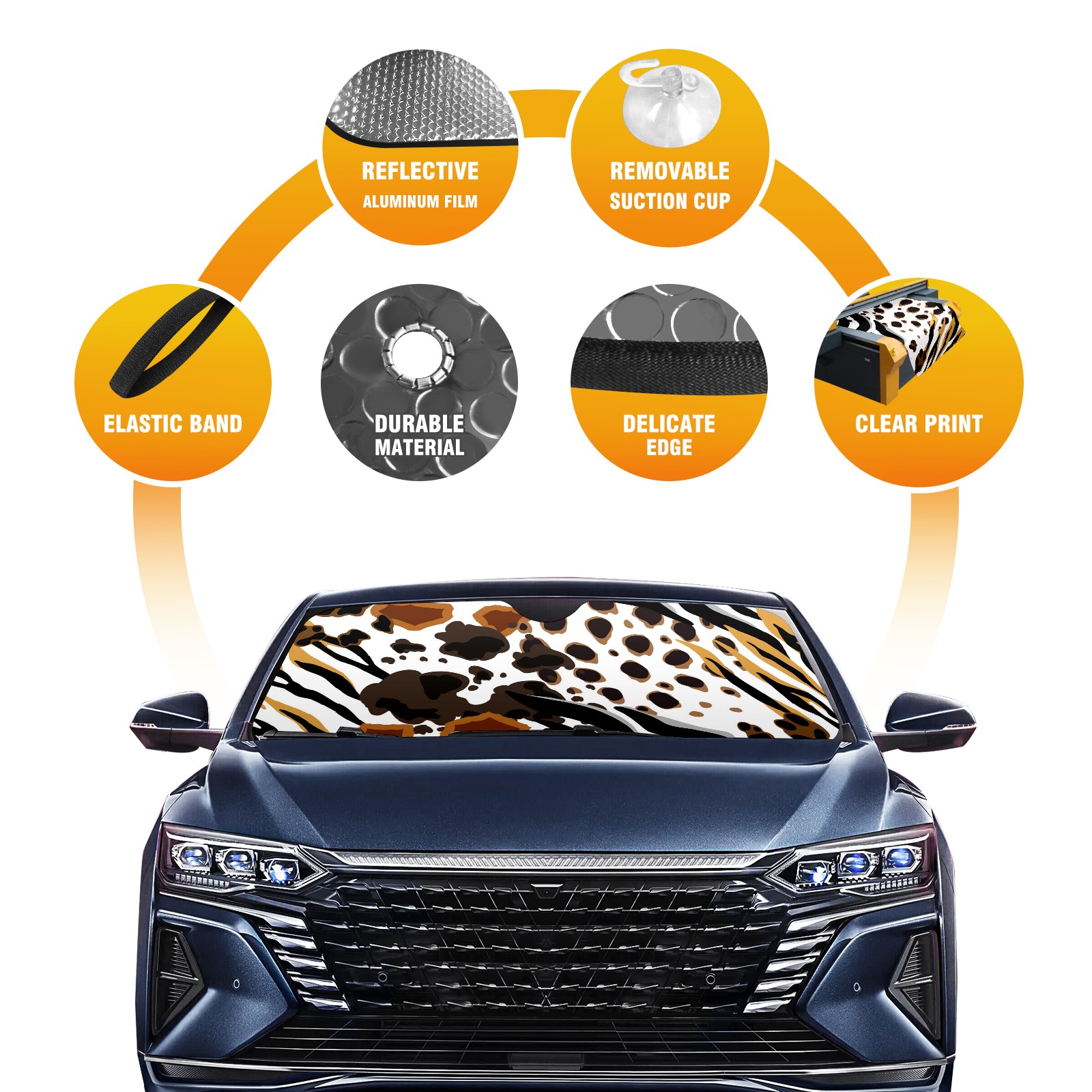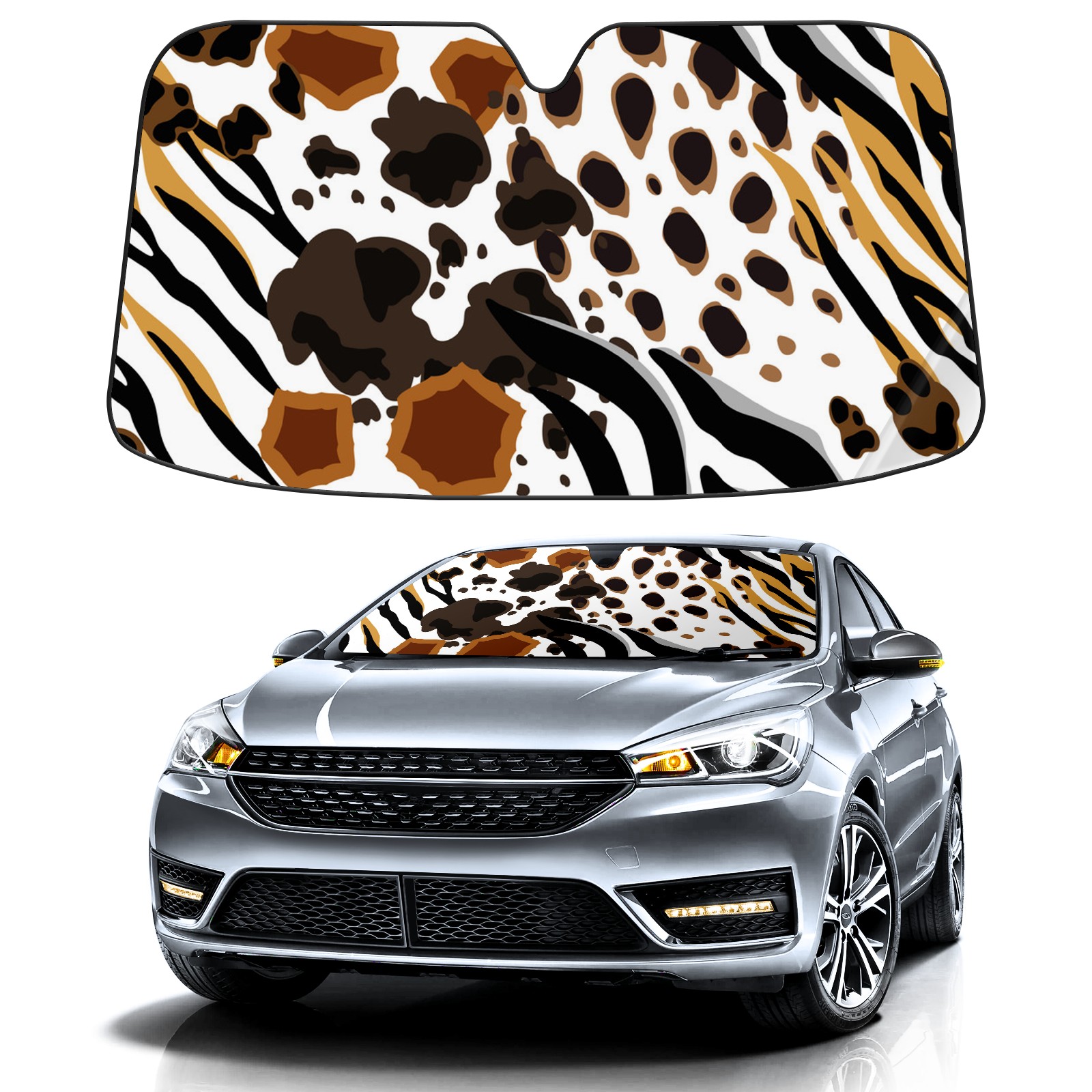 Car Windshield Sun Shade for Front Window Zebra Cow Tiger Print Animal Texture Foldable Vehicle Windshield Car Sun Visor Covers Automotive Window Protector Car Privacy Sun Blocker
