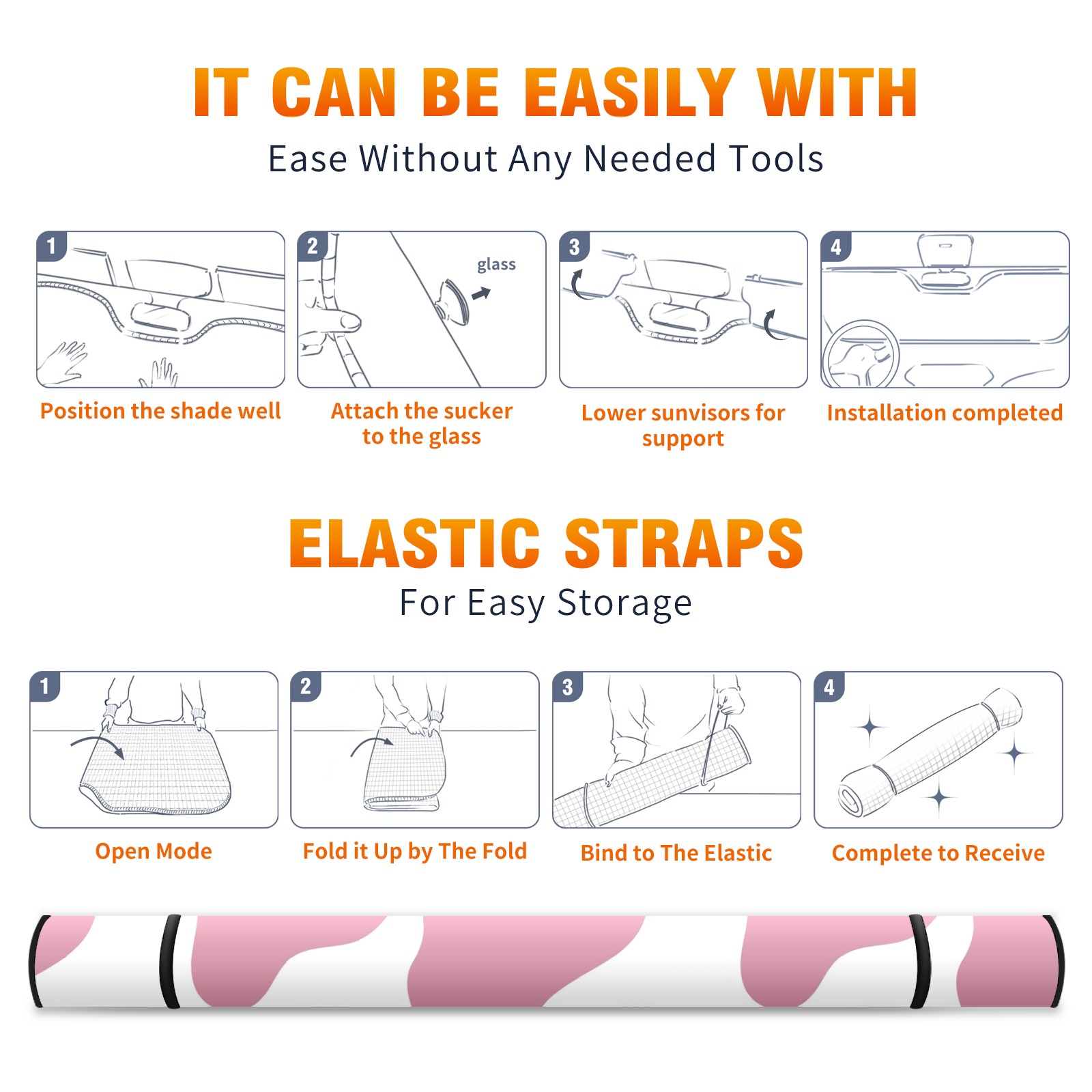 Car Windshield Sun Shade for Front Window Pink Cow Print Foldable Vehicle Windshield Car Sun Visor Covers Automotive Window Protector Car Privacy Sun Blocker