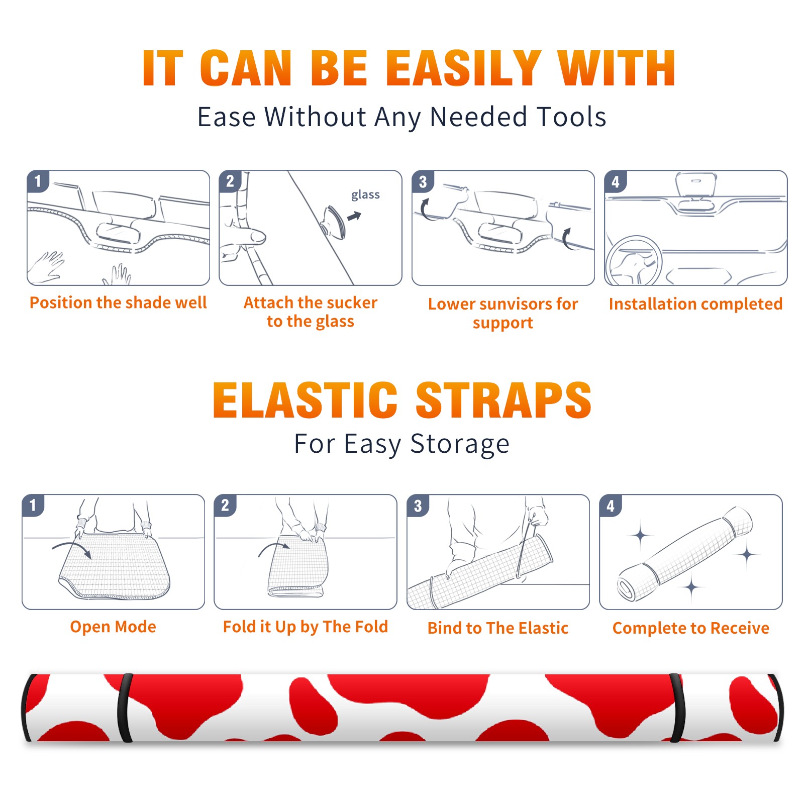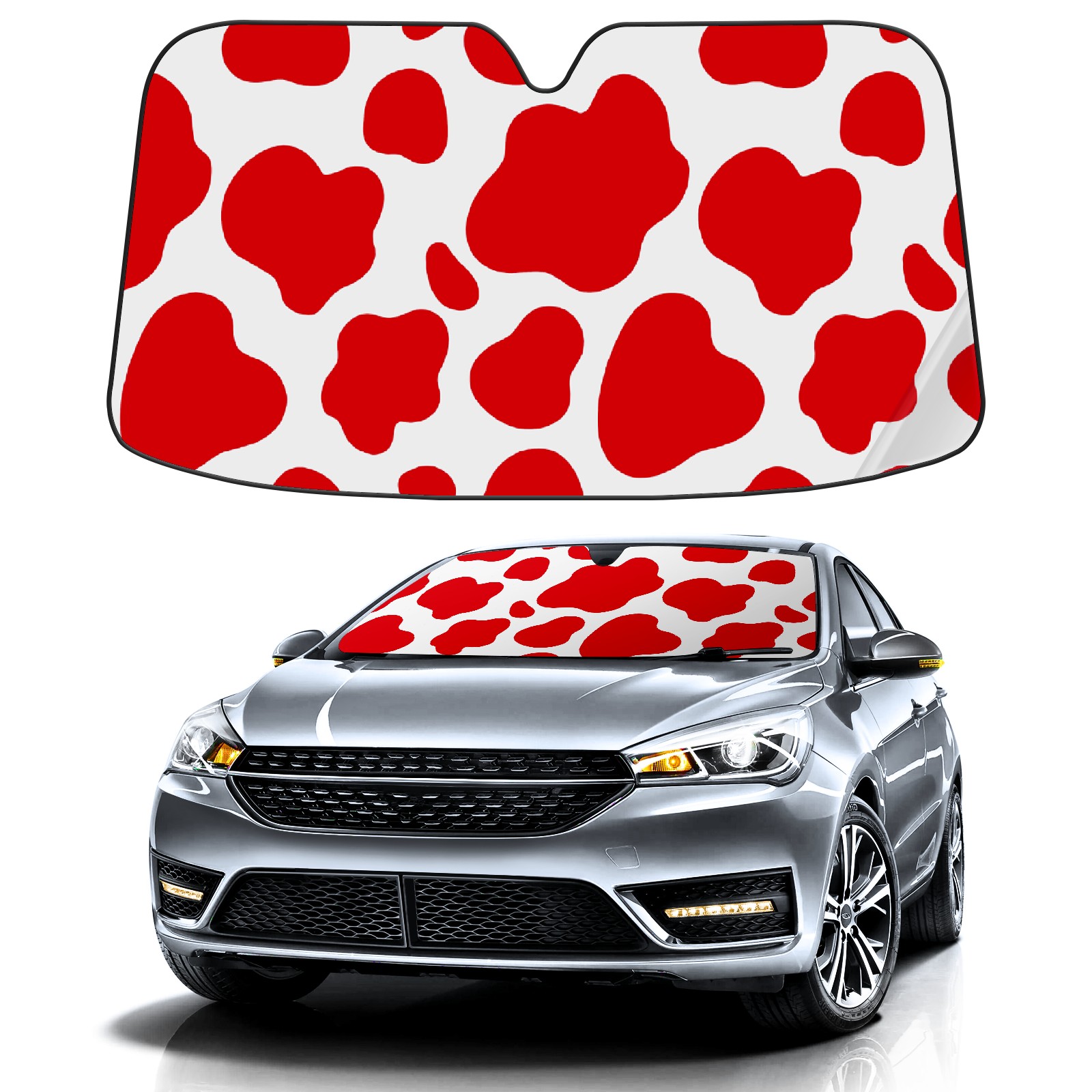 Car Windshield Sun Shade for Front Window Red Cow Print Camouflage Foldable Vehicle Windshield Car Sun Visor Covers Automotive Window Protector Car Privacy Sun Blocker