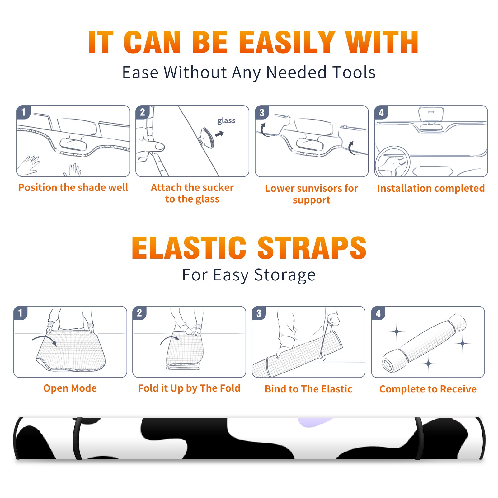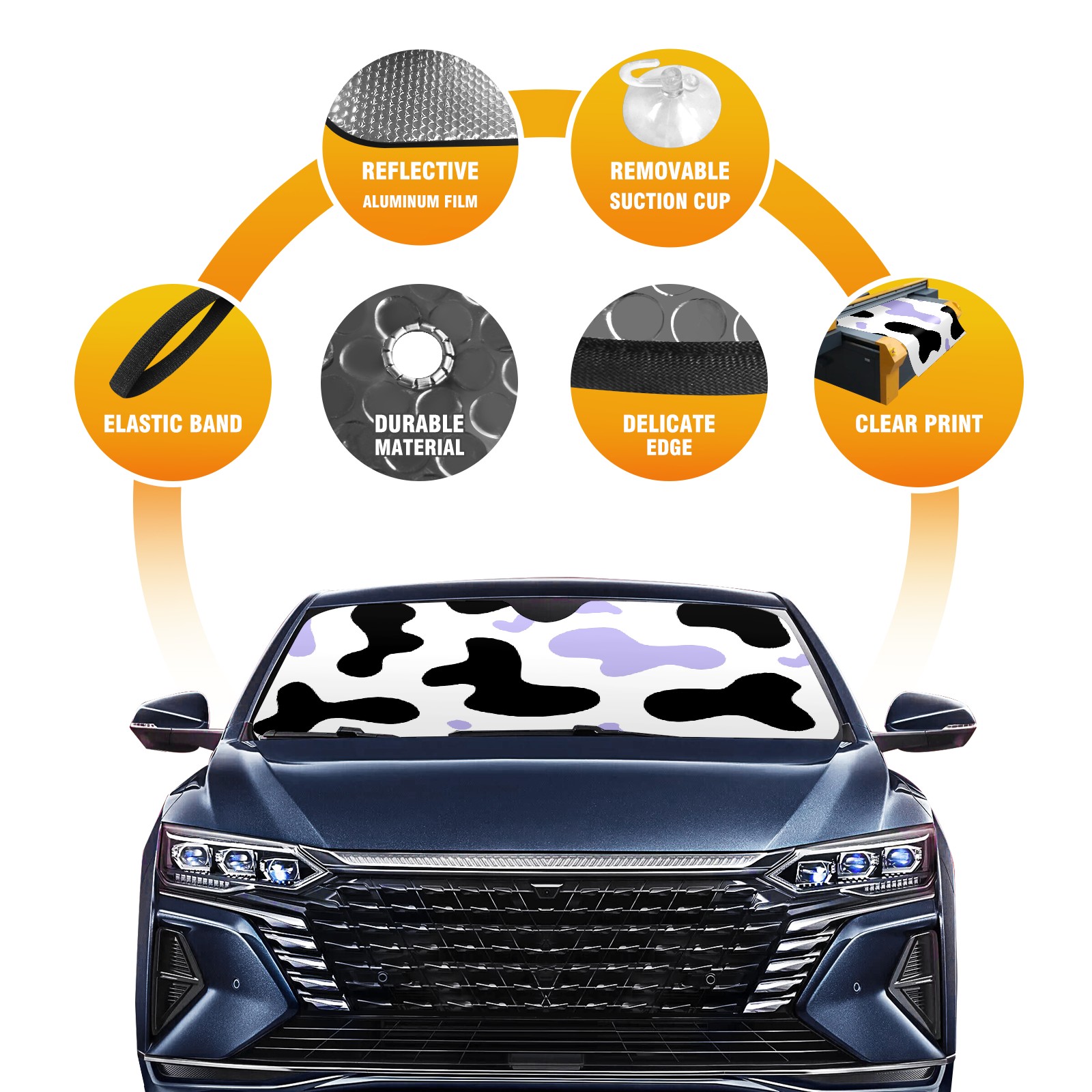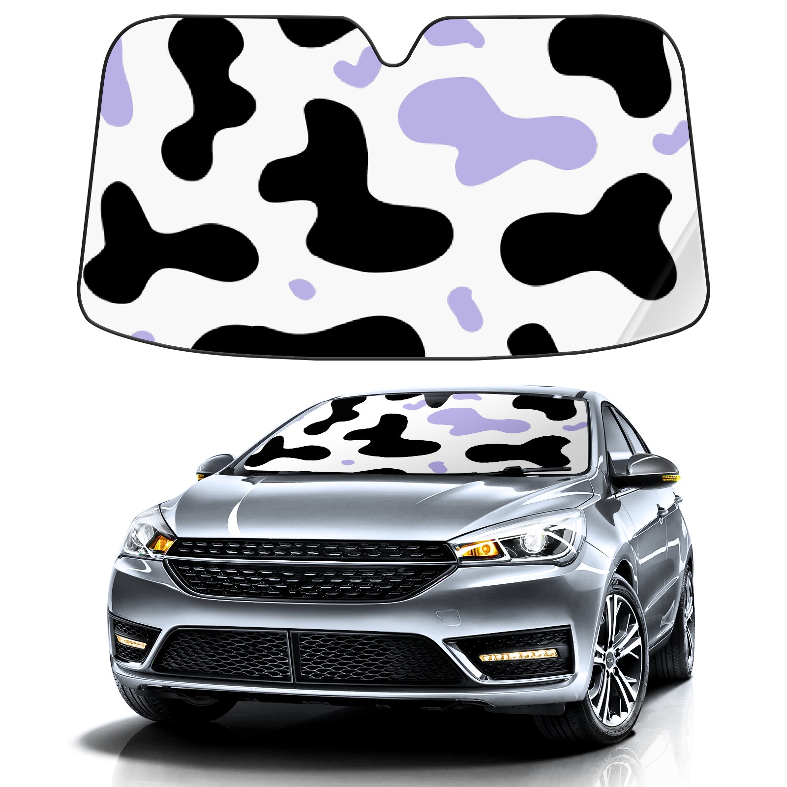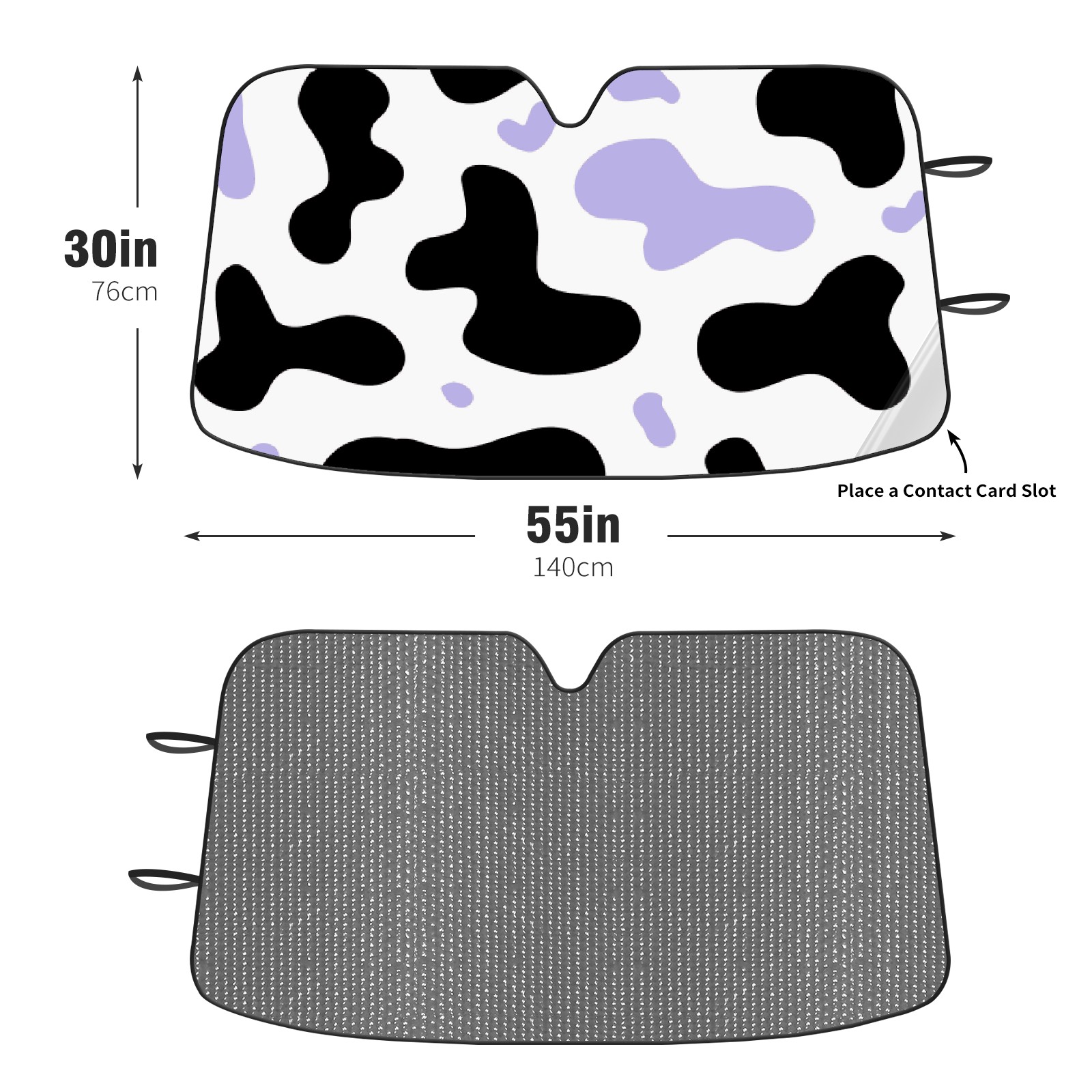 Car Windshield Sun Shade for Front Window Purple Black Cow Print Camo Foldable Vehicle Windshield Car Sun Visor Covers Automotive Window Protector Car Privacy Sun Blocker