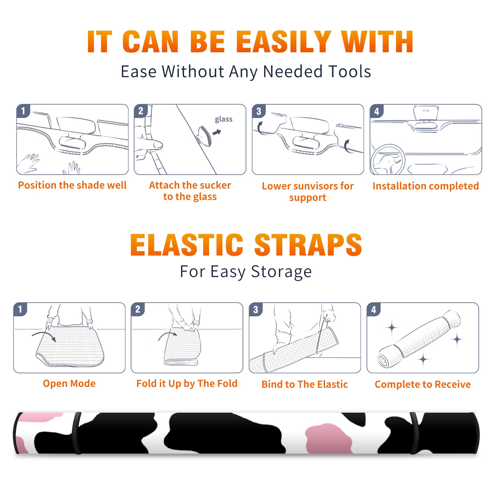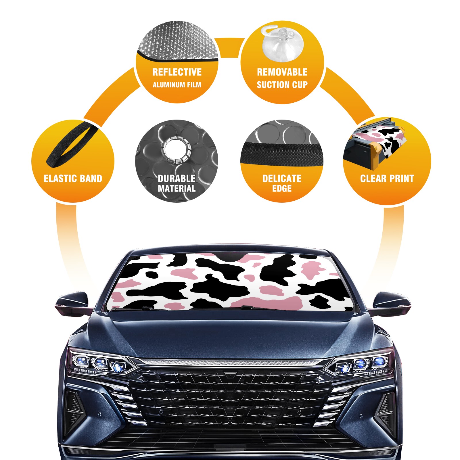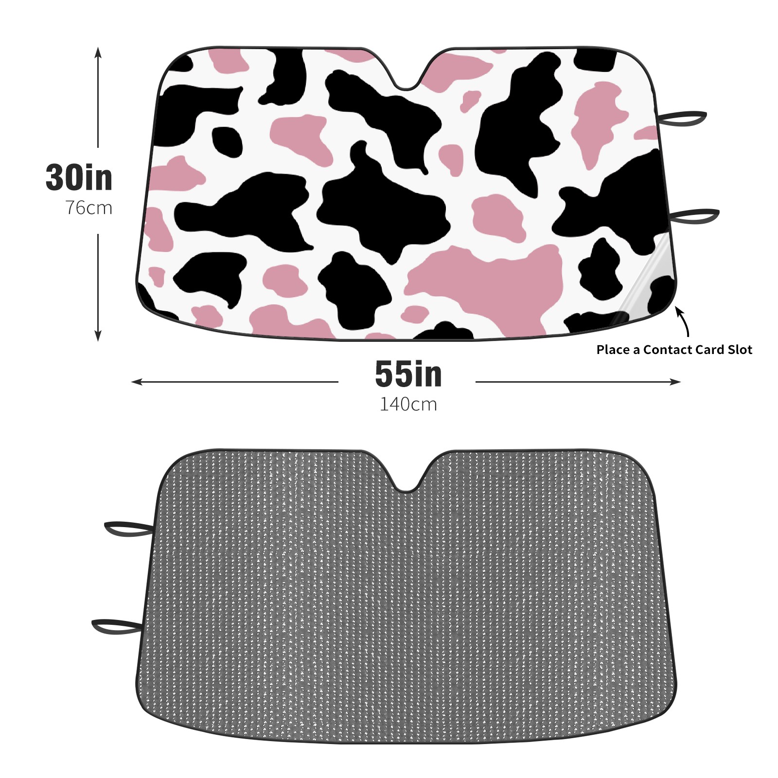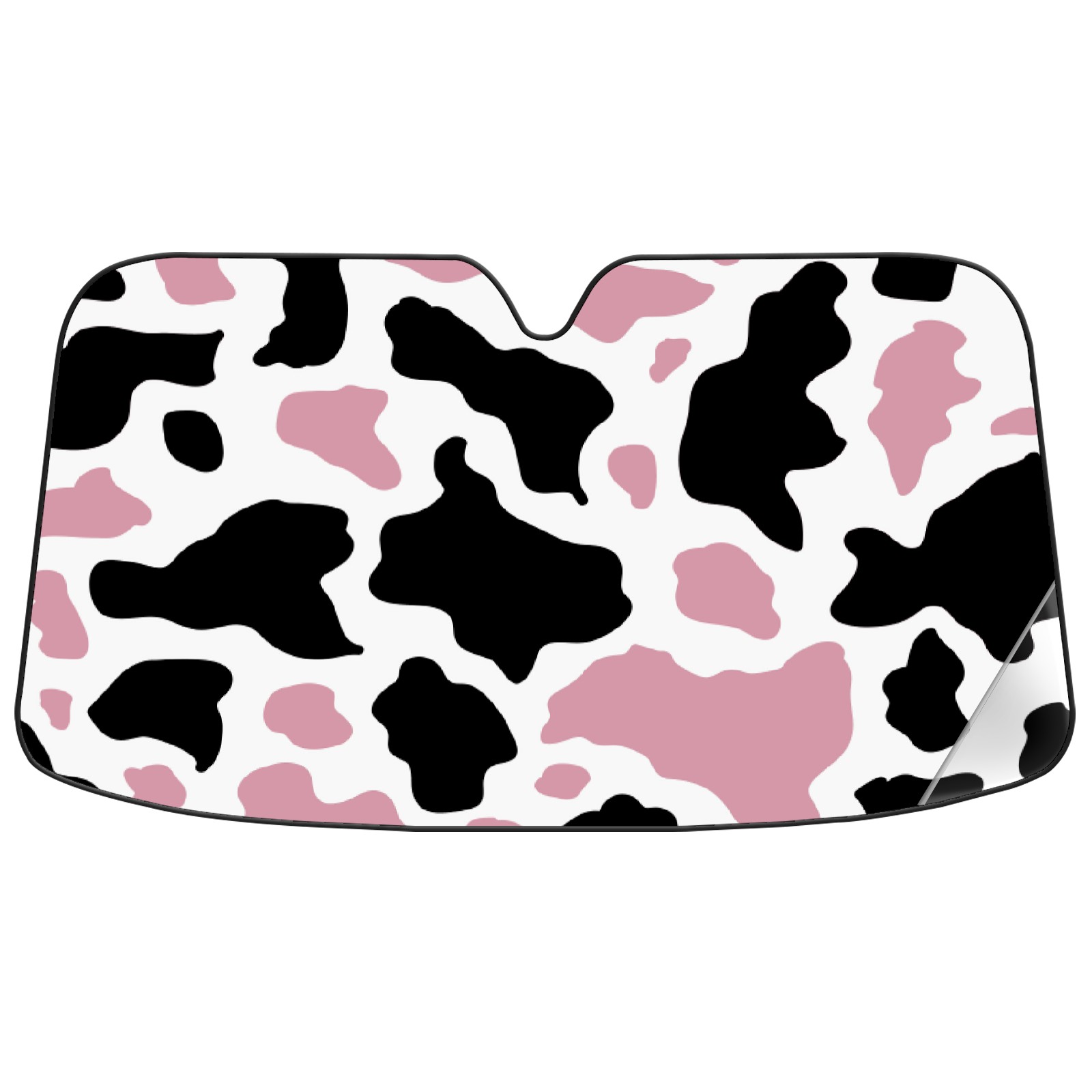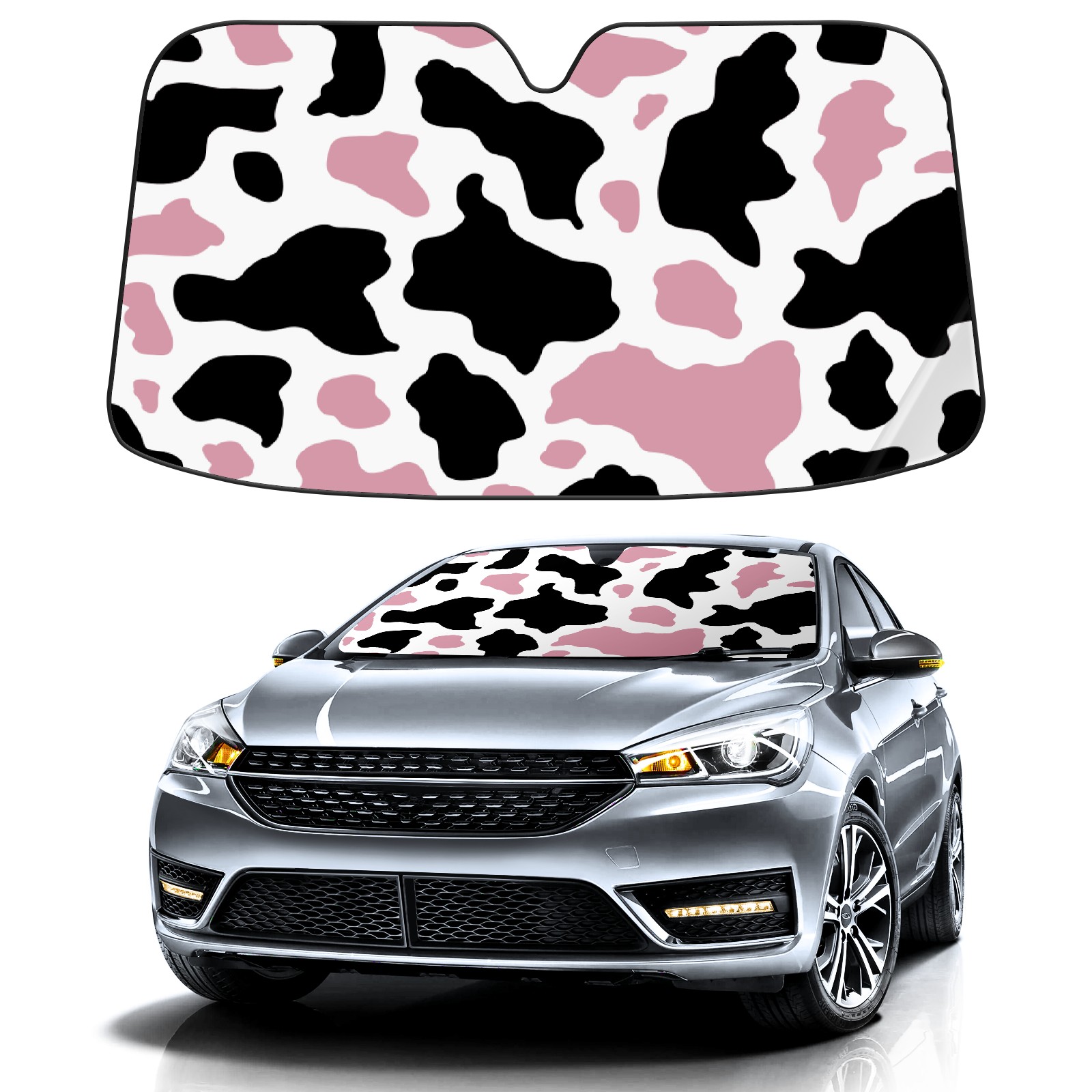 Car Windshield Sun Shade for Front Window Cute Cow Print Black Pink Foldable Vehicle Windshield Car Sun Visor Covers Automotive Window Protector Car Privacy Sun Blocker