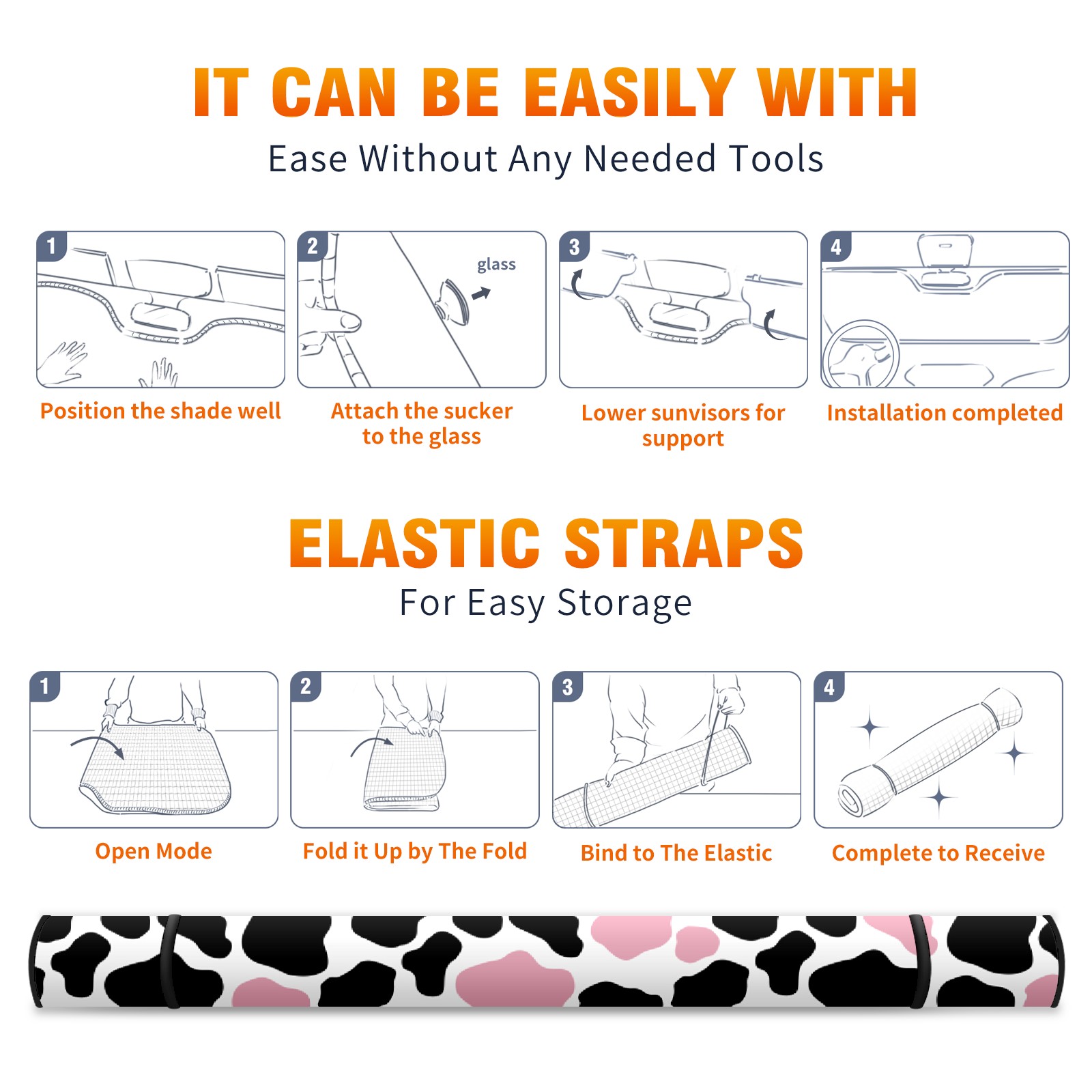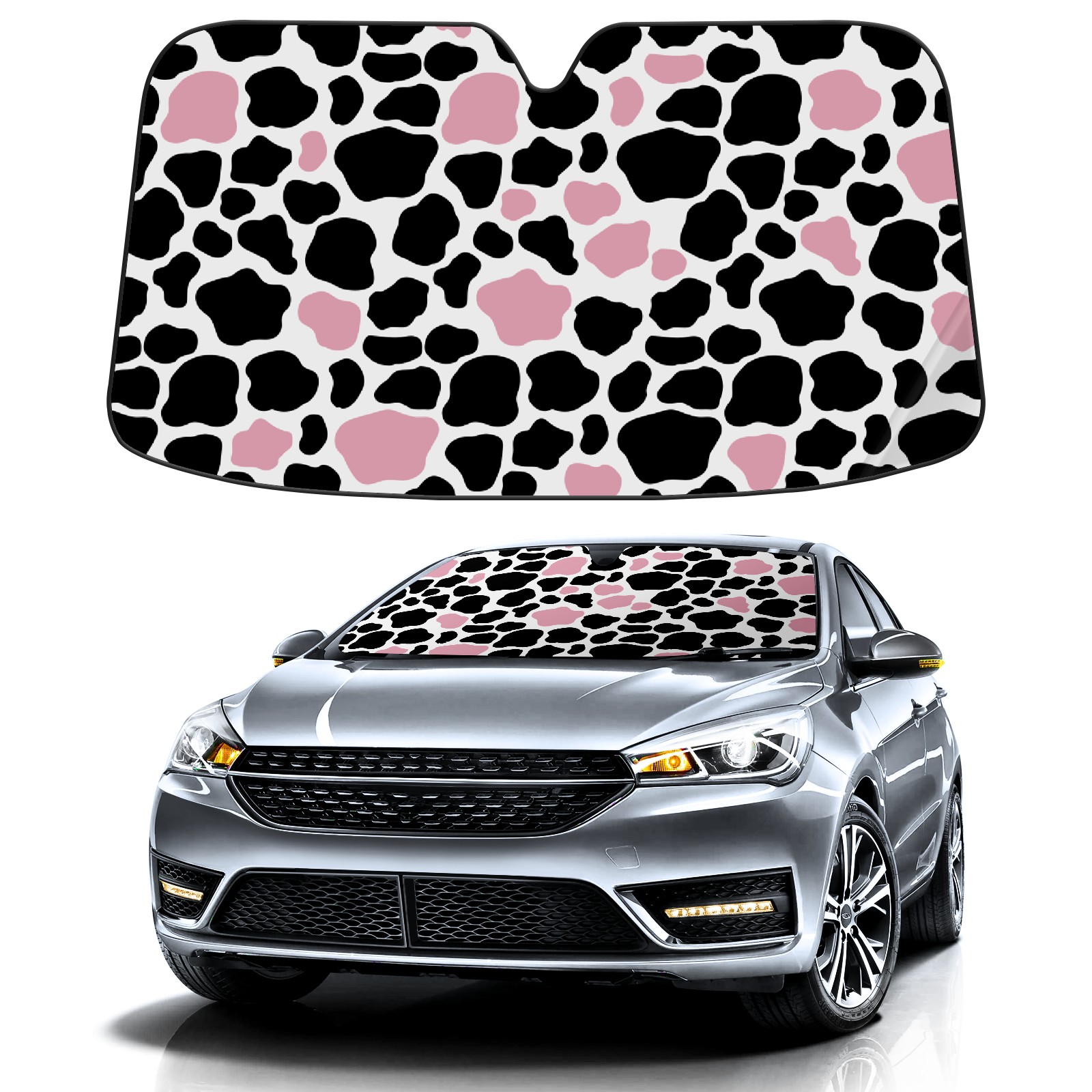 Car Windshield Sun Shade for Front Window Cow Print Pink Black Foldable Vehicle Windshield Car Sun Visor Covers Automotive Window Protector Car Privacy Sun Blocker