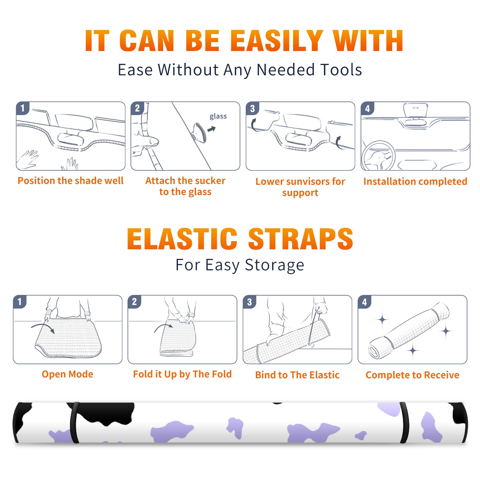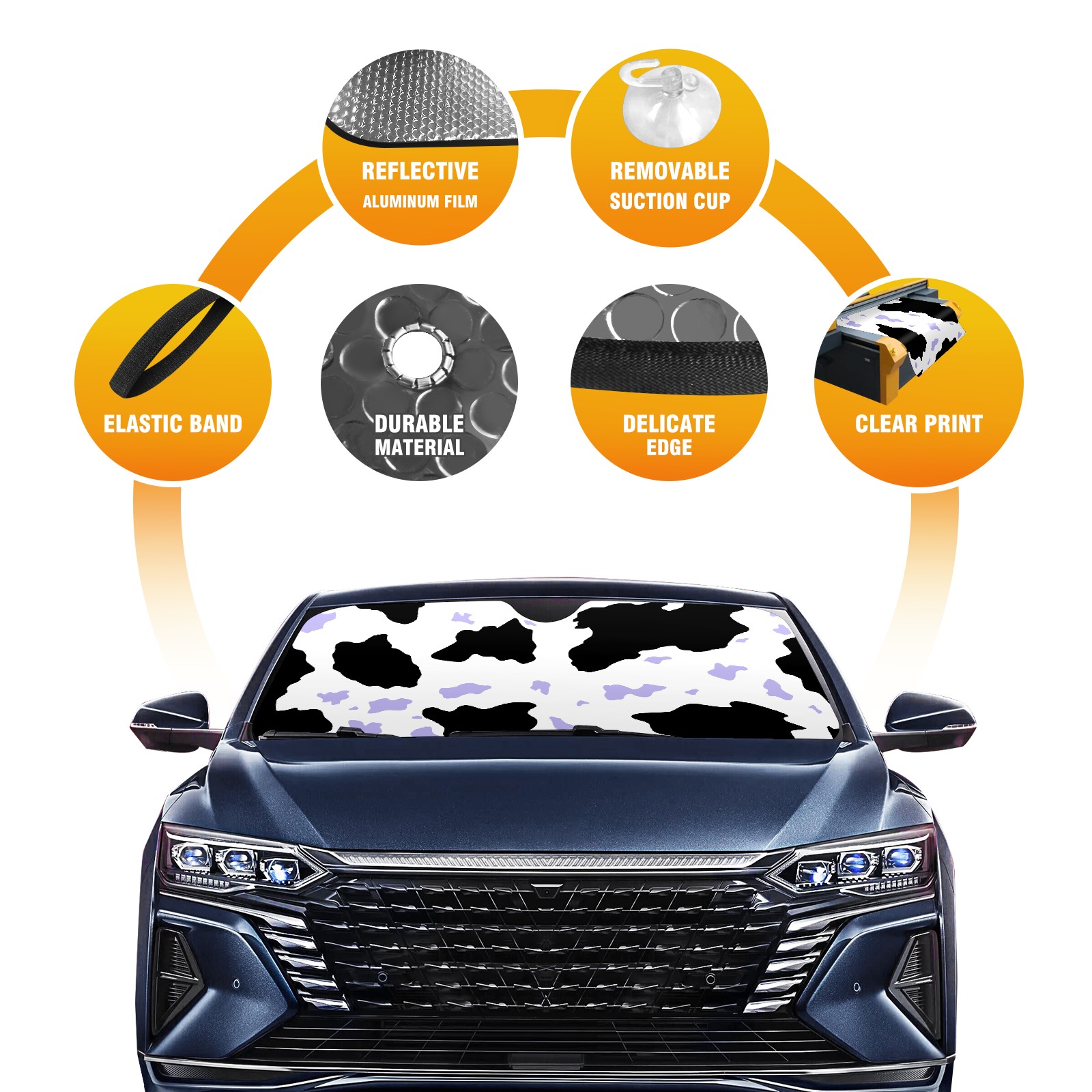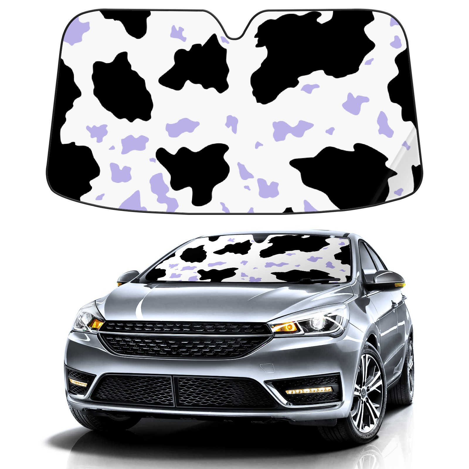 Car Windshield Sun Shade for Front Window Black Purple Cow Print Pattern Foldable Vehicle Windshield Car Sun Visor Covers Automotive Window Protector Car Privacy Sun Blocker