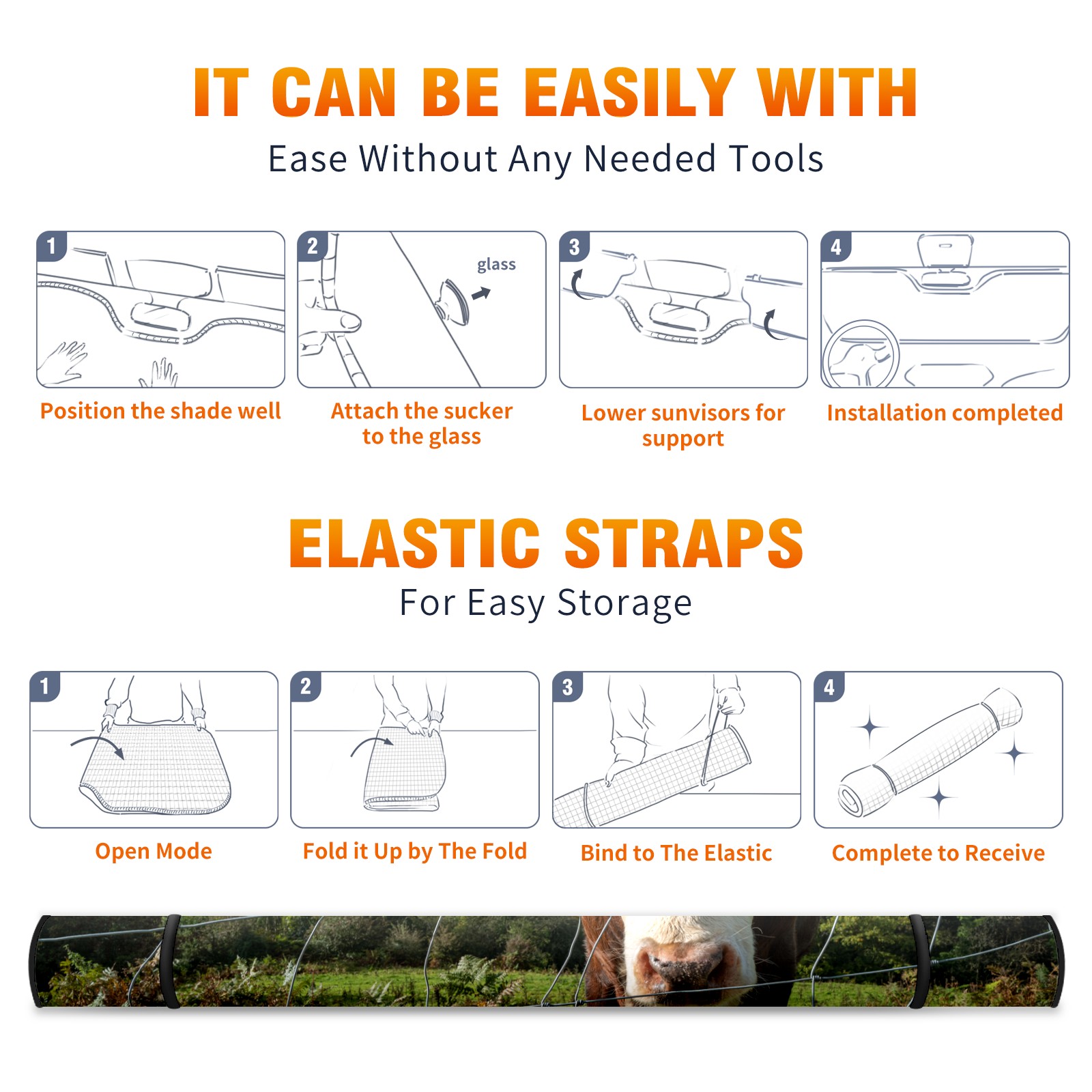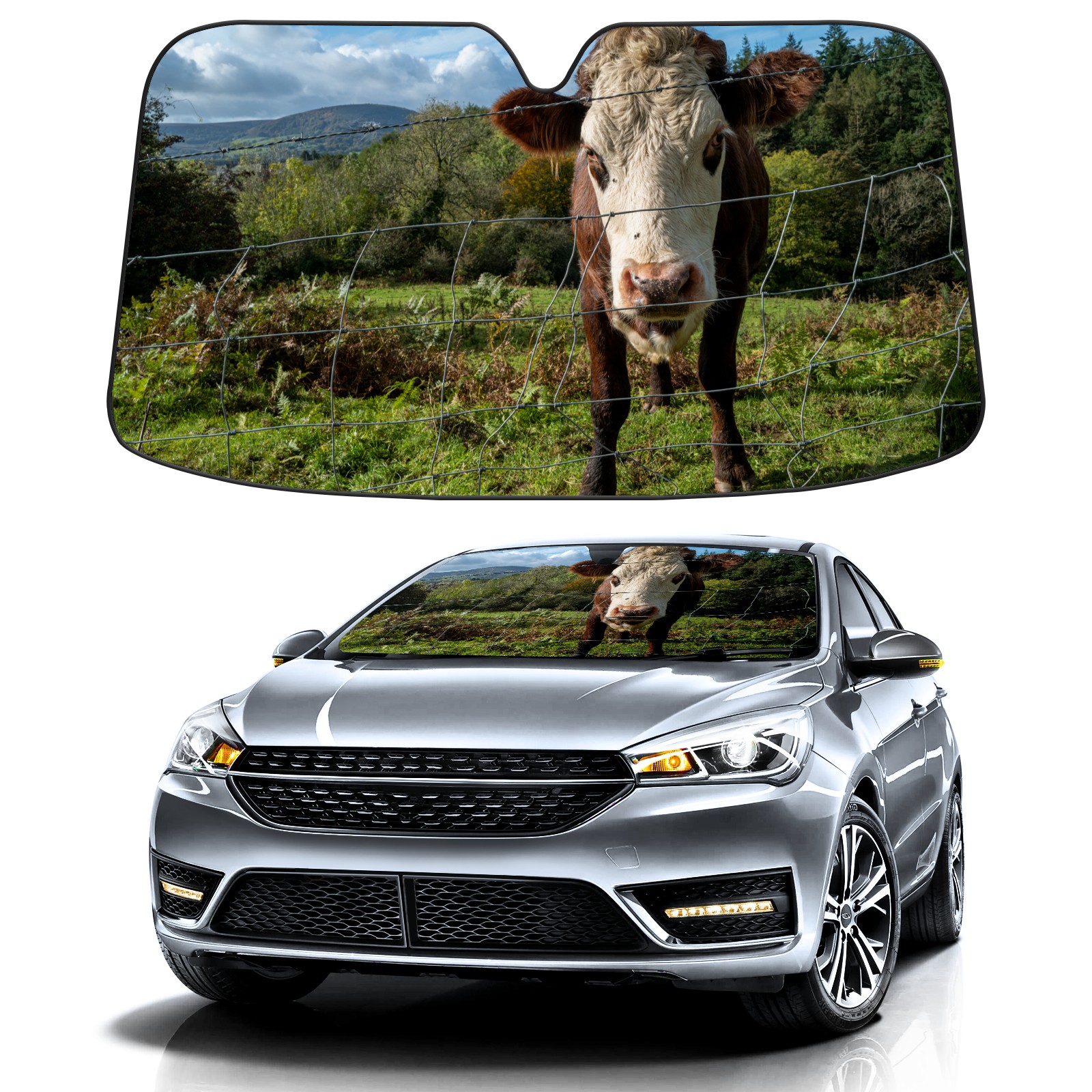 Car Windshield Sun Shade for Front Window Farm Cow Print Foldable Vehicle Windshield Car Sun Visor Covers Automotive Window Protector Car Privacy Sun Blocker