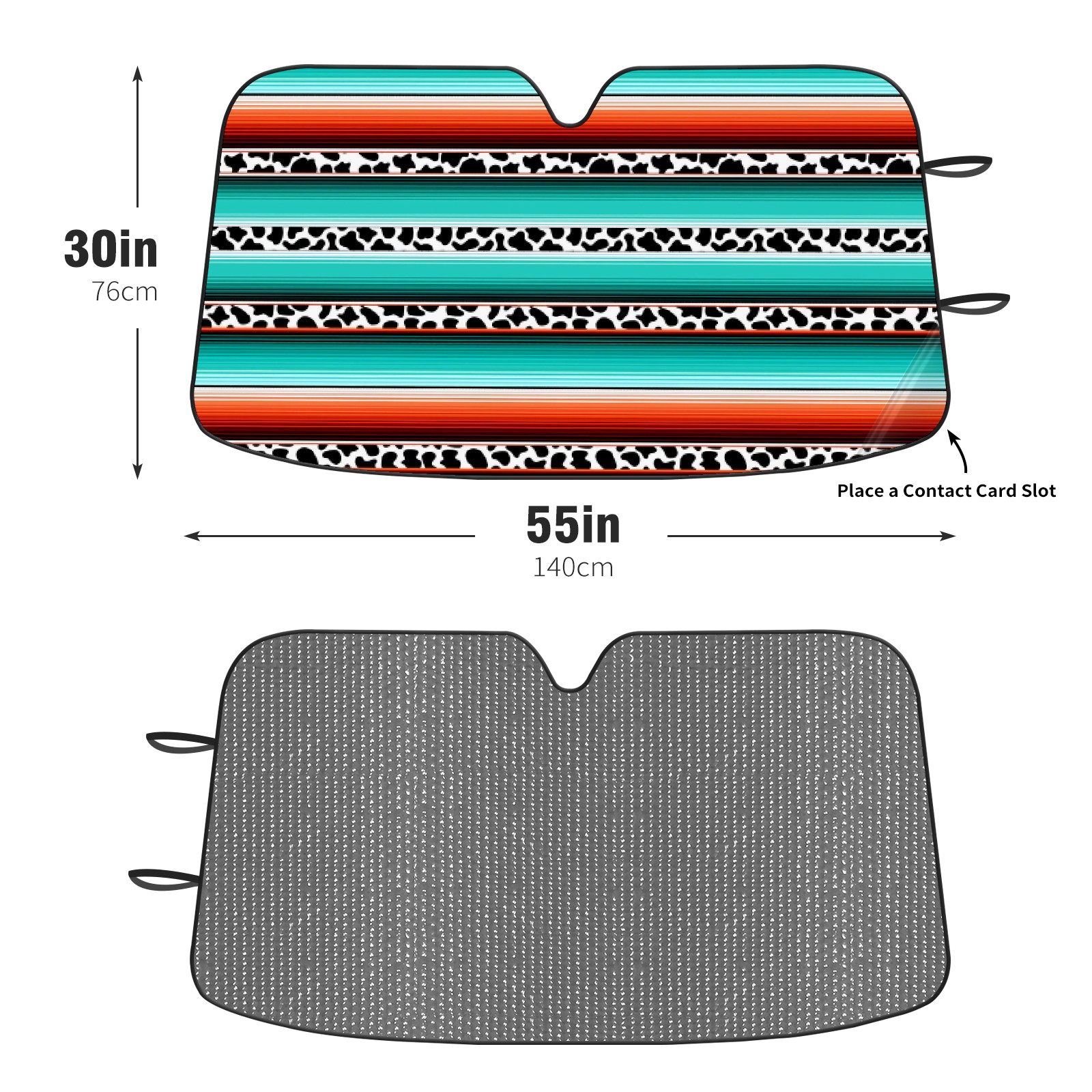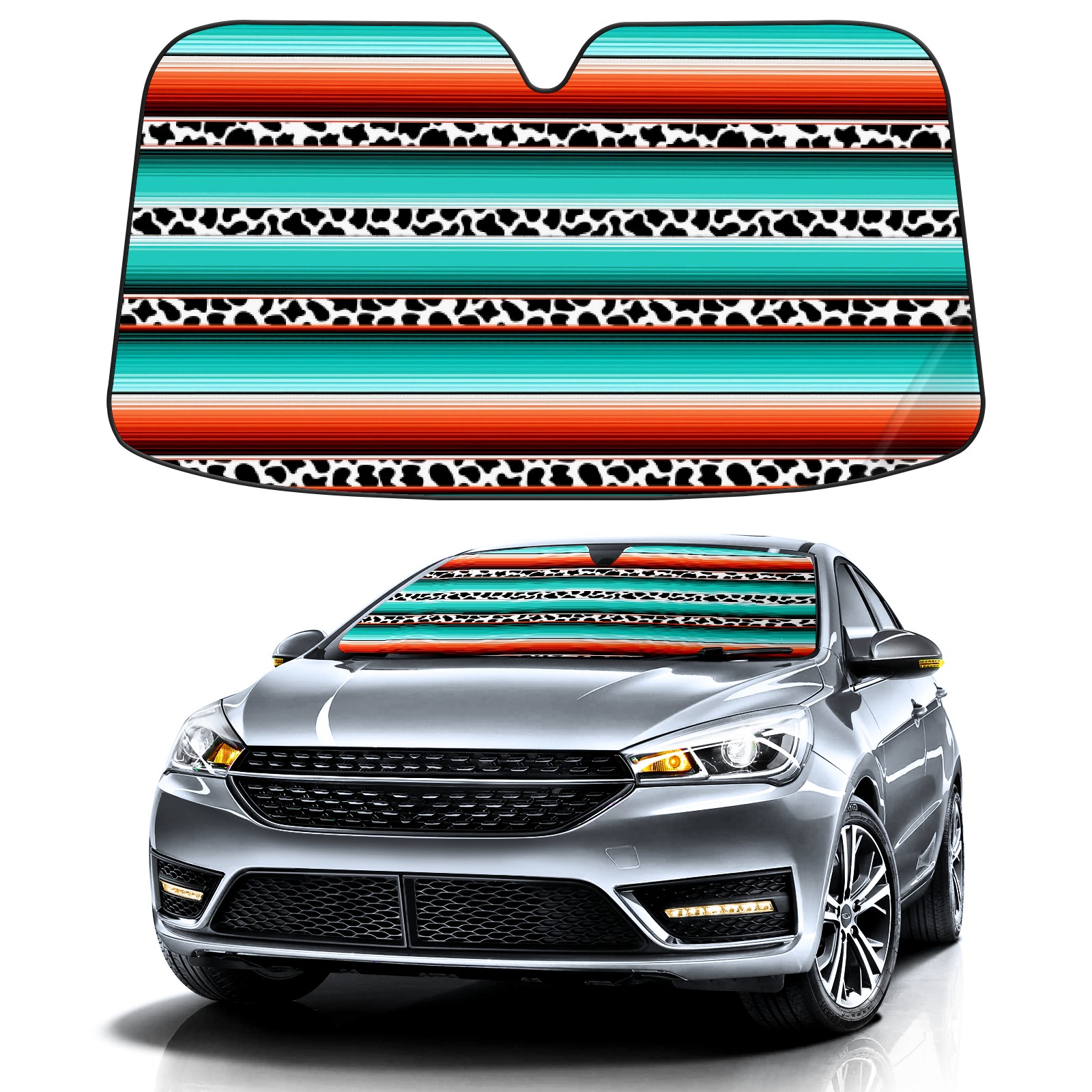 Car Windshield Sun Shade for Front Window Teal Turquoise Stripe Cow Print Foldable Vehicle Windshield Car Sun Visor Covers Automotive Window Protector Car Privacy Sun Blocker