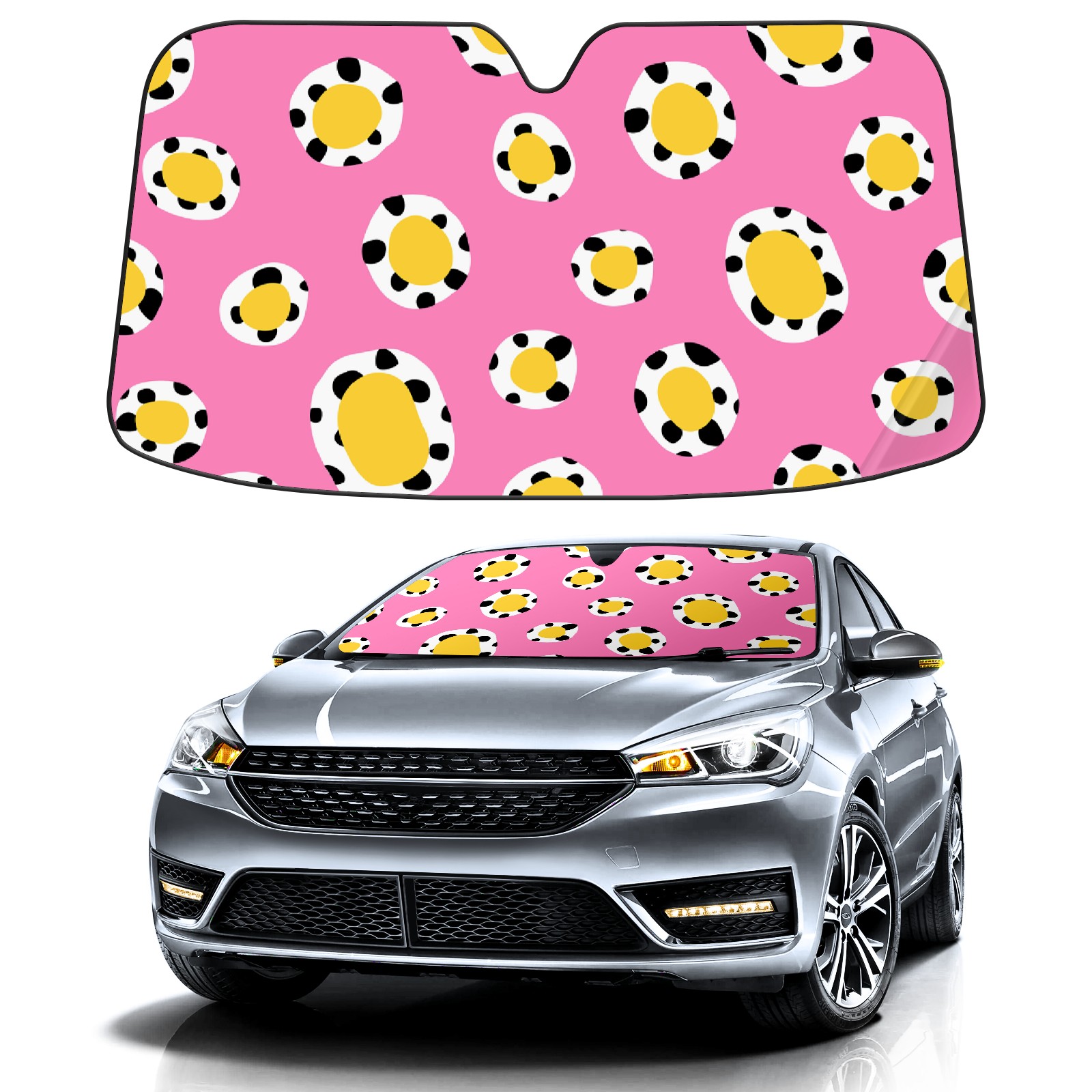Car Windshield Sun Shade for Front Window Cow Print Donuts Foldable Vehicle Windshield Car Sun Visor Covers Automotive Window Protector Car Privacy Sun Blocker