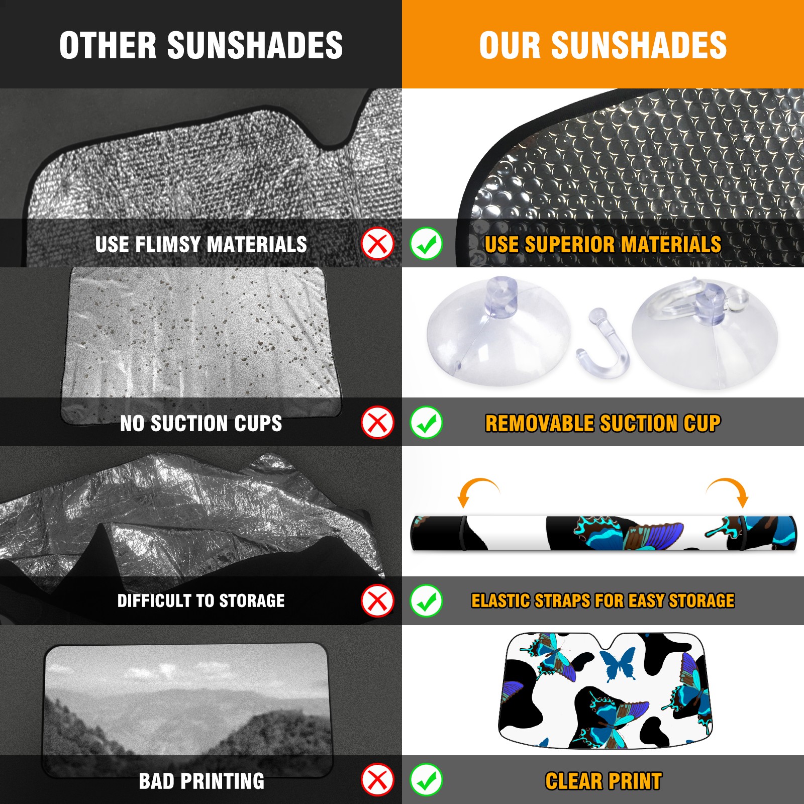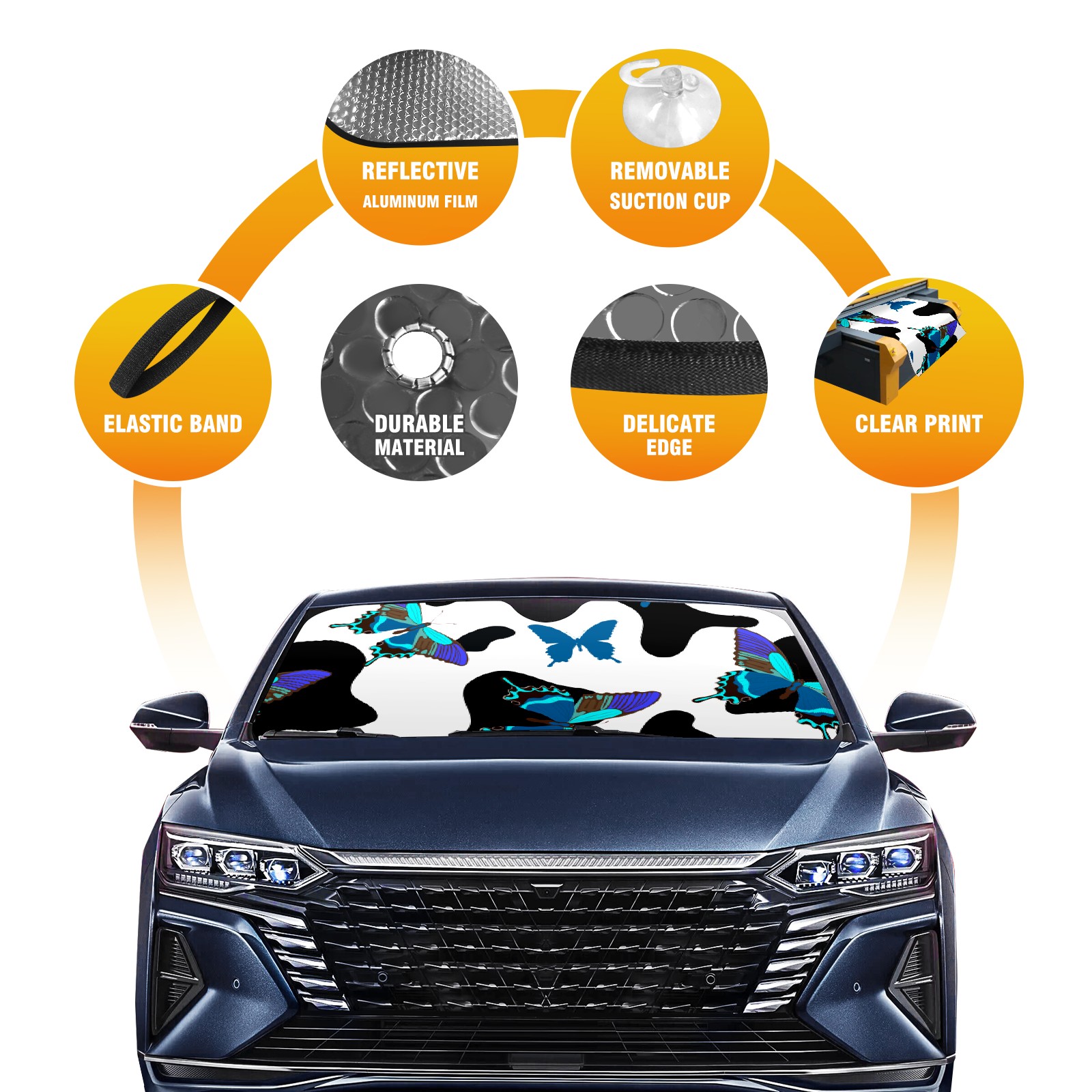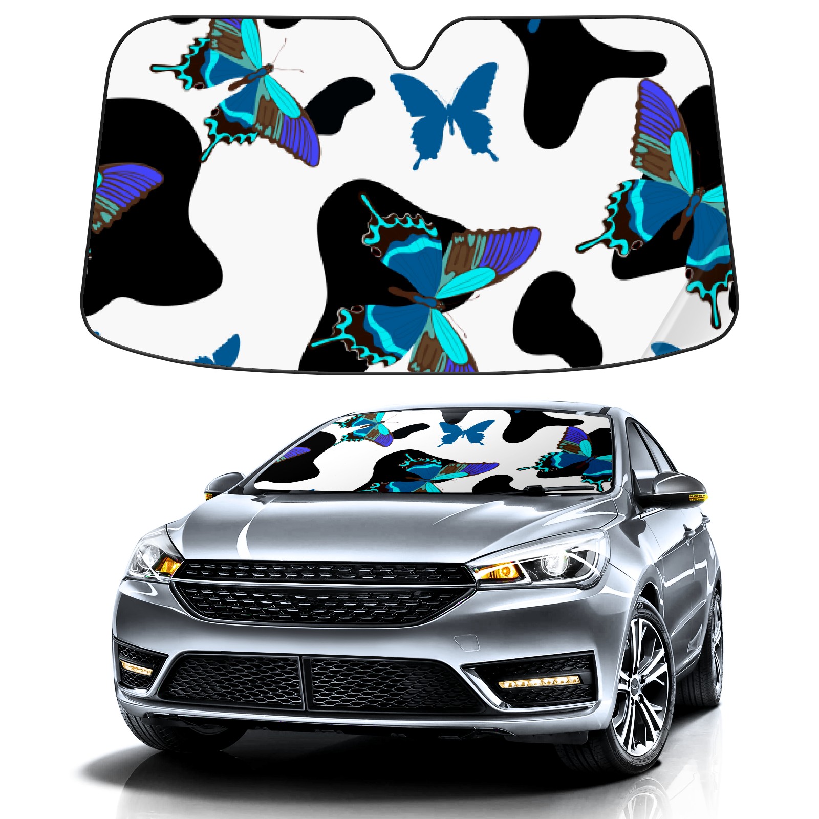 Car Windshield Sun Shade for Front Window Cow Butterfly Print Foldable Vehicle Windshield Car Sun Visor Covers Automotive Window Protector Car Privacy Sun Blocker