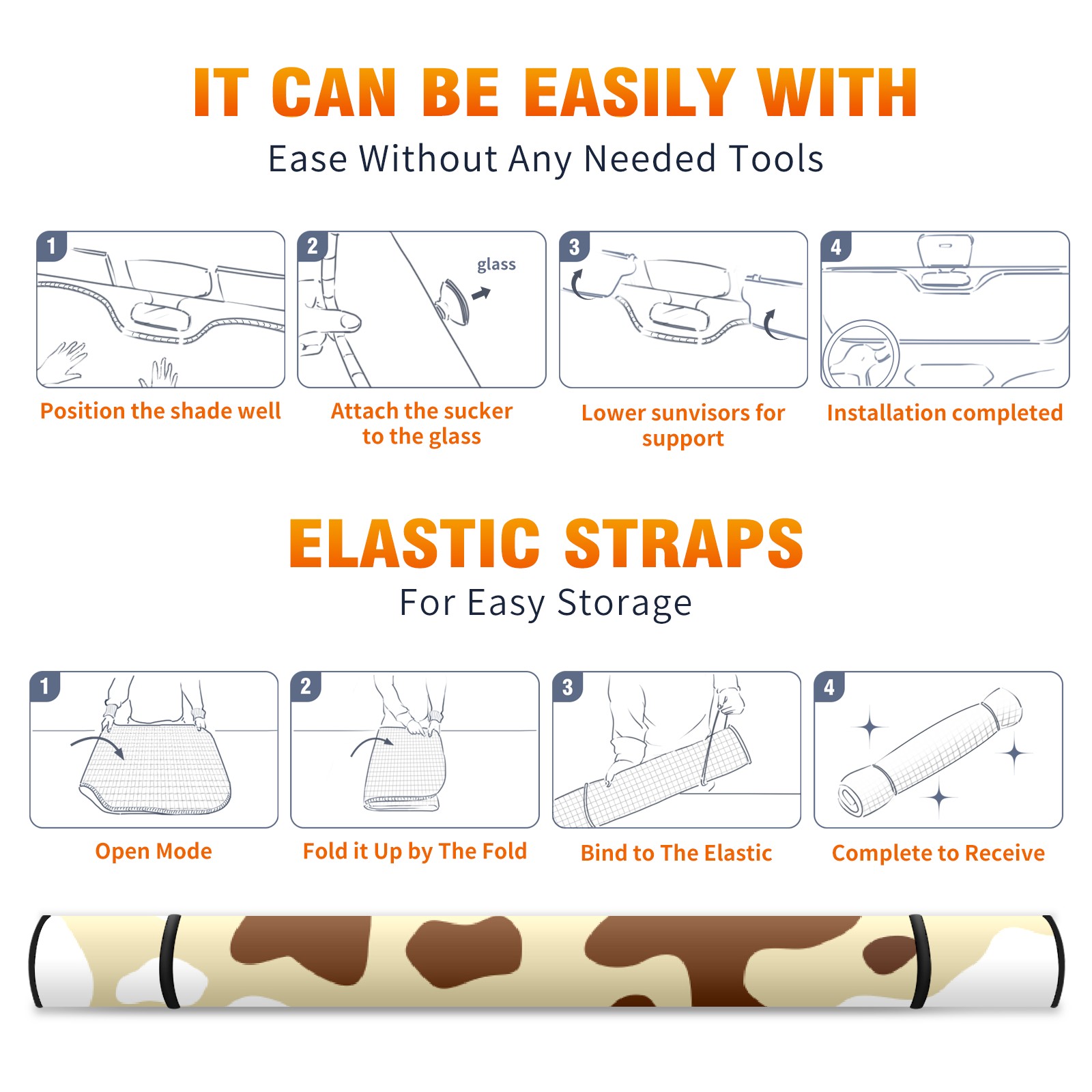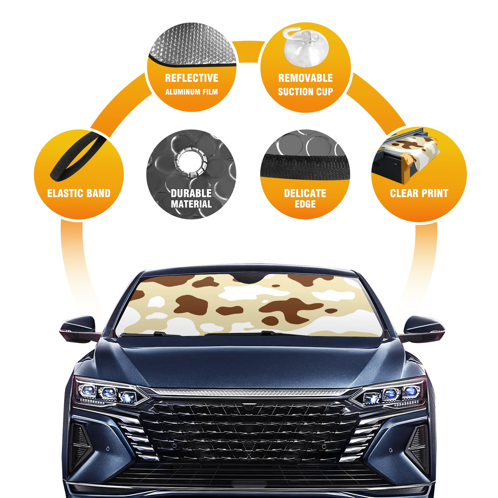Car Windshield Sun Shade for Front Window Brown Cow Print Foldable Vehicle Windshield Car Sun Visor Covers Automotive Window Protector Car Privacy Sun Blocker