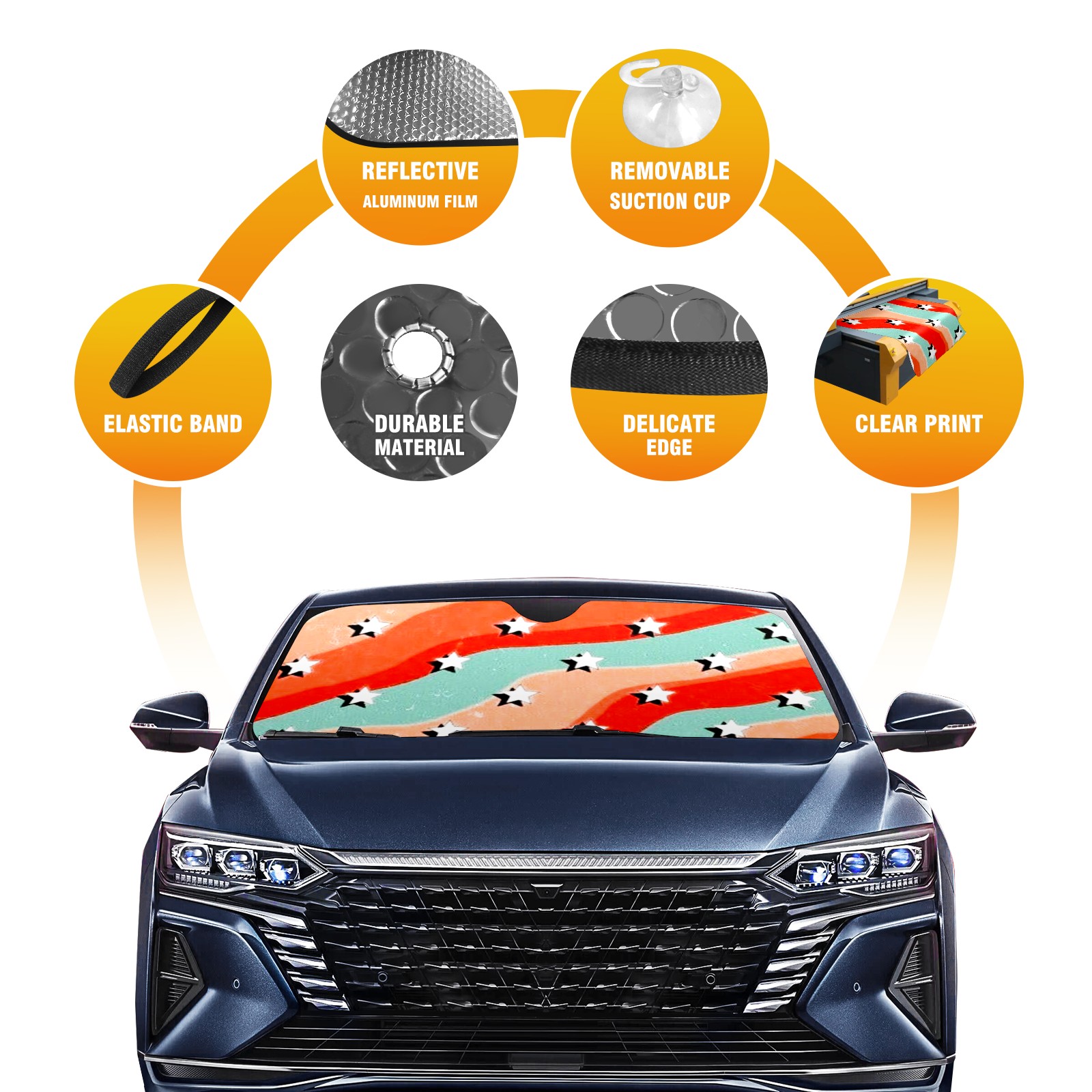 Diameter /Size 63"L x 33.5"W</b><br> Made from excellent materials which makes it sturdy and protects the car from the sun. Easy to use and pack. Makes the interior of the car cooler.You can easily stash the sunshade in the storage bag or store long term.It open and closes easy. Also the leather storage bag is durable and easy to put the umbrella back into.This windshield sunshade provides complete coverage and keeps your car interior cool under direct sun. It is easy to open and position under the windshield and around the rear-view mirror. Makes Your Car Easy To Identify, Perfect For Finding Your Car In Crowded Parking Lots And Garages.Great Choice: It Is A Great Gift For Dad, Boyfriend, Brother, Brother And Uncle, Friends, Classmates, Family And So On.<br> Notice:</b><br> Due To Difference Computer Monitors, The Color Maybe Slightly Different From Picture. As Different Measurement Methods, Measurement Data Will Float Within 2%.I Hope You Understand.<br> If You Have Any Question About The Item Please Do Not Hesitate To Contact Us Immediately And We Will Give You A Satisfactory Reply Within 24 Hours.