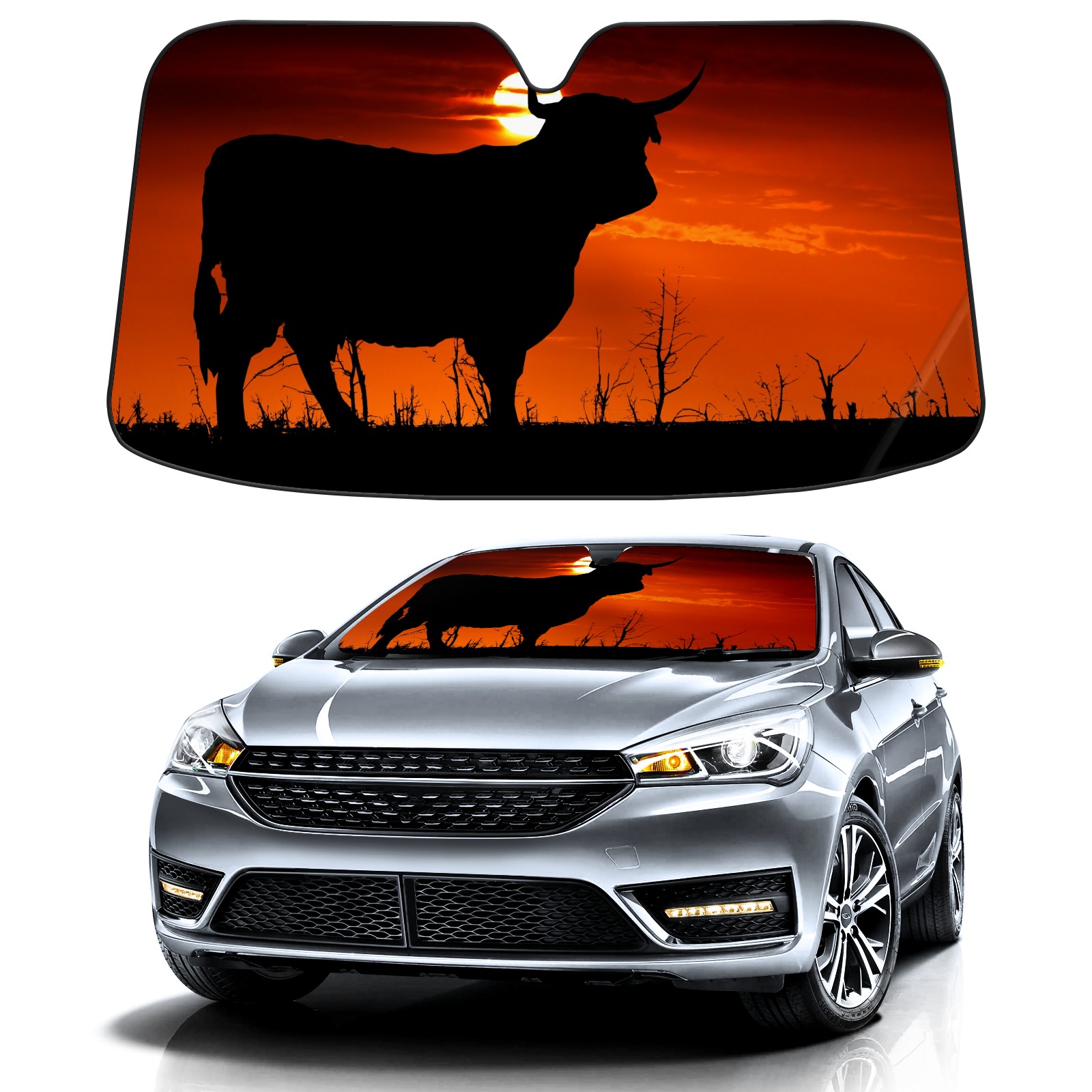 Car Windshield Sun Shade for Front Window Cow Sunset Pattern Foldable Vehicle Windshield Car Sun Visor Covers Automotive Window Protector Car Privacy Sun Blocker