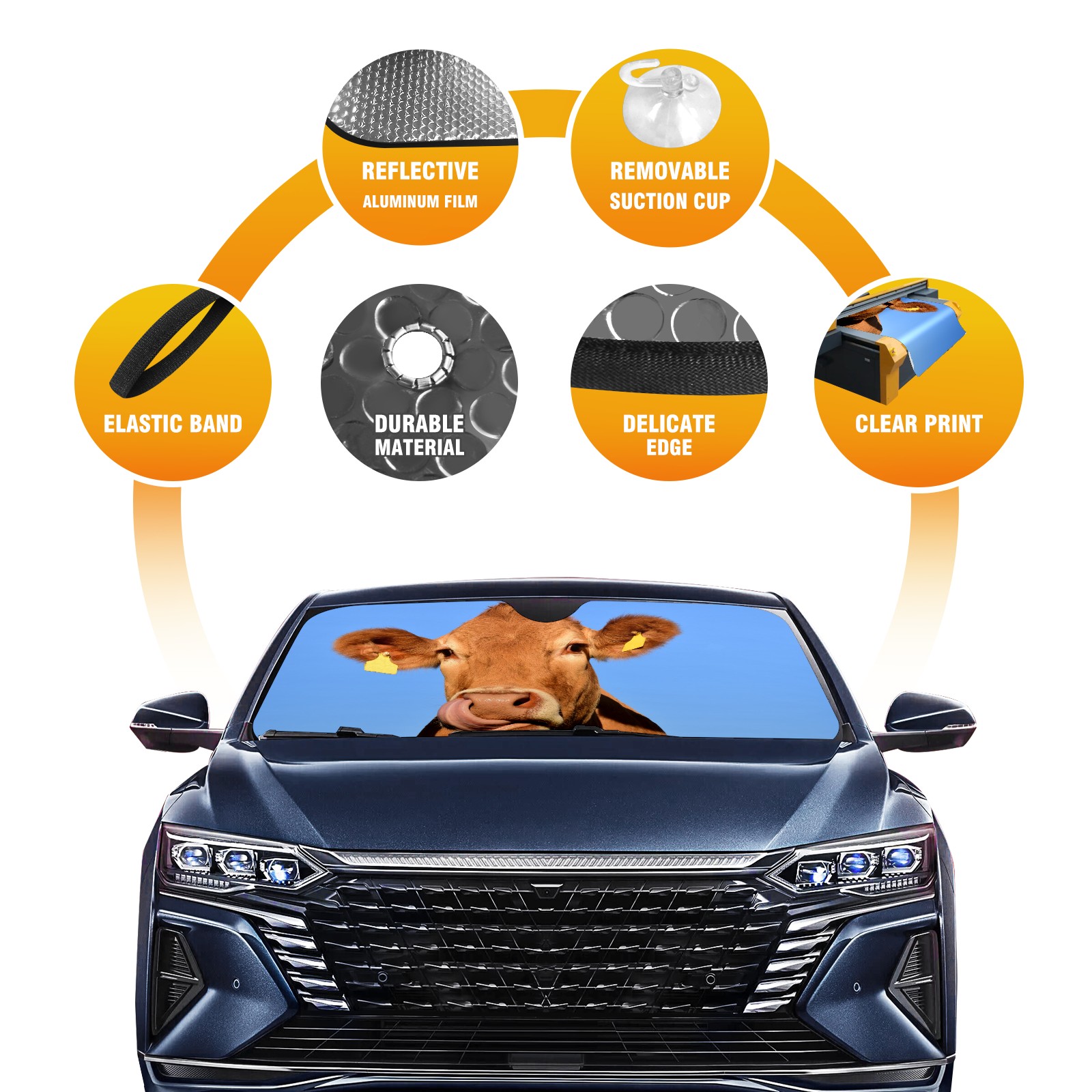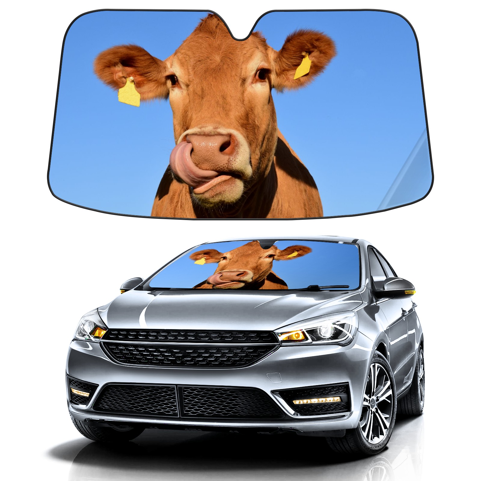 Car Windshield Sun Shade for Front Window Cow Print Black Foldable Vehicle Windshield Car Sun Visor Covers Automotive Window Protector Car Privacy Sun Blocker