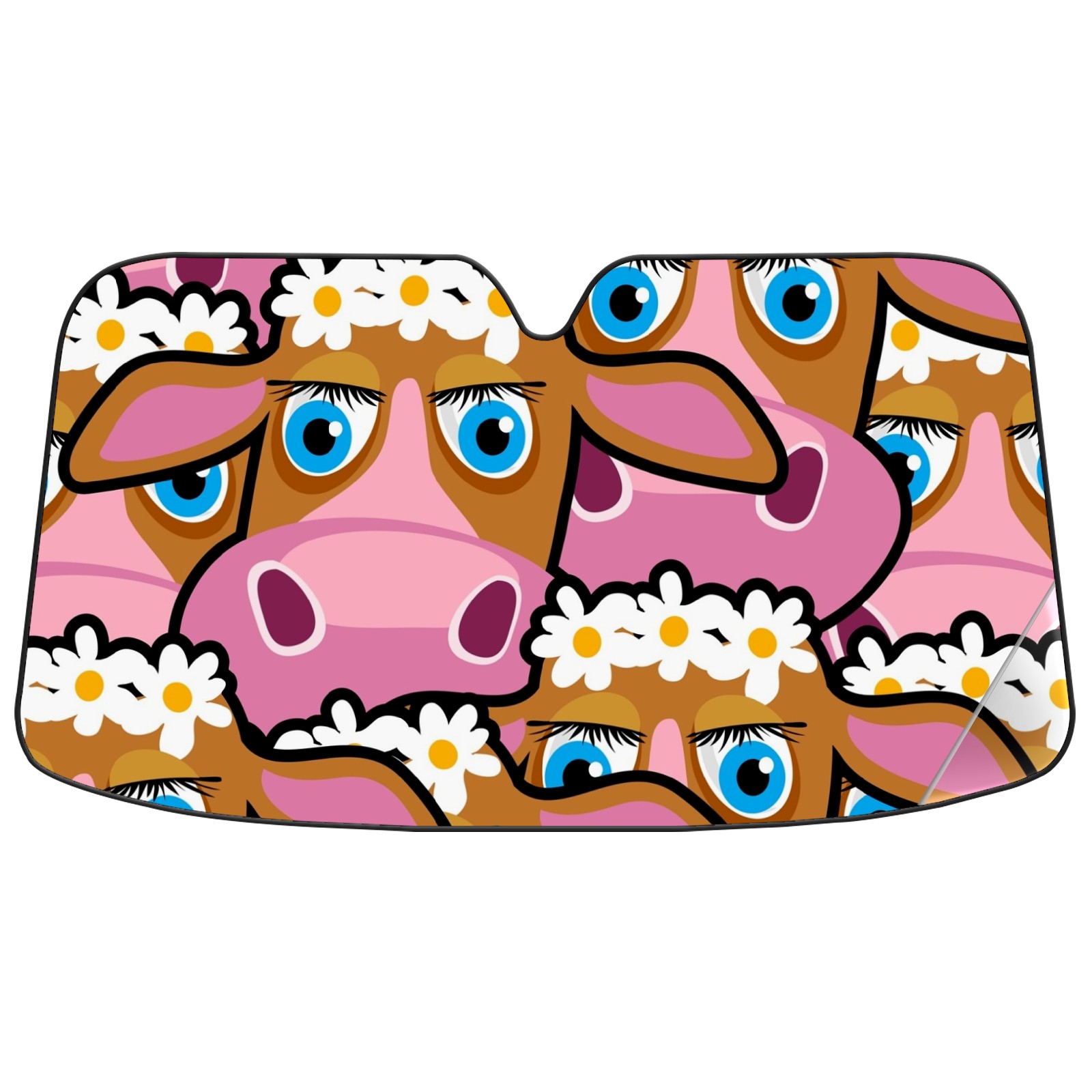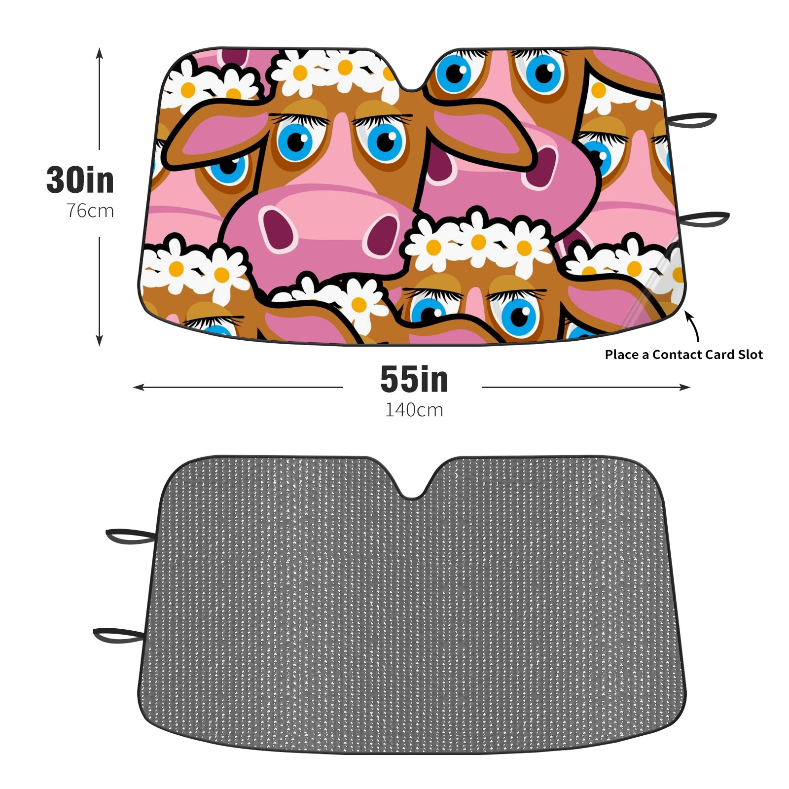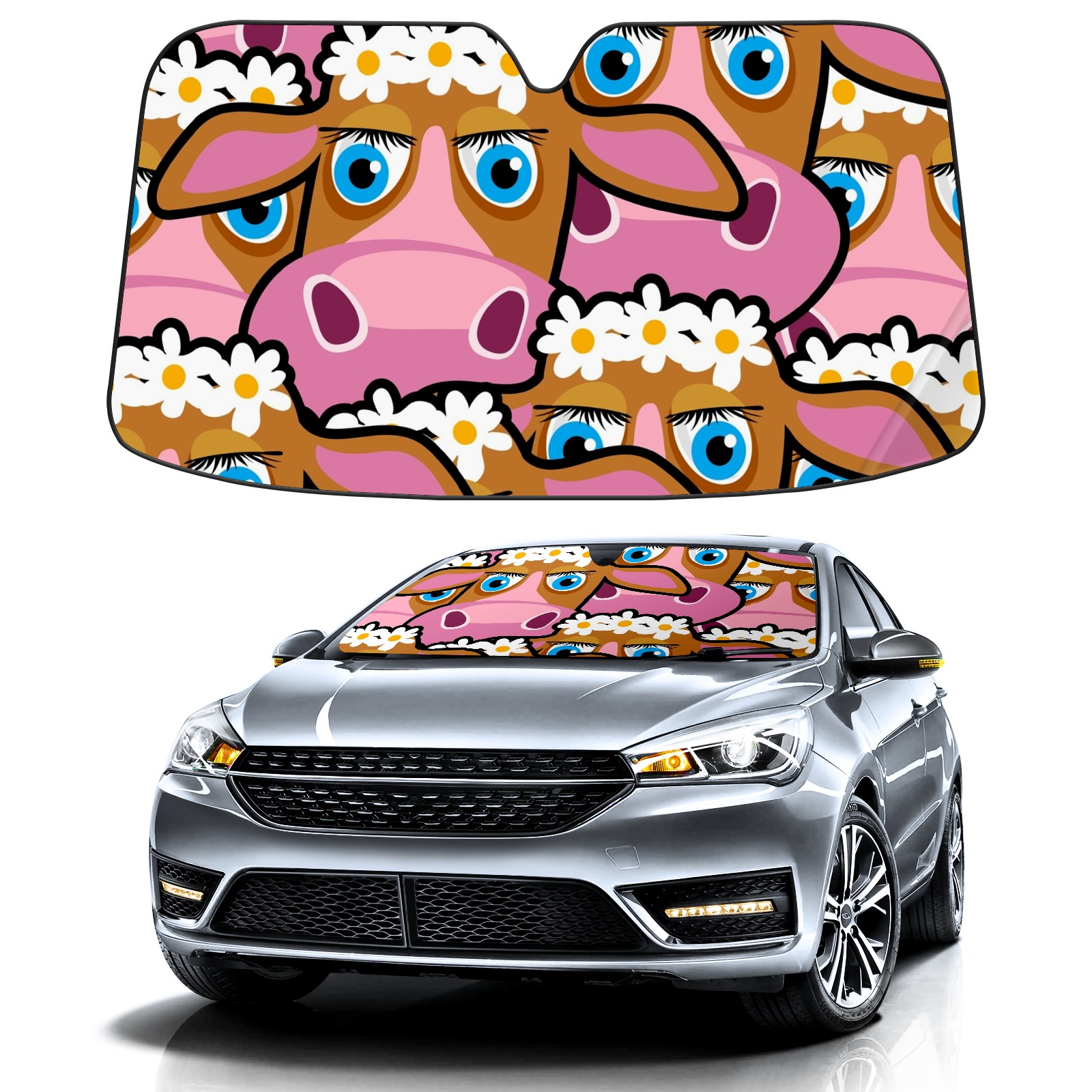 Car Windshield Sun Shade for Front Window Animal Pink Cow Pattern Funny Foldable Vehicle Windshield Car Sun Visor Covers Automotive Window Protector Car Privacy Sun Blocker