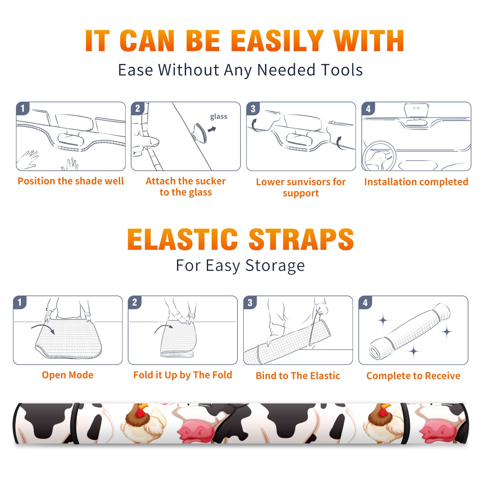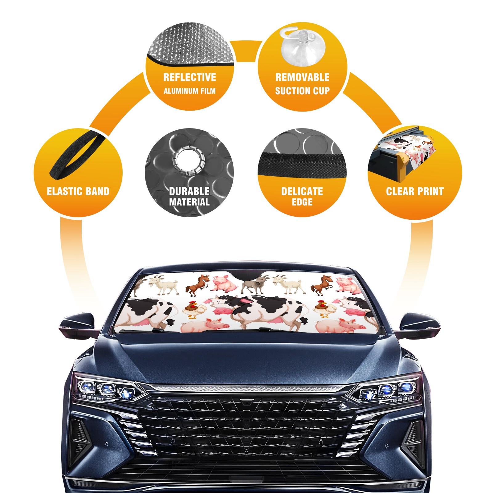 Car Windshield Sun Shade for Front Window Animal Cow Print Foldable Vehicle Windshield Car Sun Visor Covers Automotive Window Protector Car Privacy Sun Blocker