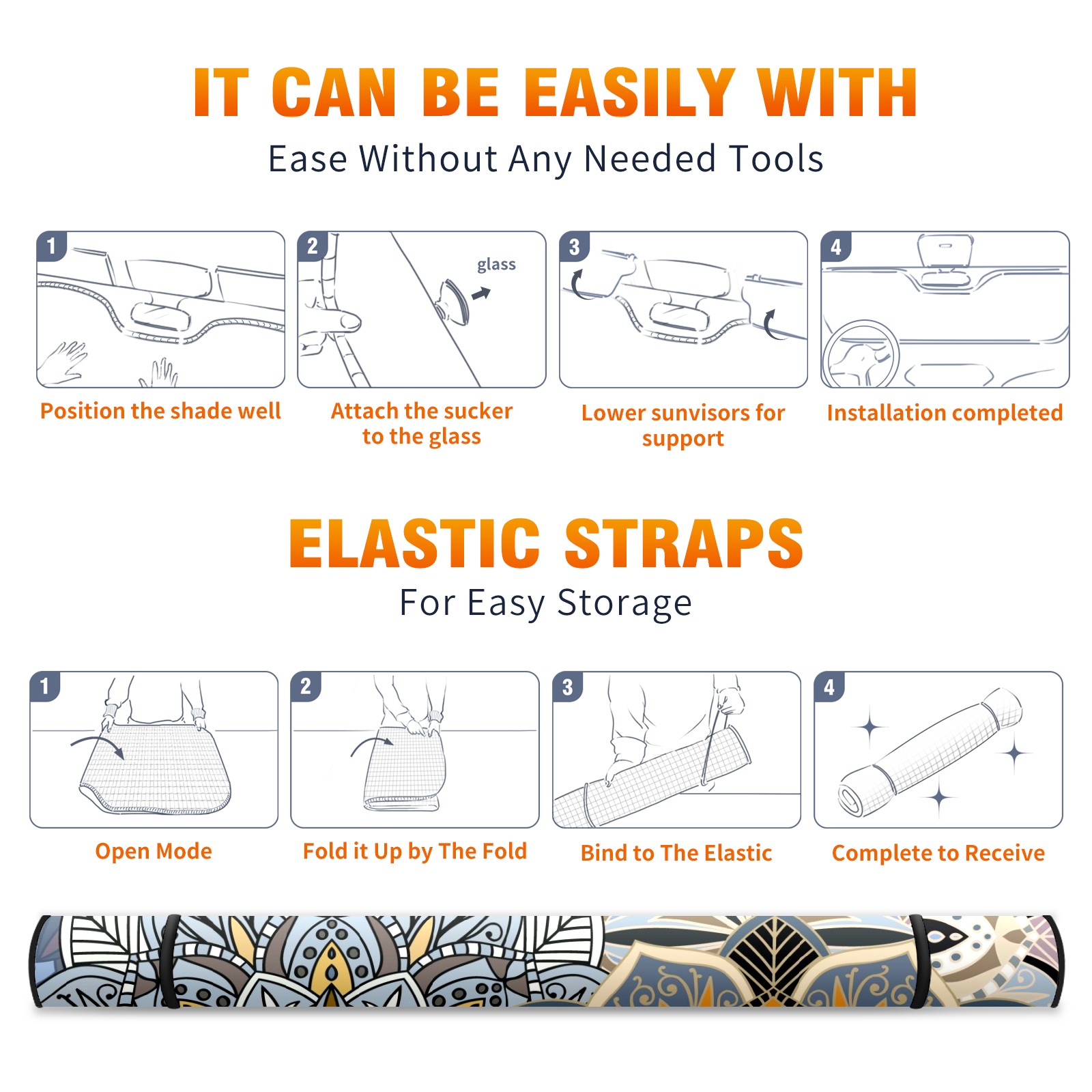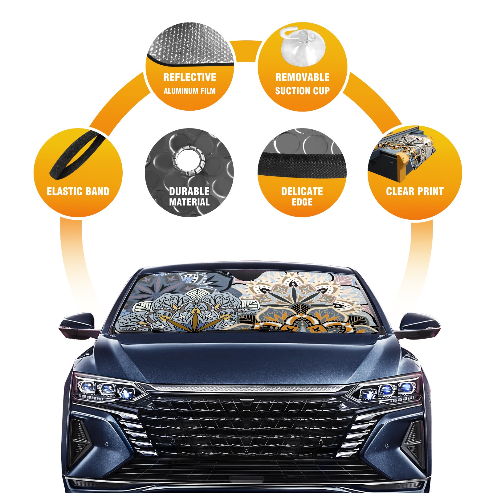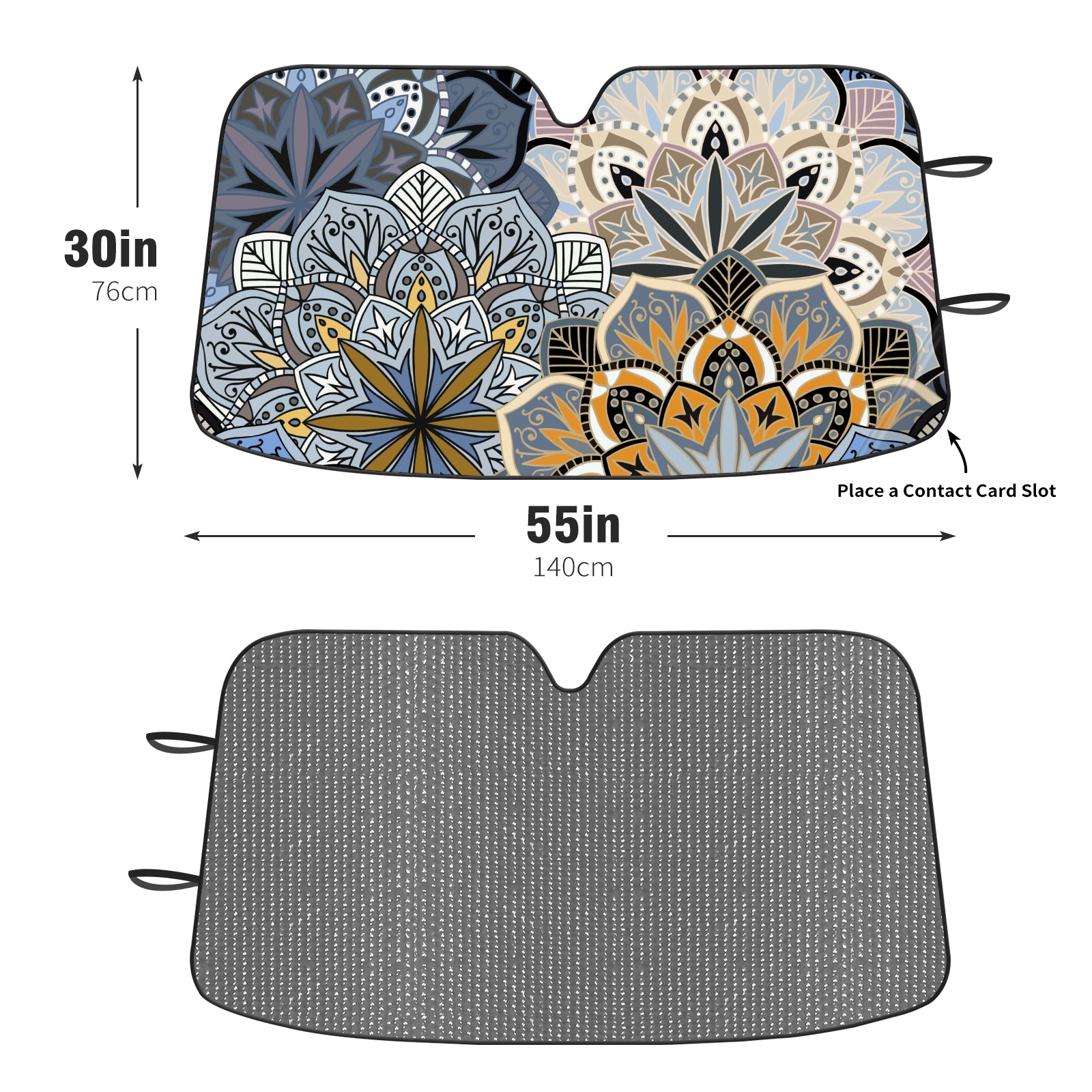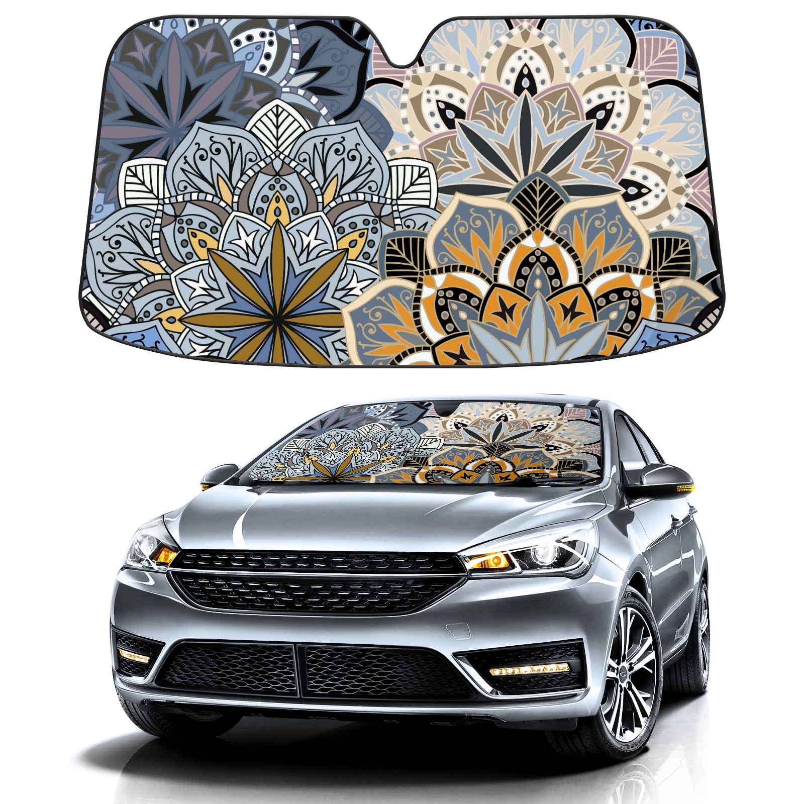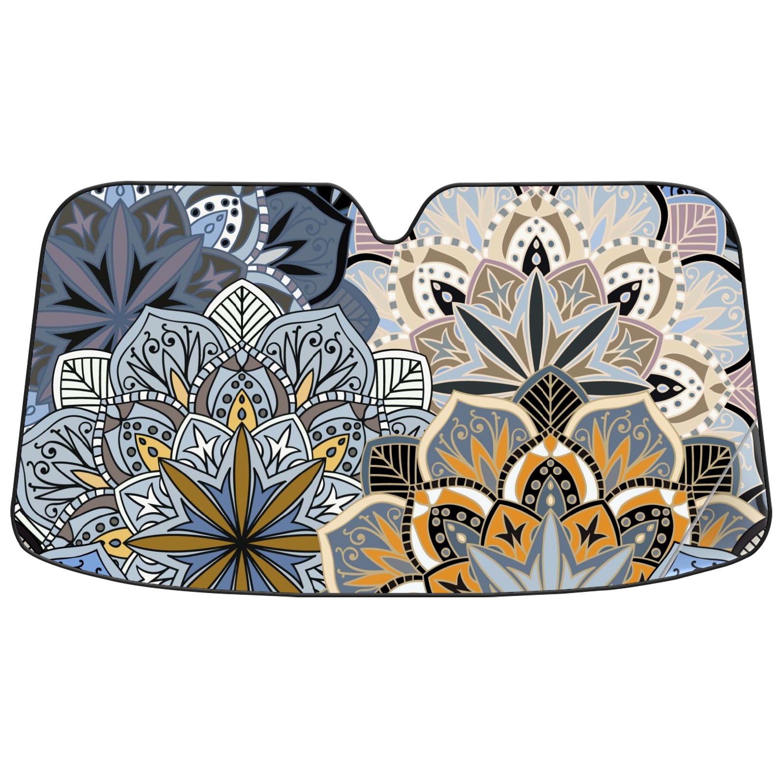 Car Windshield Sun Shade for Front Window Abstract Mandala Flower Foldable Vehicle Windshield Car Sun Visor Covers Automotive Window Protector Car Privacy Sun Blocker