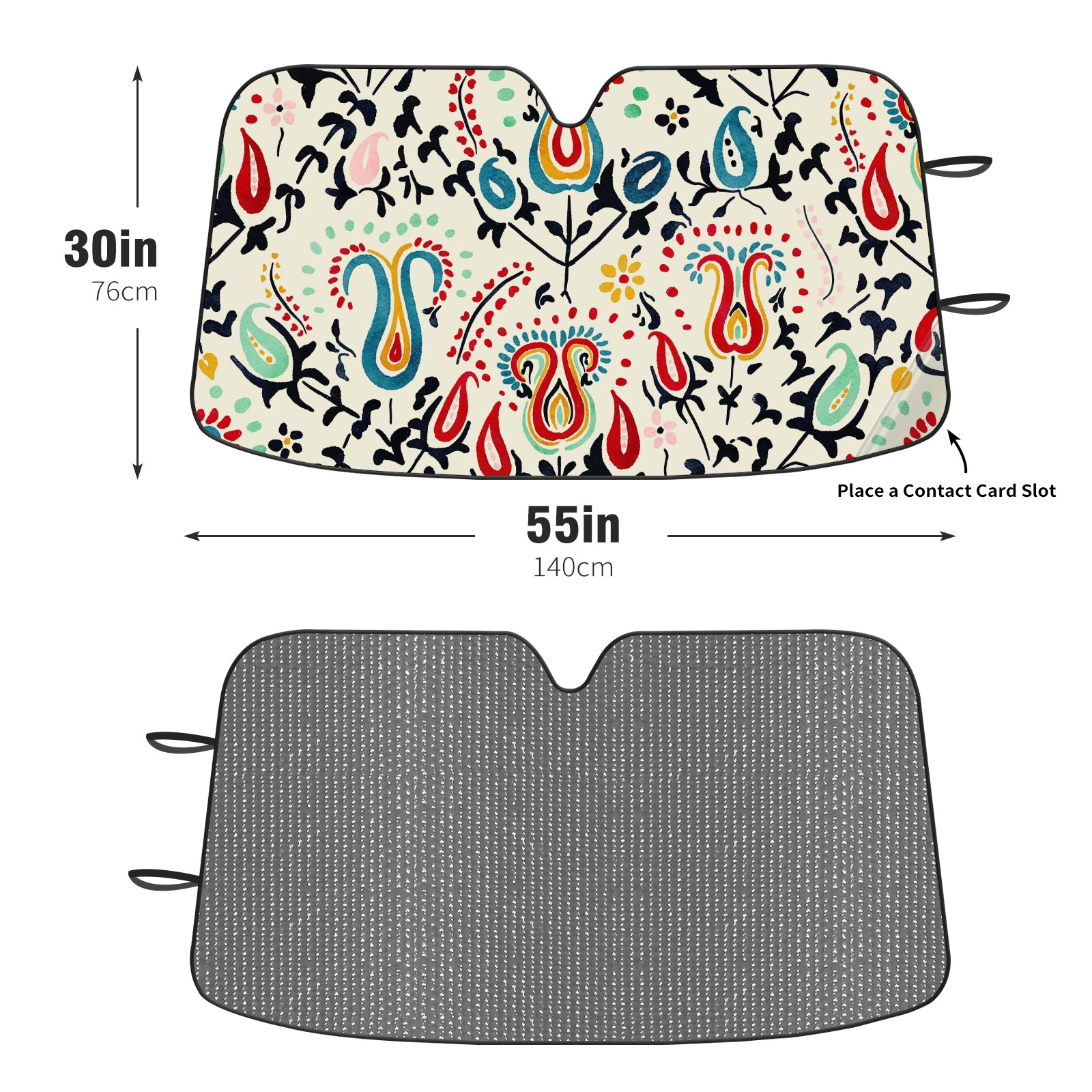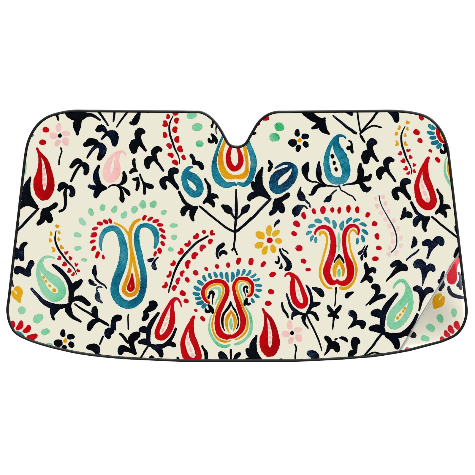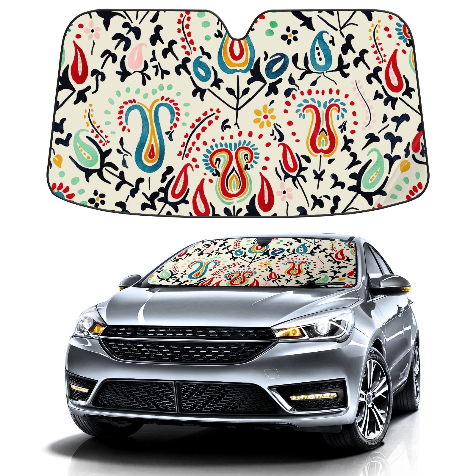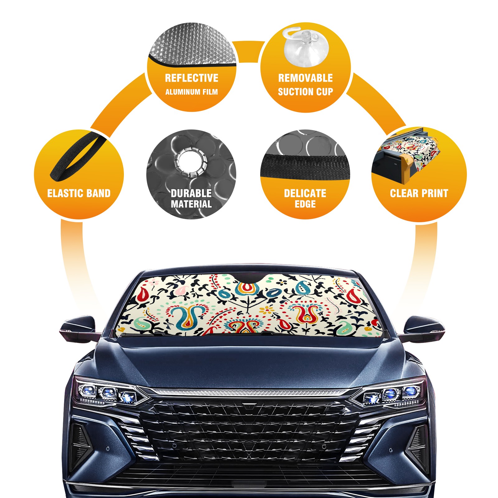 Car Windshield Sun Shade for Front Window Abstract Ethnic Floral Pattern Foldable Vehicle Windshield Car Sun Visor Covers Automotive Window Protector Car Privacy Sun Blocker