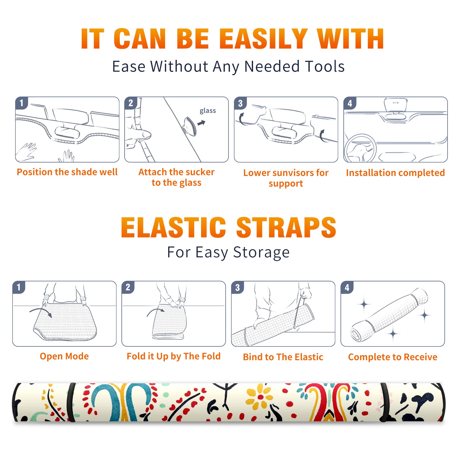 • Diameter /Size 63"L x 33.5"W</b><br> Made from excellent materials which makes it sturdy and protects the car from the sun. Easy to use and pack. Makes the interior of the car cooler.You can easily stash the sunshade in the storage bag or store long term.It open and closes easy. Also the leather storage bag is durable and easy to put the umbrella back into.This windshield sunshade provides complete coverage and keeps your car interior cool under direct sun. It is easy to open and position under the windshield and around the rear-view mirror. Makes Your Car Easy To Identify, Perfect For Finding Your Car In Crowded Parking Lots And Garages.Great Choice: It Is A Great Gift For Dad, Boyfriend, Brother, Brother And Uncle, Friends, Classmates, Family And So On.<br> Notice:</b><br> Due To Difference Computer Monitors, The Color Maybe Slightly Different From Picture. As Different Measurement Methods, Measurement Data Will Float Within 2%.I Hope You Understand.<br> If You Have Any Question About The Item Please Do Not Hesitate To Contact Us Immediately And We Will Give You A Satisfactory Reply Within 24 Hours.