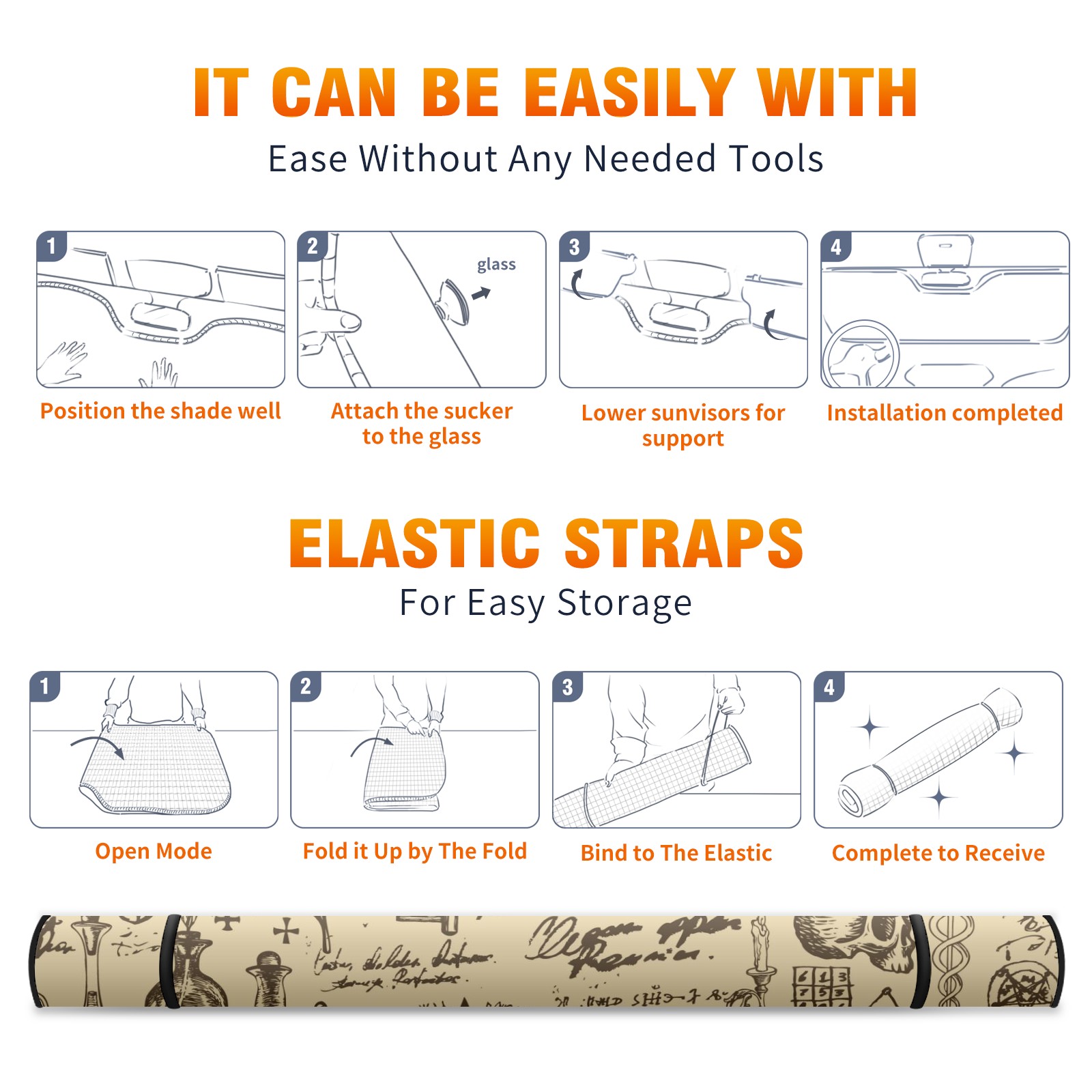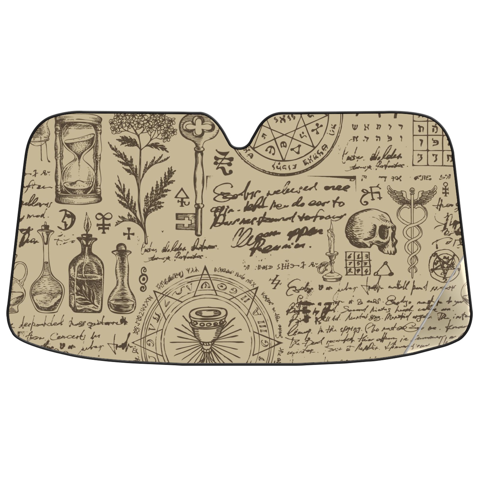 Car Windshield Sun Shade for Front Window Retro Style Magic Witchcraft Foldable Vehicle Windshield Car Sun Visor Covers Automotive Window Protector Car Privacy Sun Blocker