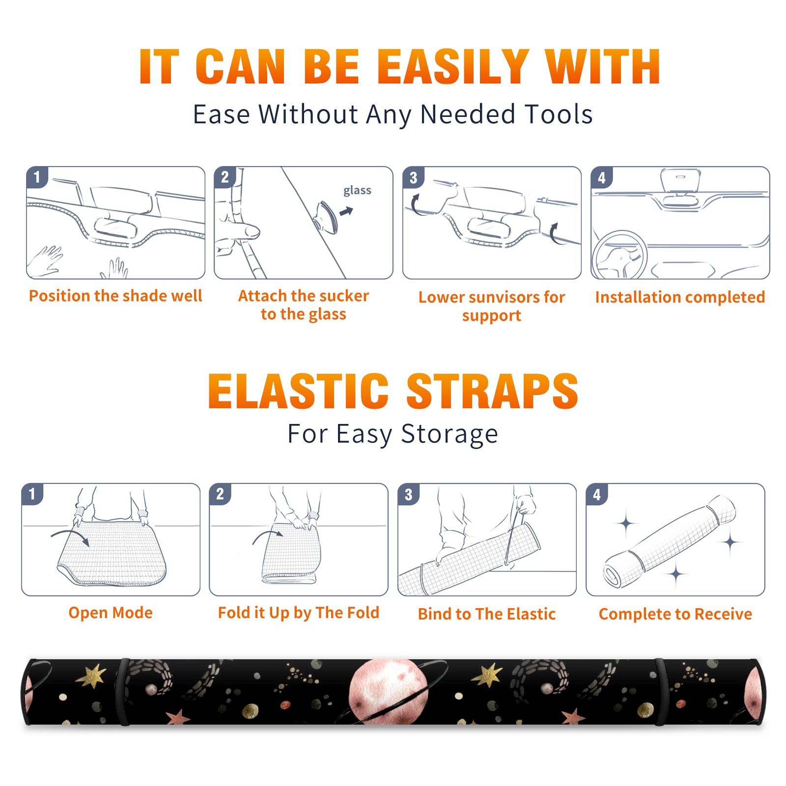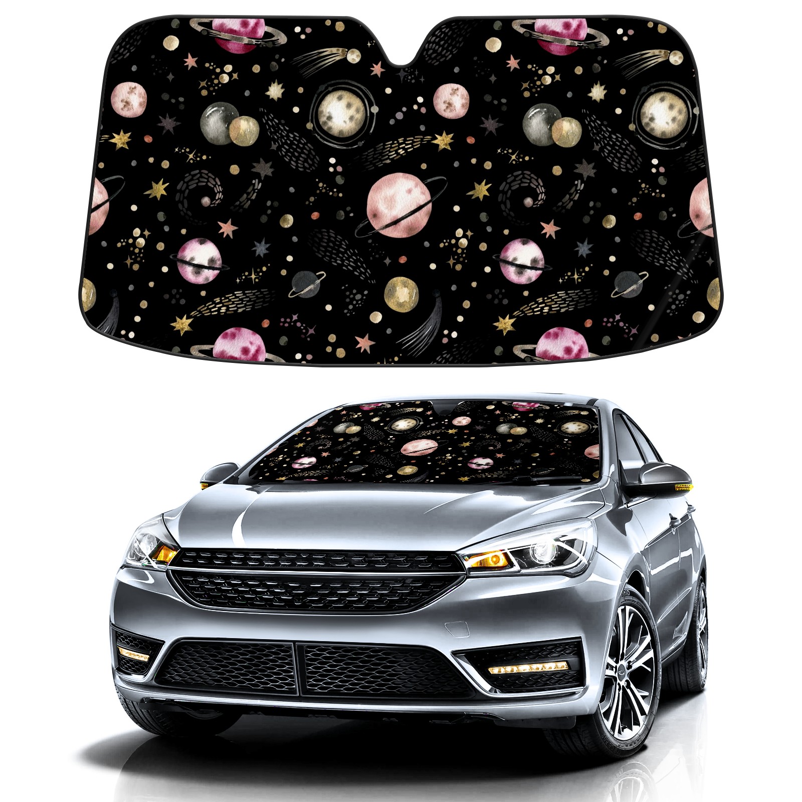 Car Windshield Sun Shade for Front Window Planets Stars Starry Sky Foldable Vehicle Windshield Car Sun Visor Covers Automotive Window Protector Car Privacy Sun Blocker