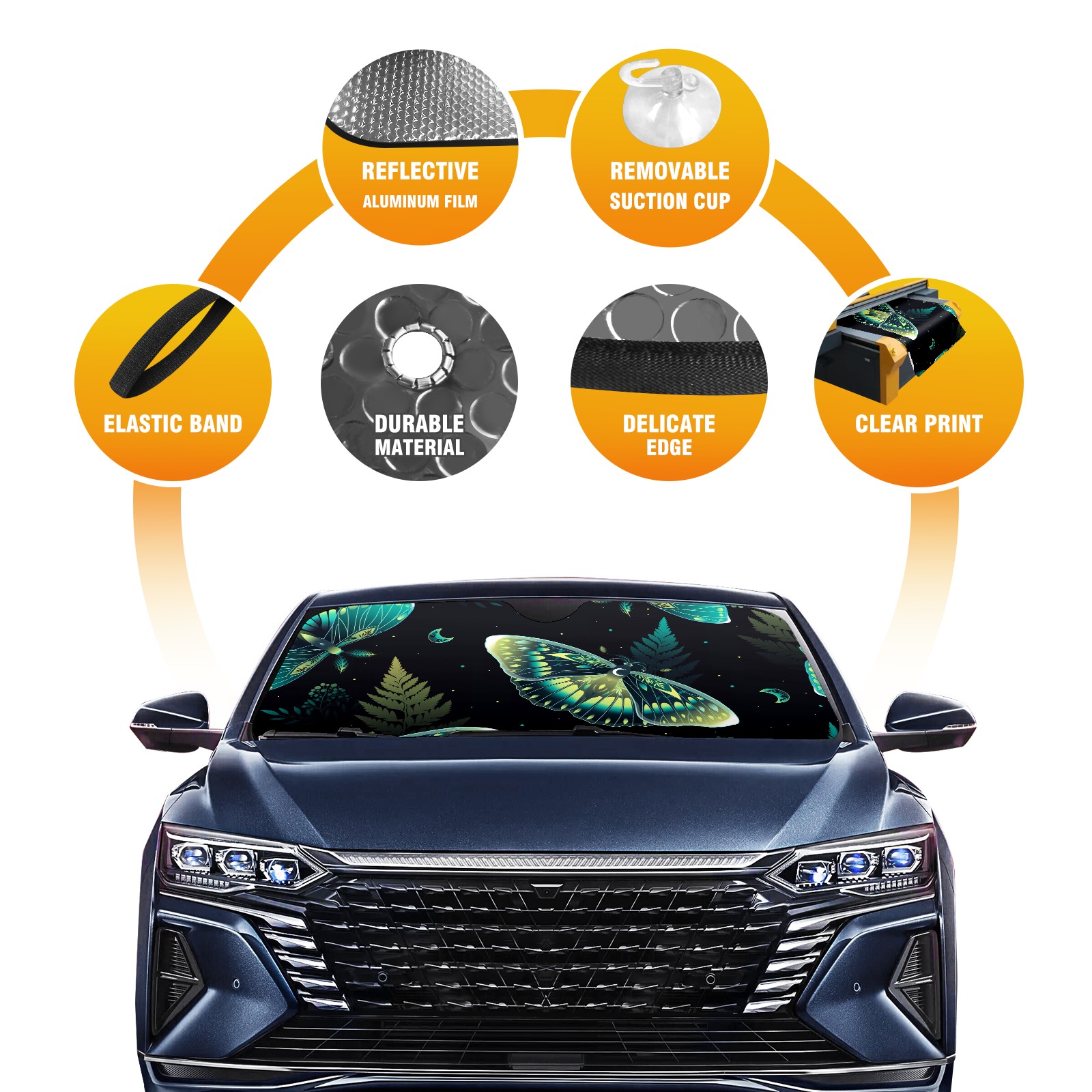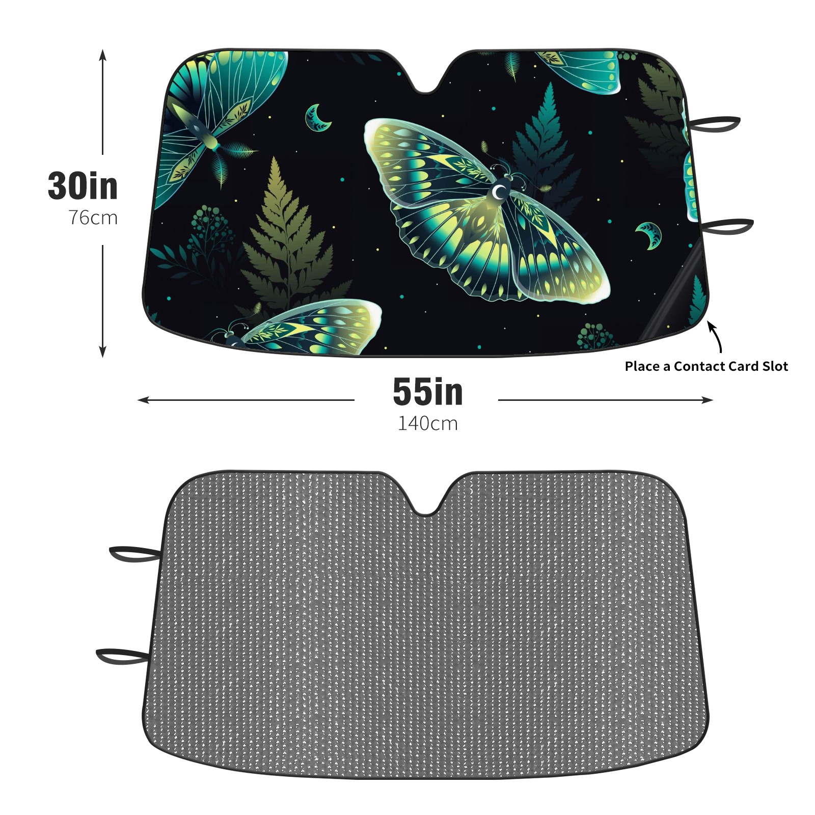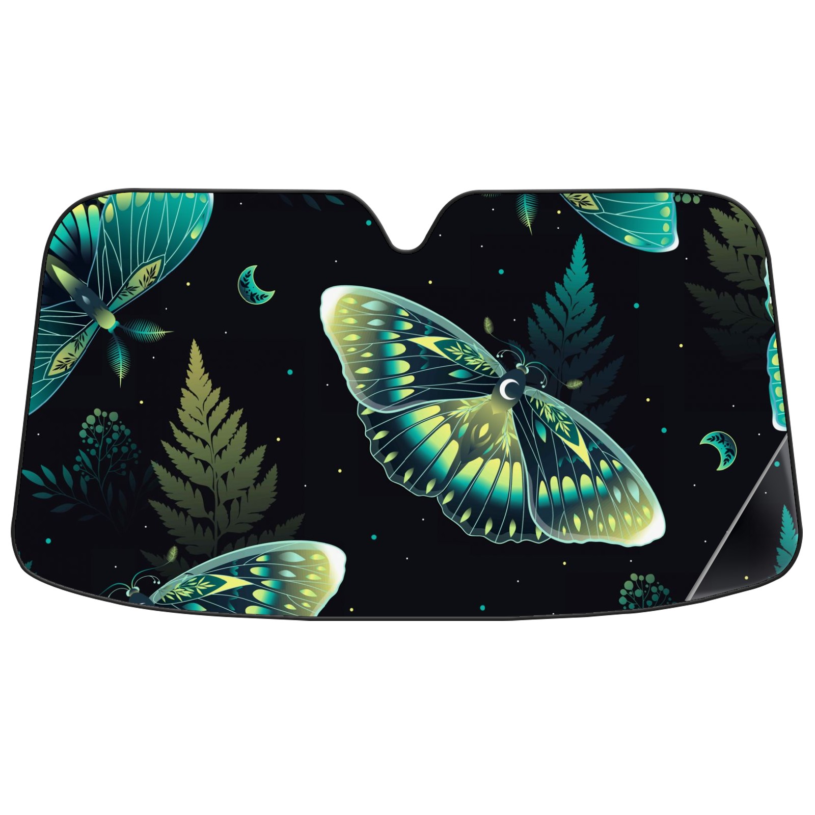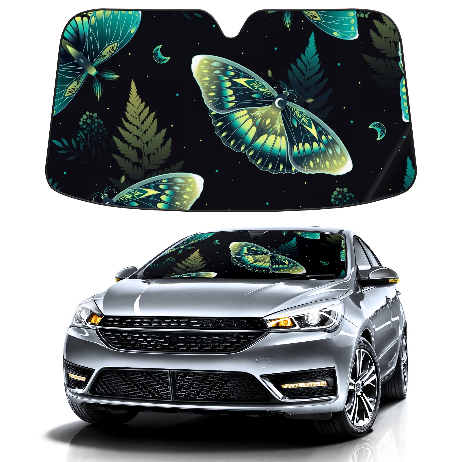 Car Windshield Sun Shade for Front Window Dark And Mystical Green Moths Moon Foldable Vehicle Windshield Car Sun Visor Covers Automotive Window Protector Car Privacy Sun Blocker
