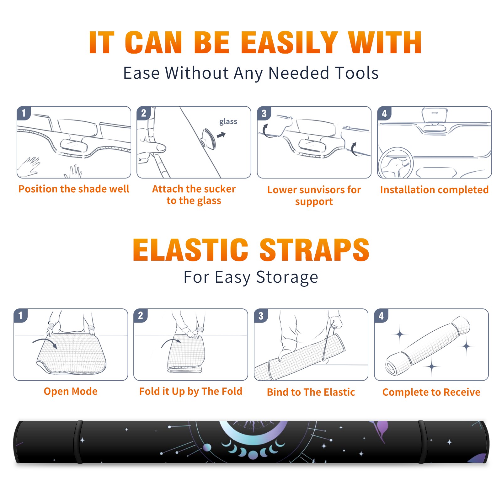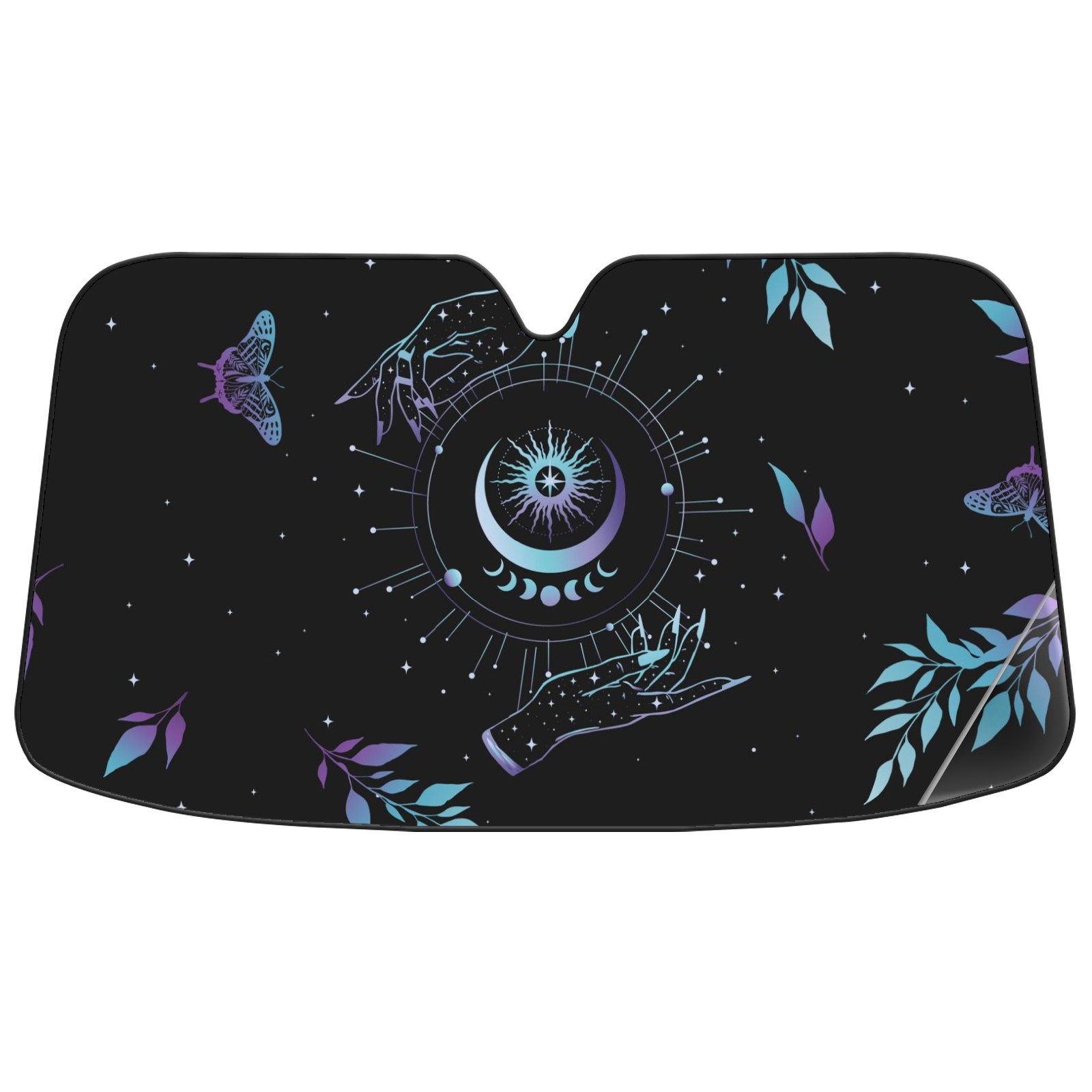 Car Windshield Sun Shade for Front Window Aastrology Magic Hands And Moon Foldable Vehicle Windshield Car Sun Visor Covers Automotive Window Protector Car Privacy Sun Blocker